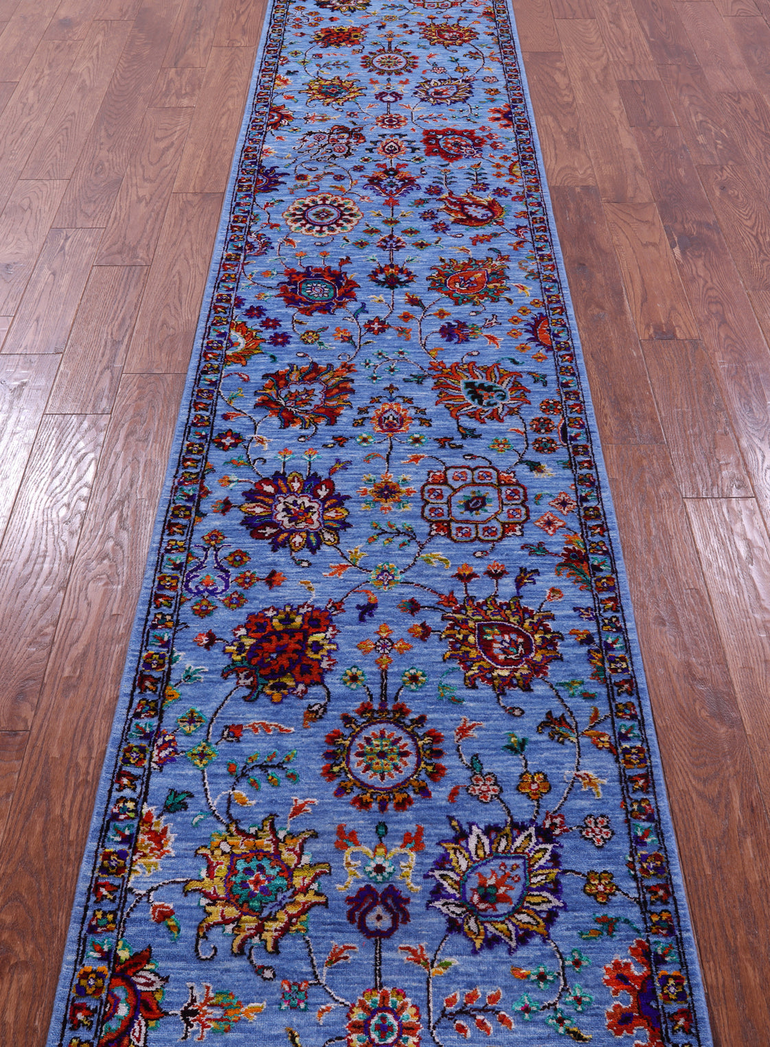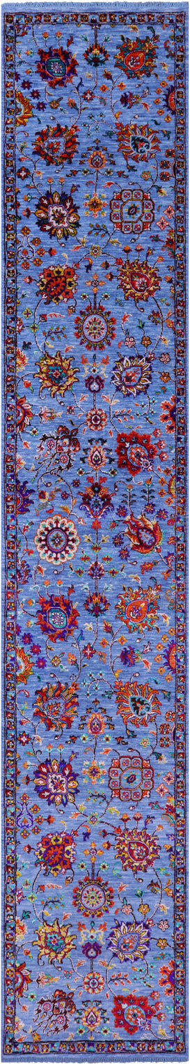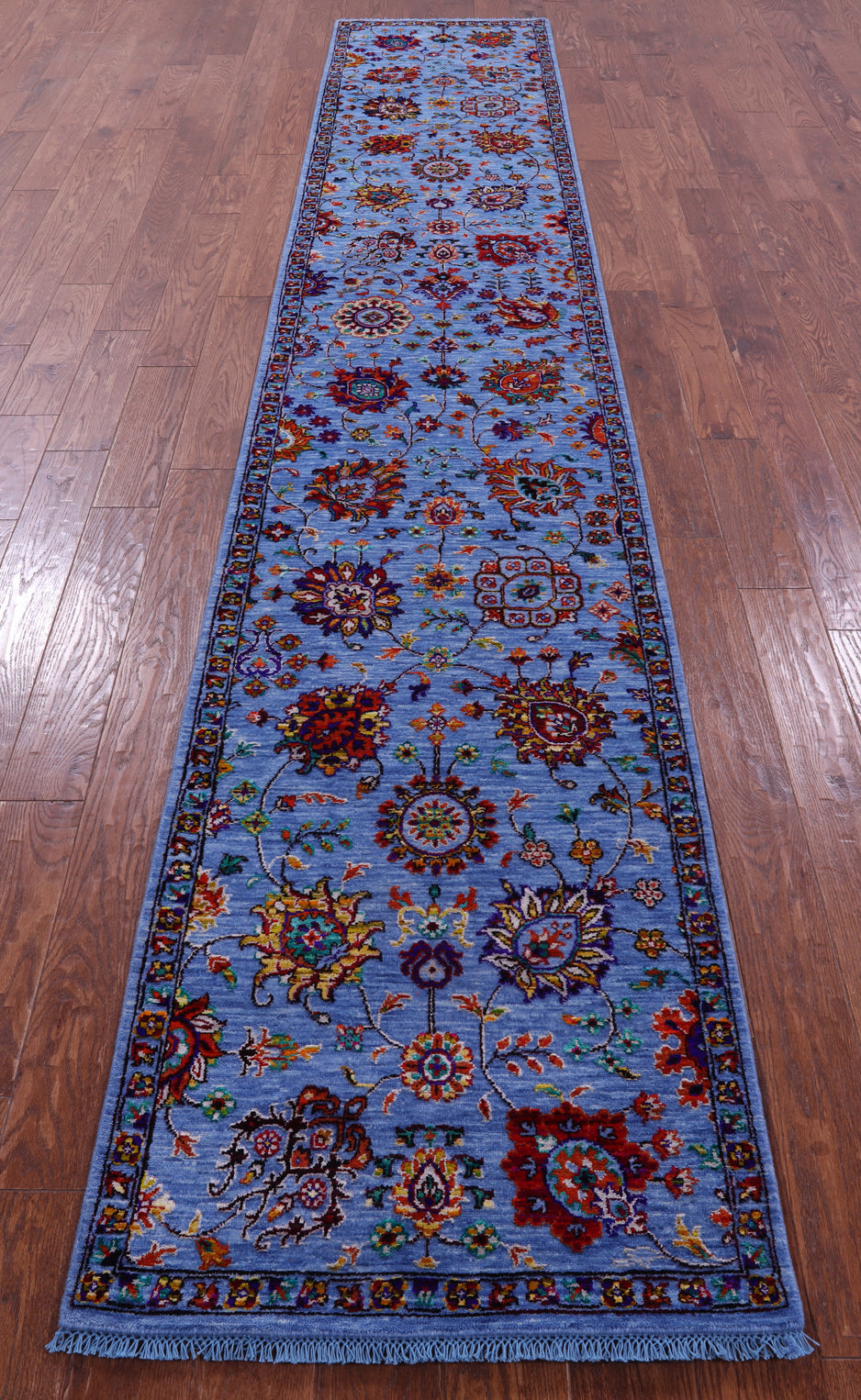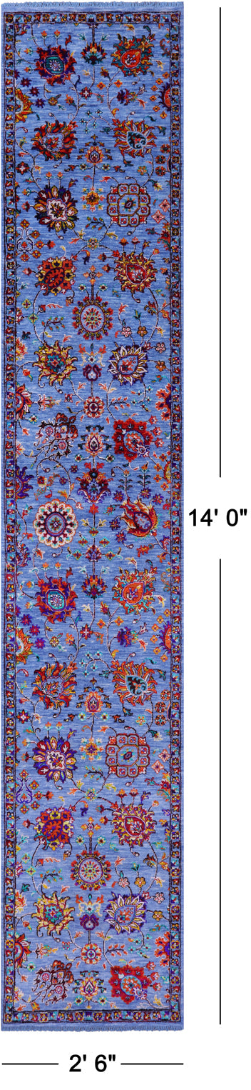 Blue Persian Tabriz Handmade Wool & Silk Runner Rug - 2' 6" X 14' 0"