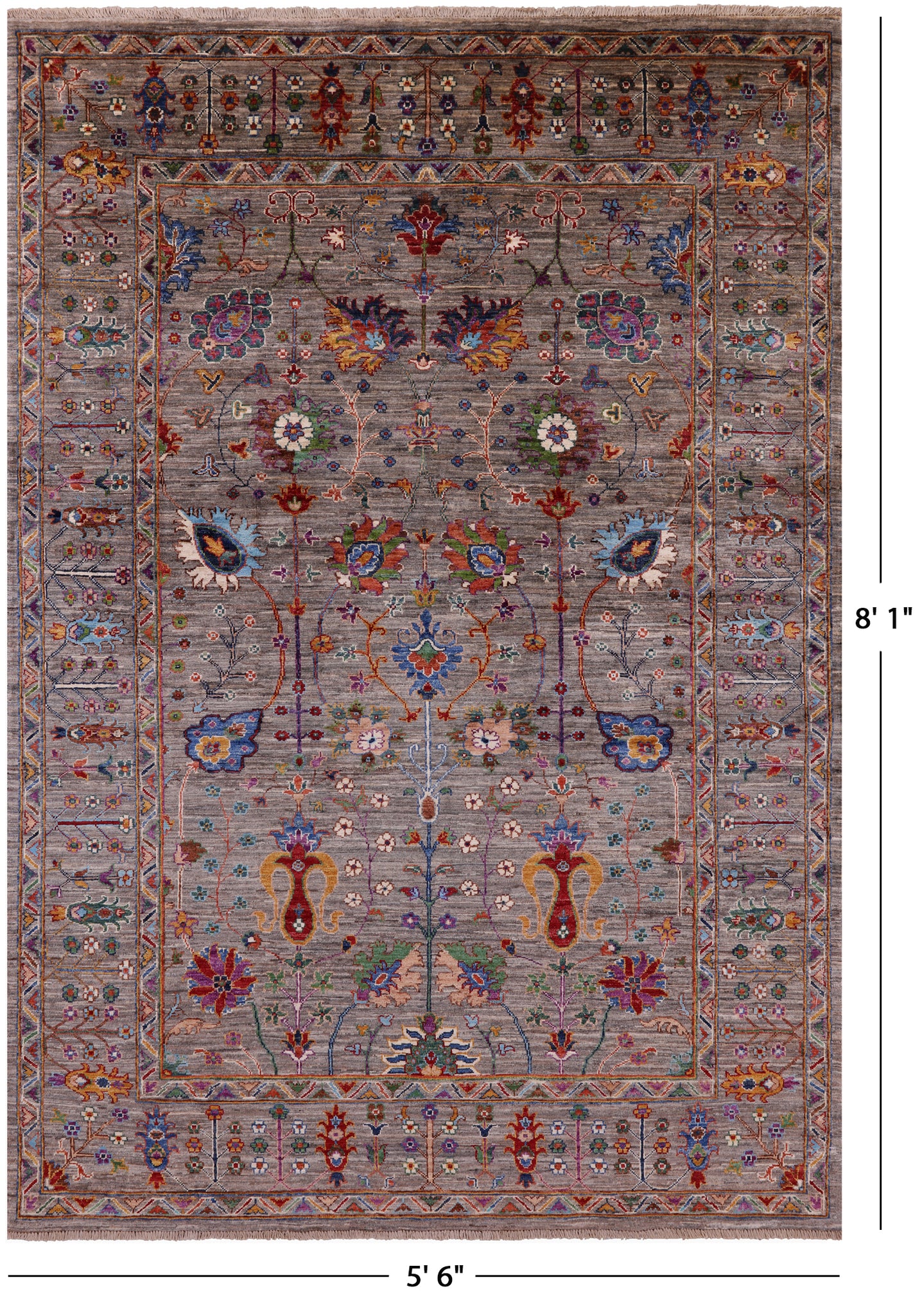 Peshawar Hand Knotted Wool Rug - 5' 6" X 8' 1"