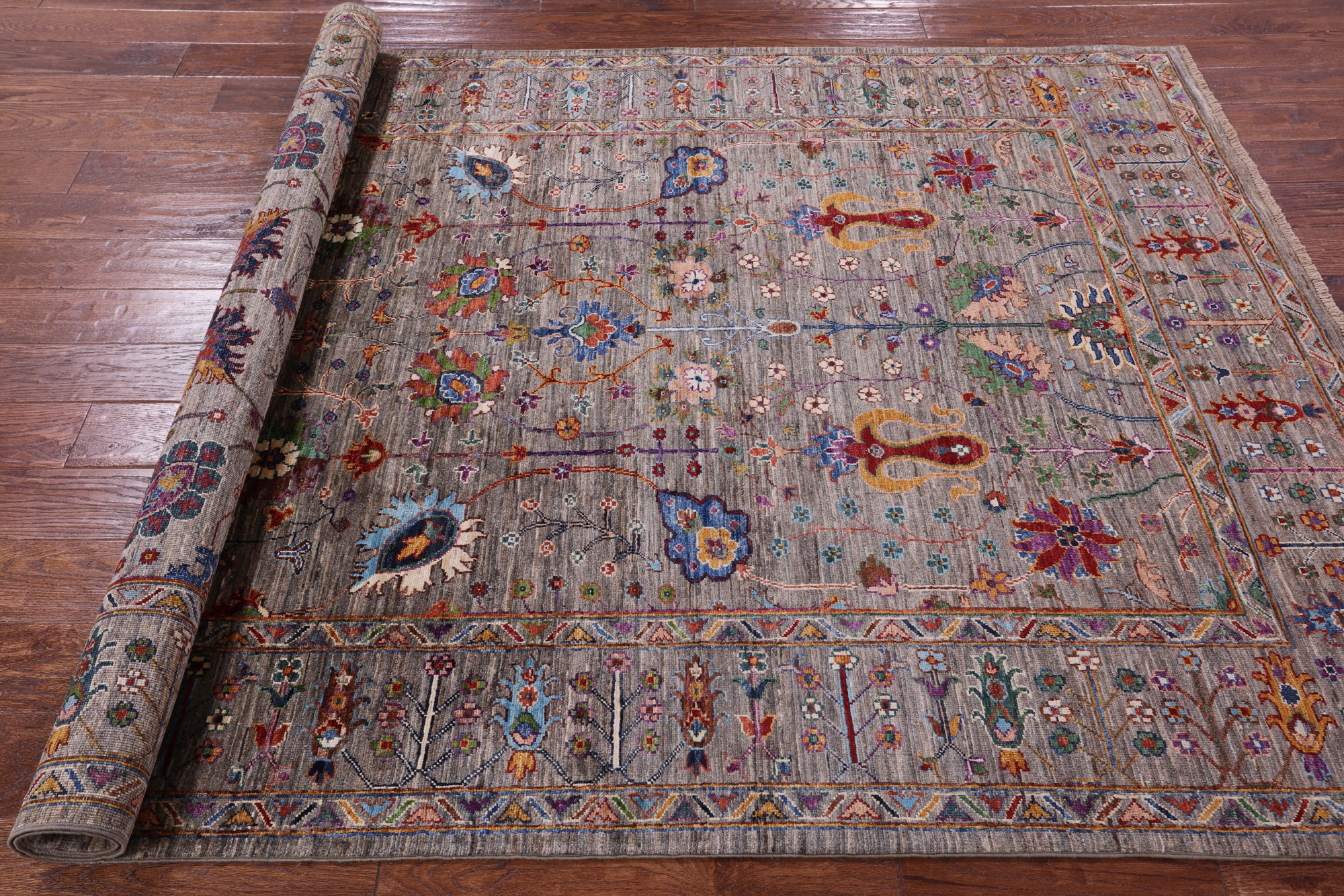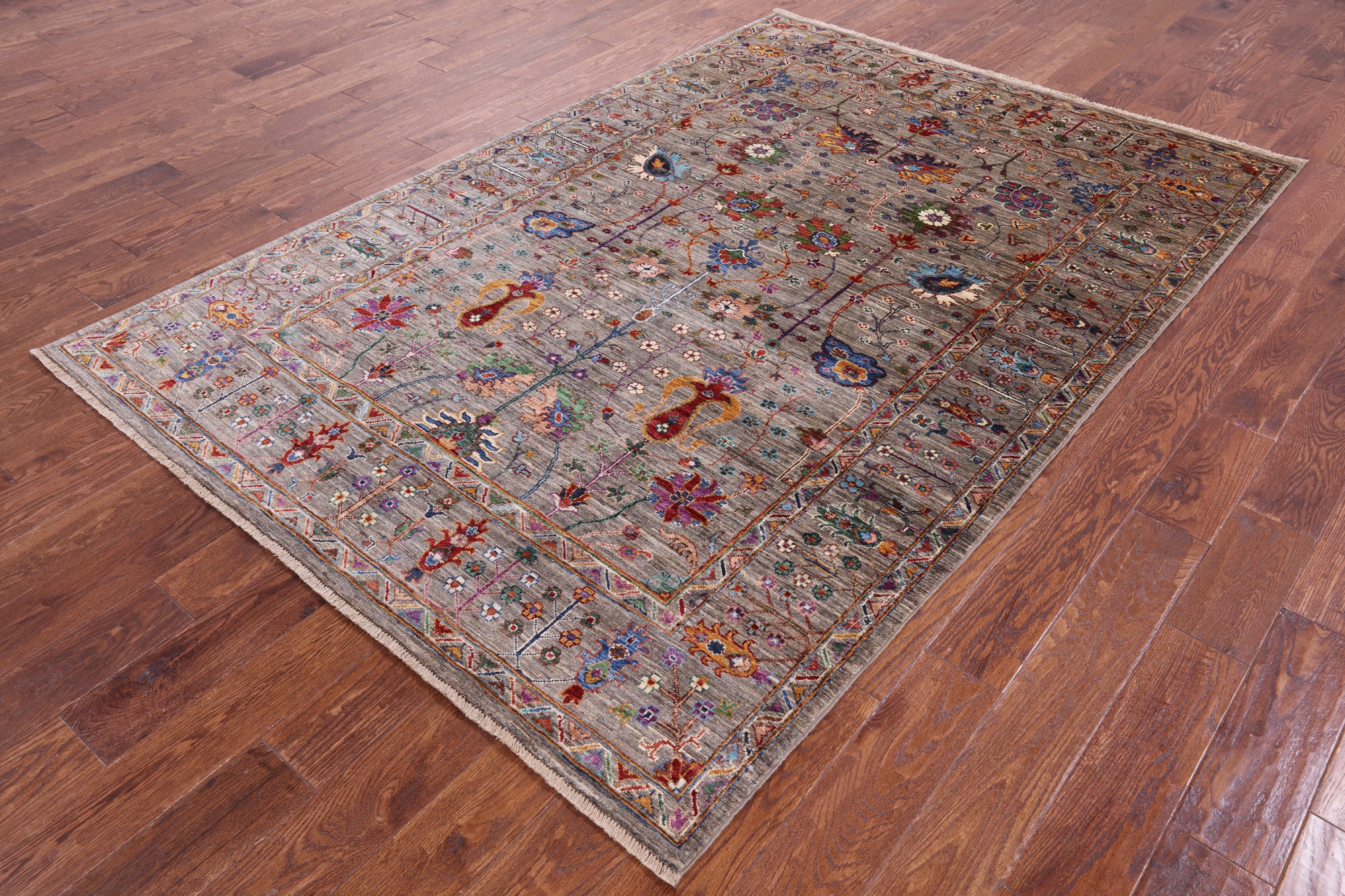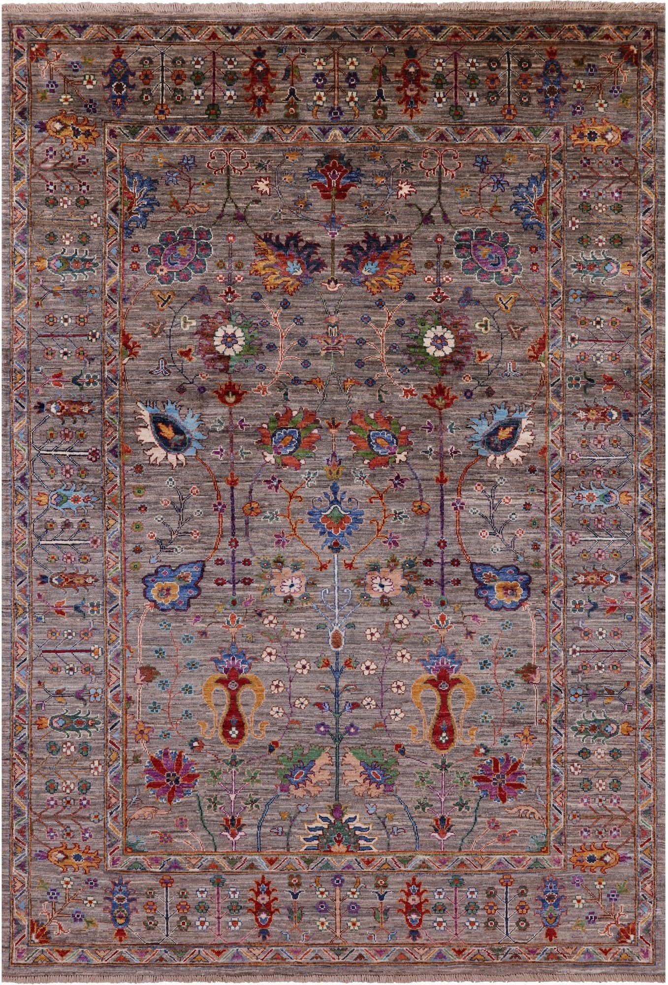 Peshawar Rugs are elegant rugs that are completely hand-spun using a wool pile and a cotton foundation. Occasionally weavers use natural silk in the pile to highlight particular features. Designs are influenced by Kazak & Caucasian styles. These rugs have an attractive natural luster as well as a durable pile and are complementary to antique or modern interiors.