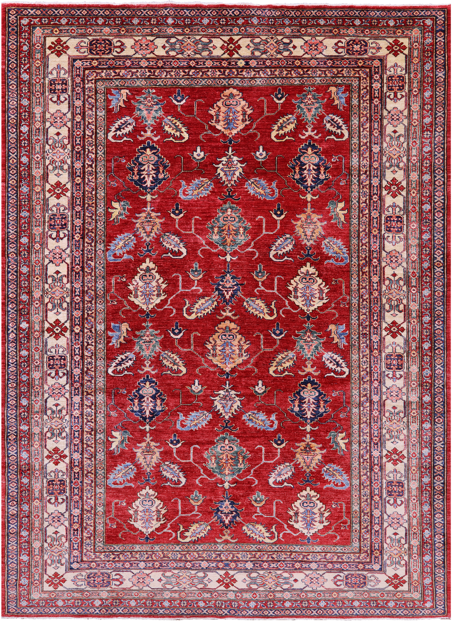 Red Super Kazak Hand Knotted Wool Rug - 7' 0" X 9' 8"