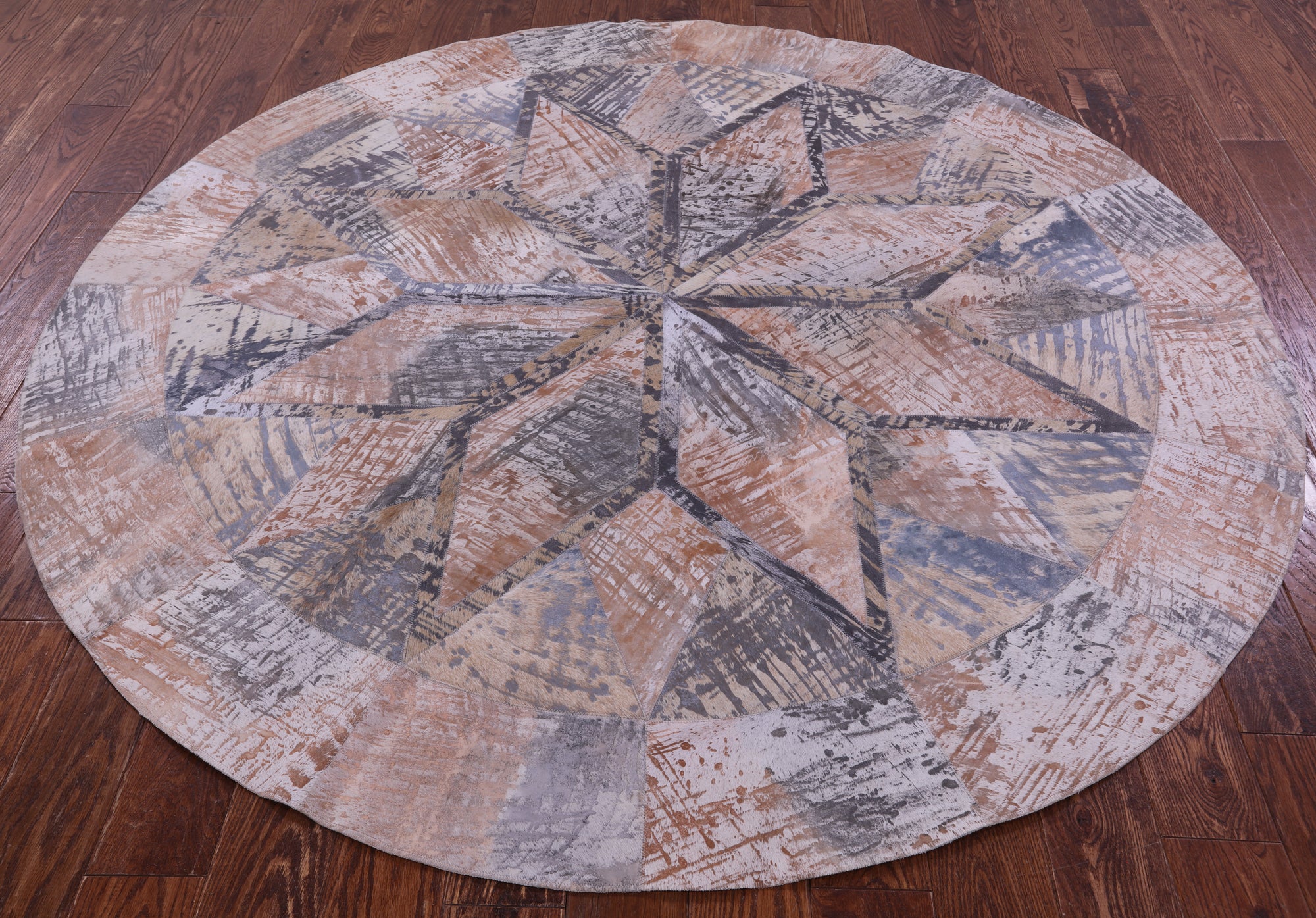 Round Natural Cowhide Hand Stitched Patchwork Rug - 6' 6" X 6' 6"
