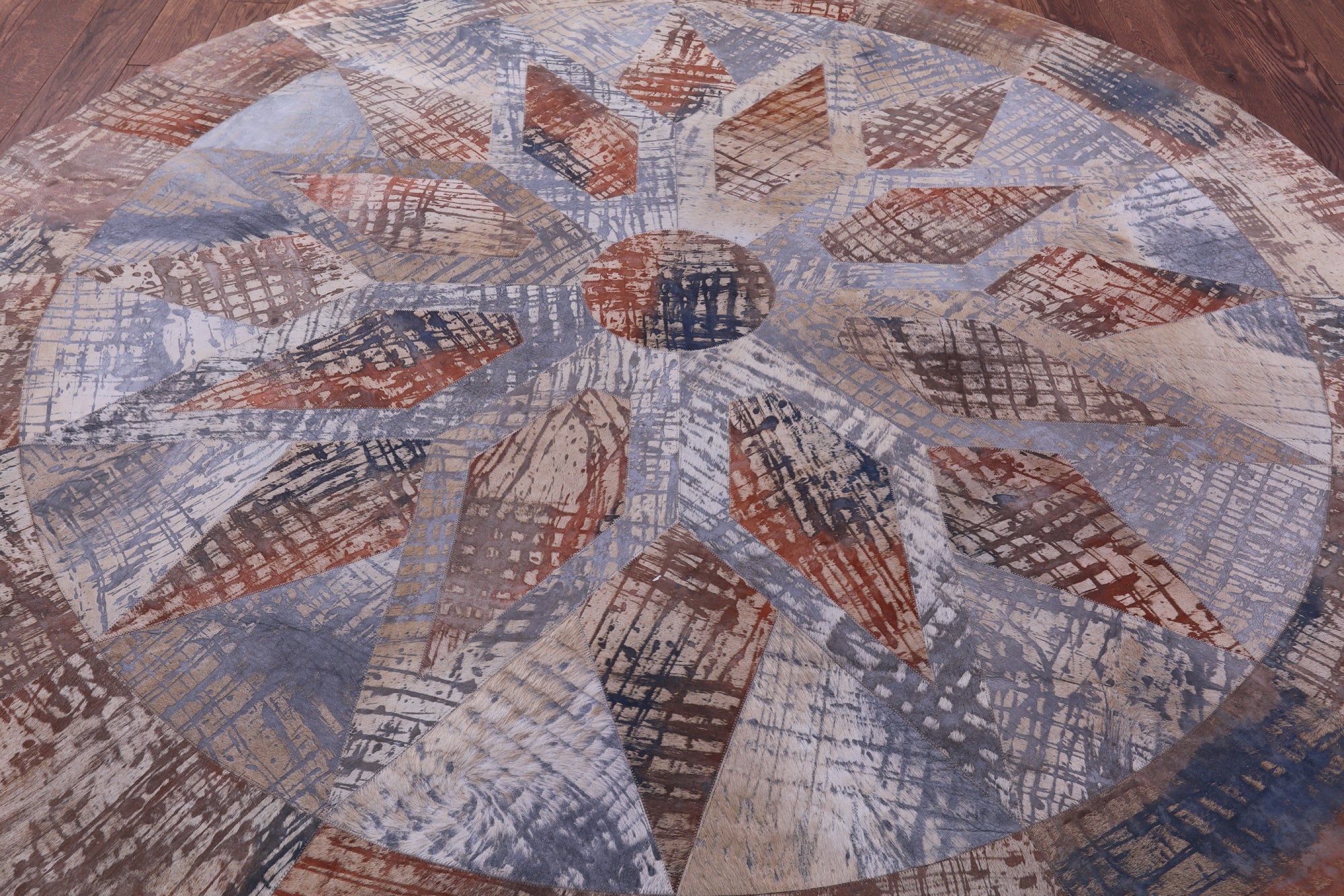Round Natural Cowhide Hand Stitched Patchwork Rug - 8' 2" X 8' 2"