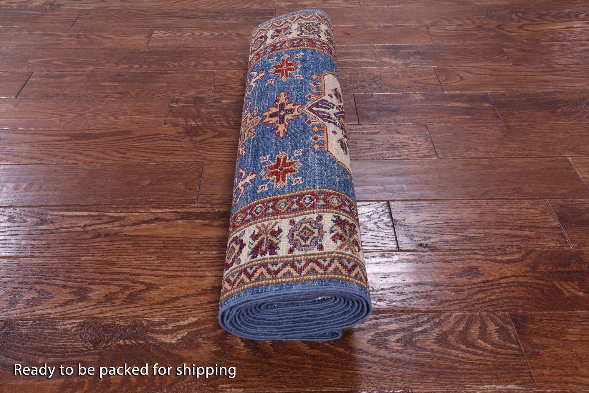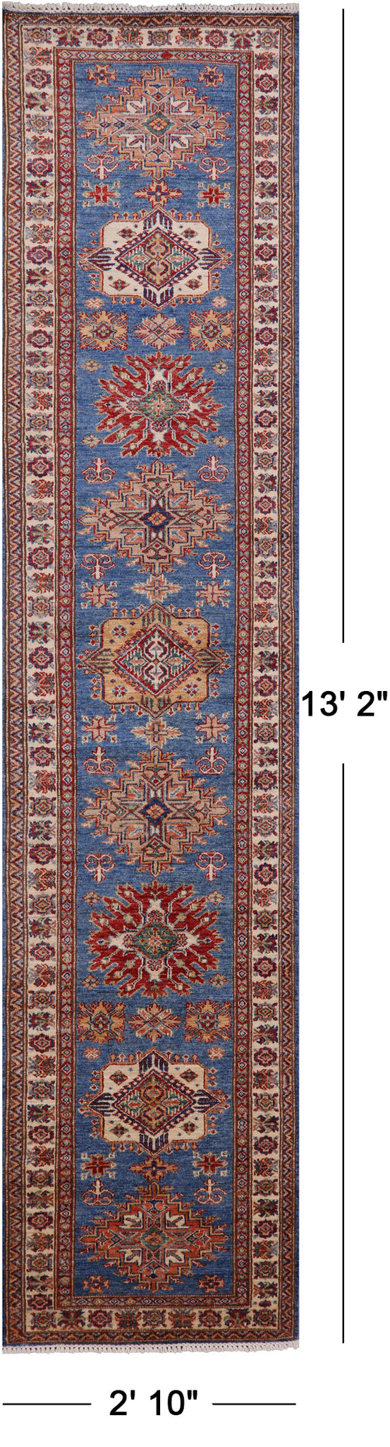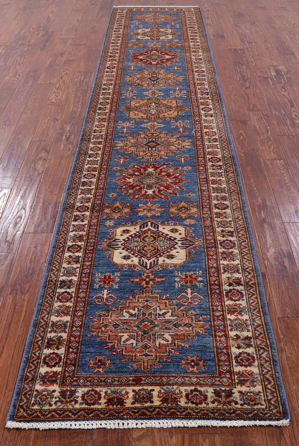 Blue Super Kazak Hand Knotted Wool Runner Rug - 2' 10" X 13' 2"