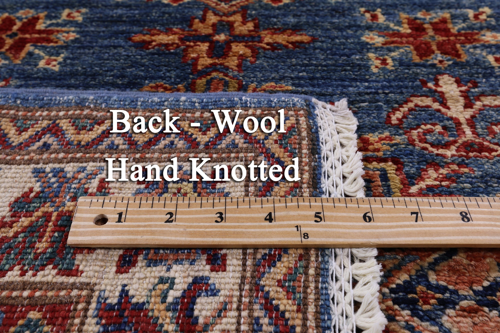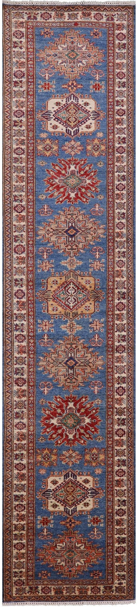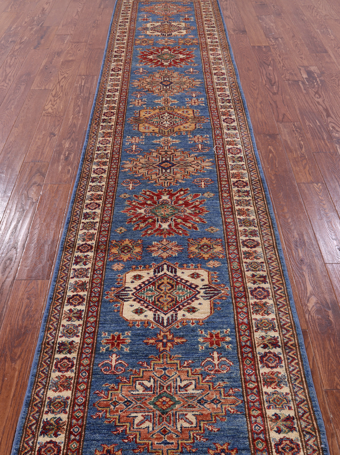 Blue Super Kazak Hand Knotted Wool Runner Rug - 2' 10" X 13' 2"