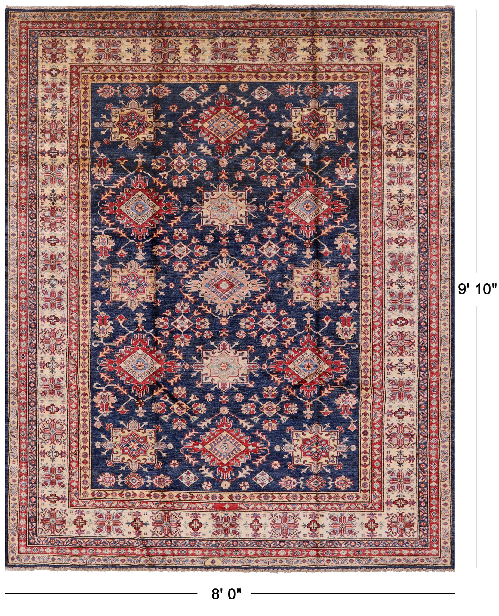 Kazak Rugs are popular for their stunning geometric designs & high quality dyes. Kazak patterns tend to be red, yellow/gold and blue. Designs include, but are not limited to animals, flowers, medallions, & iconic figures such as geometric people/ and animals & symbolic motifs.