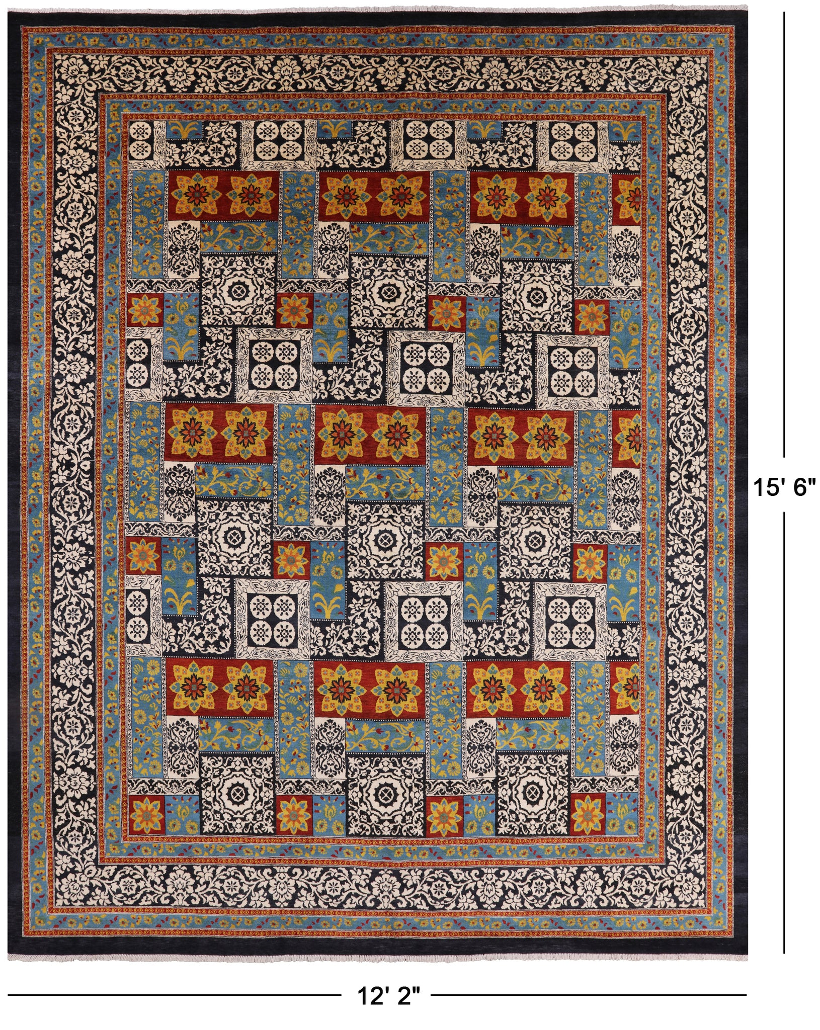 Black William Morris Hand Knotted Wool Area Rug - 12' 2" X 15' 6"