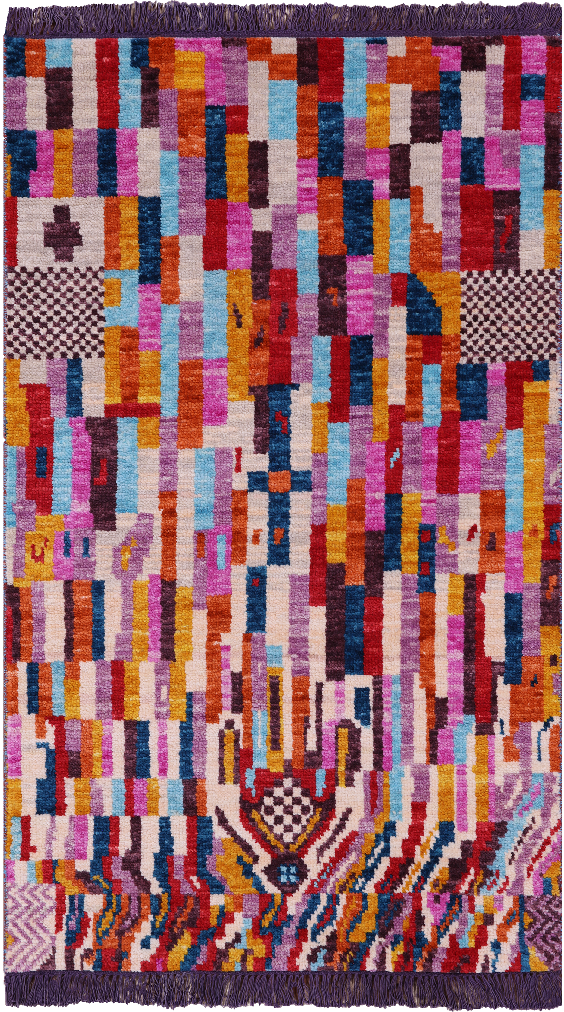 Moroccan Rugs are hand-knotted Oriental rugs that consist of a thick wool pile. Some Moroccan pieces are 100% Wool while others contain a Wool & Silk blend. Each Moroccan has a bit of history depicting strong aspect of culture, and its designs are inspired by nature and the imagination. These pieces of art are usually dyed in bold colors, and the designs are almost always geometric or tribal.