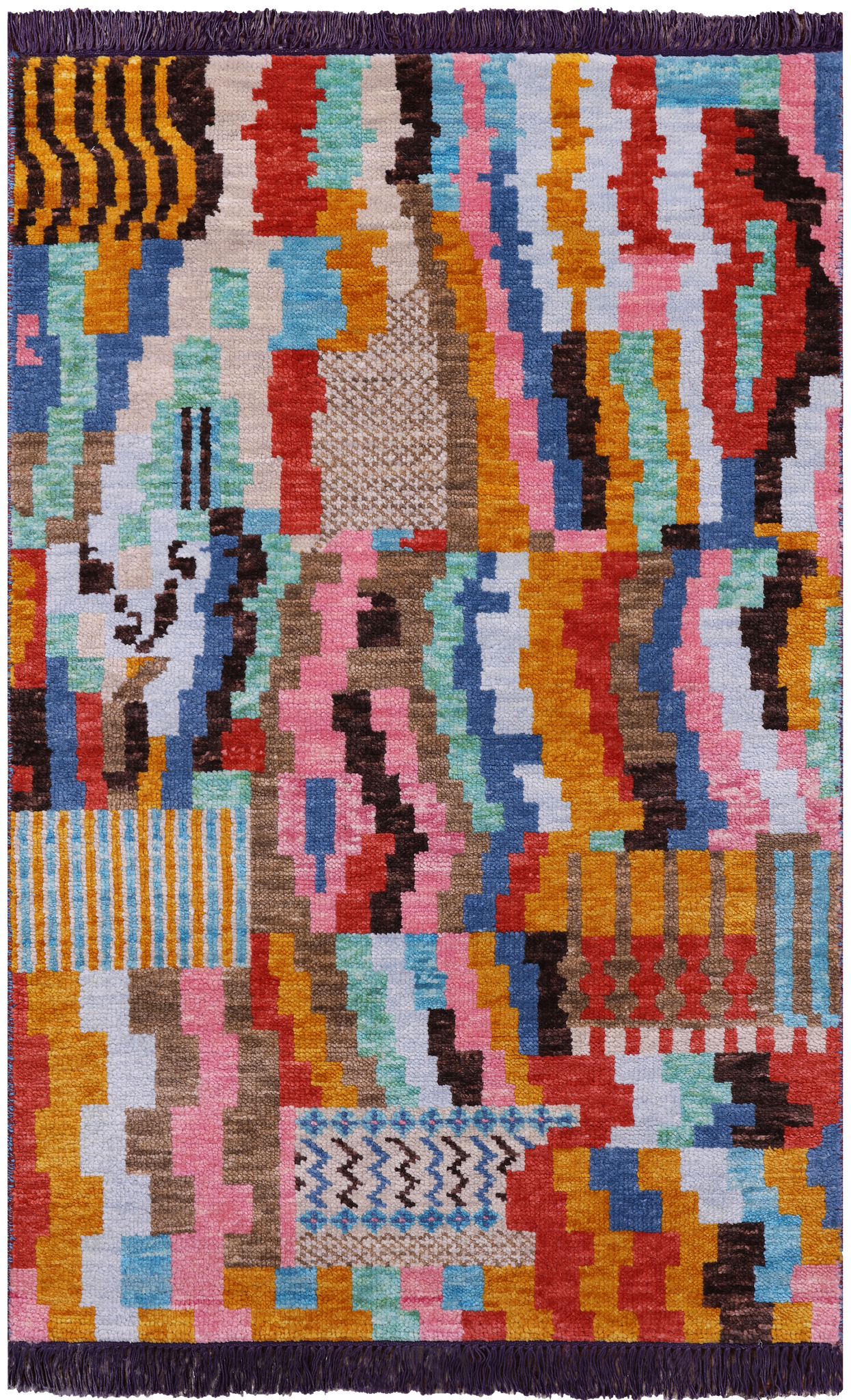 Moroccan Rugs are hand-knotted Oriental rugs that consist of a thick wool pile. Some Moroccan pieces are 100% Wool while others contain a Wool & Silk blend. Each Moroccan has a bit of history depicting strong aspect of culture, and its designs are inspired by nature and the imagination. These pieces of art are usually dyed in bold colors, and the designs are almost always geometric or tribal.