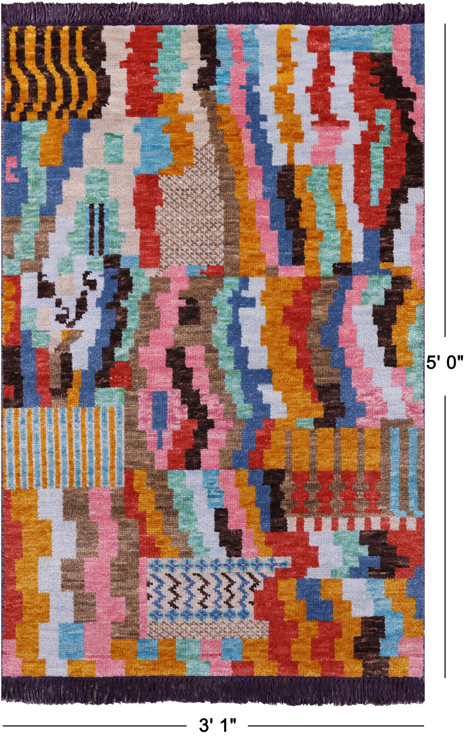 Tribal Moroccan Hand-Knotted Wool Rug - 3' 1" X 5' 0"