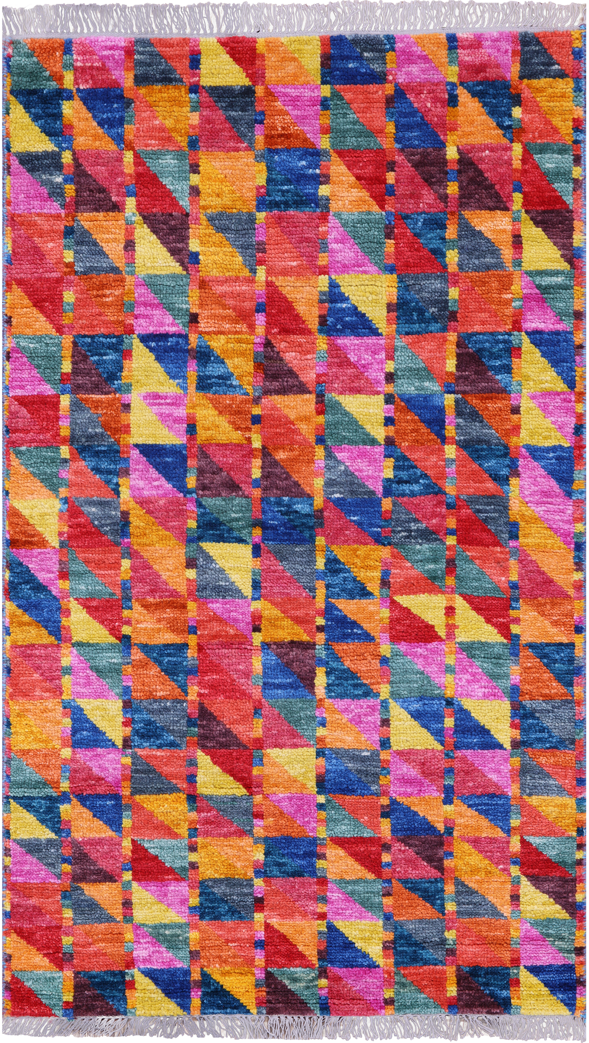 Moroccan Rugs are hand-knotted Oriental rugs that consist of a thick wool pile. Some Moroccan pieces are 100% Wool while others contain a Wool & Silk blend. Each Moroccan has a bit of history depicting strong aspect of culture, and its designs are inspired by nature and the imagination. These pieces of art are usually dyed in bold colors, and the designs are almost always geometric or tribal.