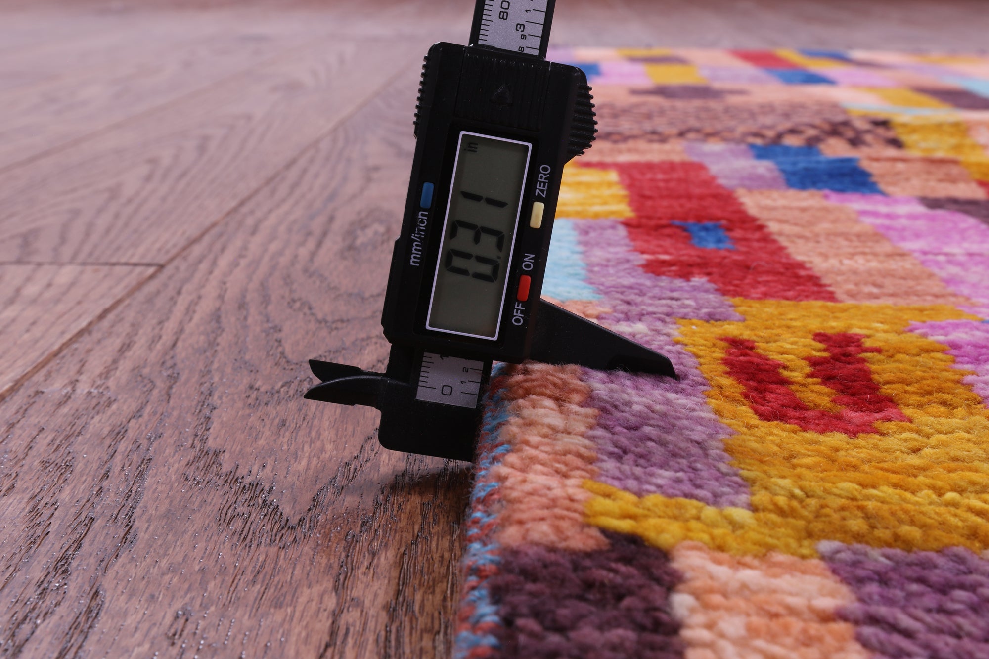 Moroccan Rugs are hand-knotted Oriental rugs that consist of a thick wool pile. Some Moroccan pieces are 100% Wool while others contain a Wool & Silk blend. Each Moroccan has a bit of history depicting strong aspect of culture, and its designs are inspired by nature and the imagination. These pieces of art are usually dyed in bold colors, and the designs are almost always geometric or tribal.