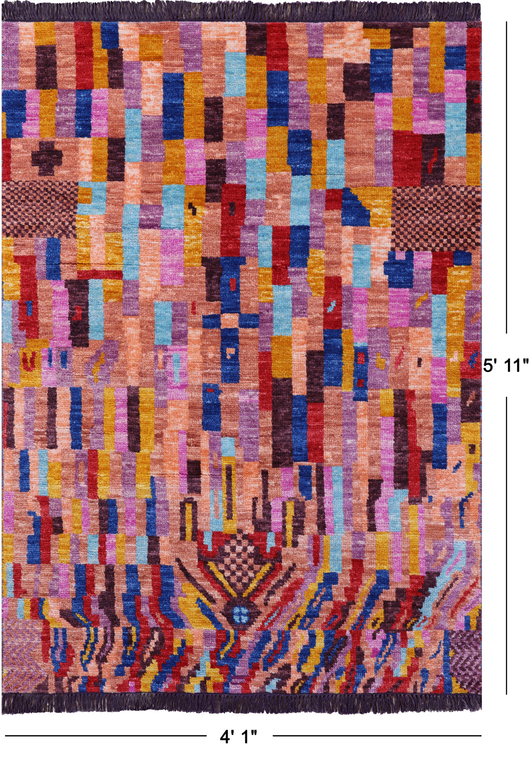Tribal Moroccan Hand-Knotted Wool Rug - 4' 1" X 5' 11"