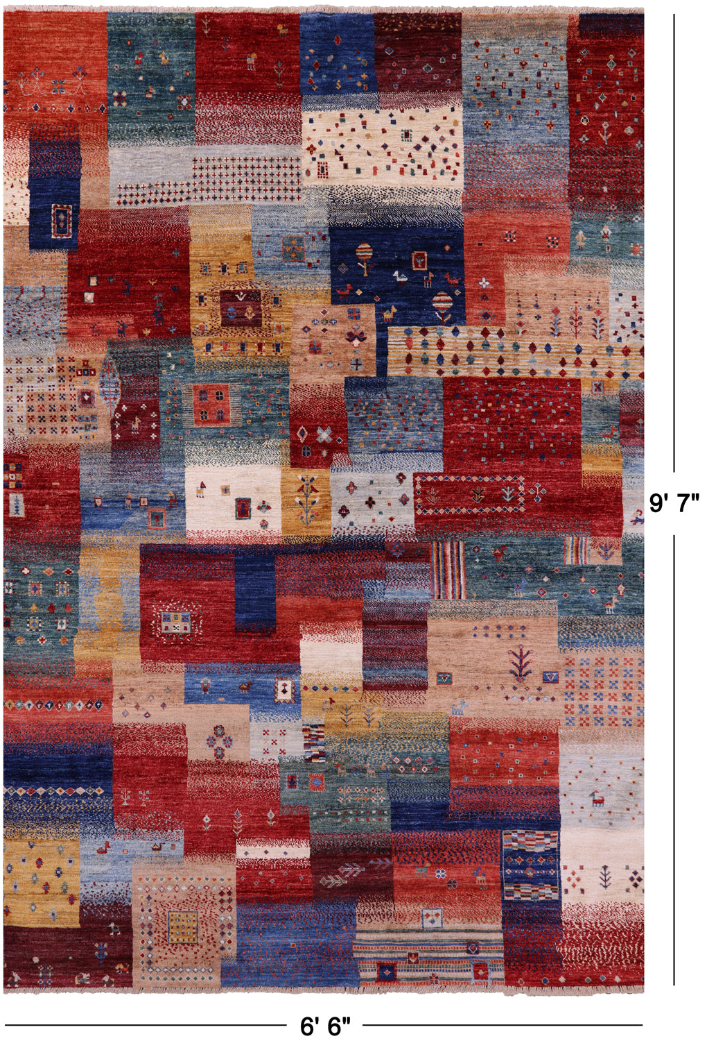 Tribal Persian Gabbeh Handmade Wool Rug - 6' 6" X 9' 7"