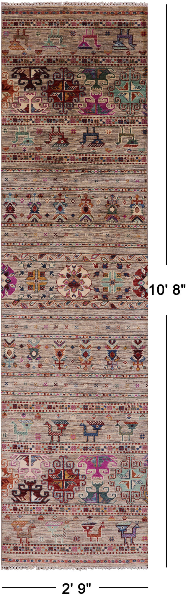 Tribal Persian Gabbeh Handmade Wool Runner Rug - 2' 9" X 10' 8"