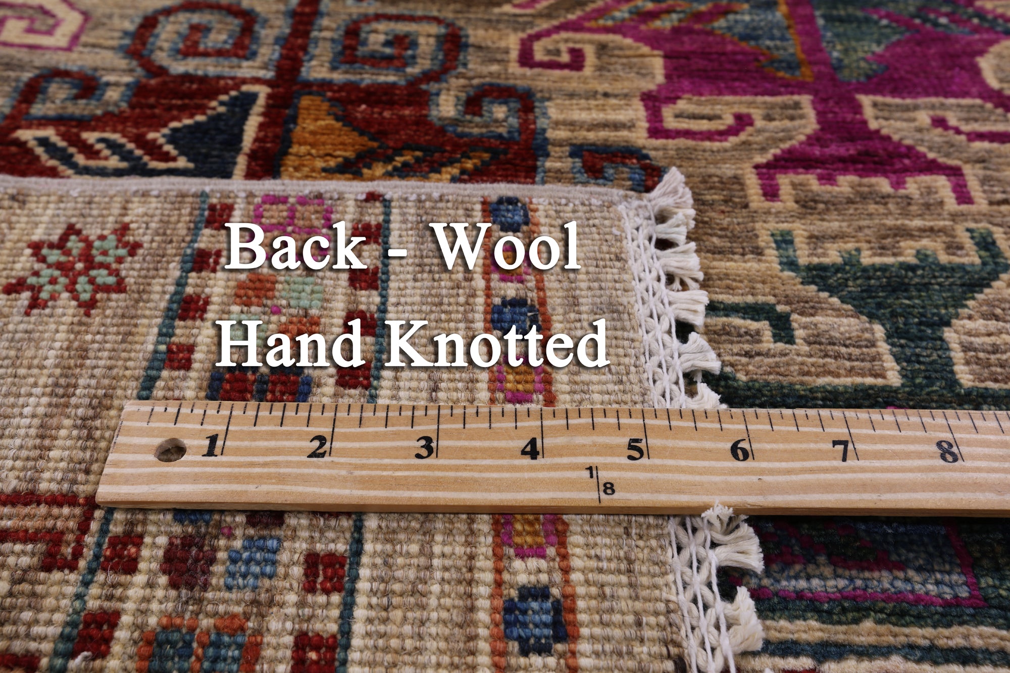 Gabbeh Rugs originate from South-Central Iran, and feature hand-spun wool in both the pile and foundation as well as all natural dyes. Gabbeh patterns are very basic, mostly consisting of colorful rectangular objects resembling animals, or people, abstract scenery used to tell a story, depict a person or place. They contain soft lustrous wool, and emphasizes color on design detail. These Classic Persian Rugs are popular in homes with contemporary & modern interior.