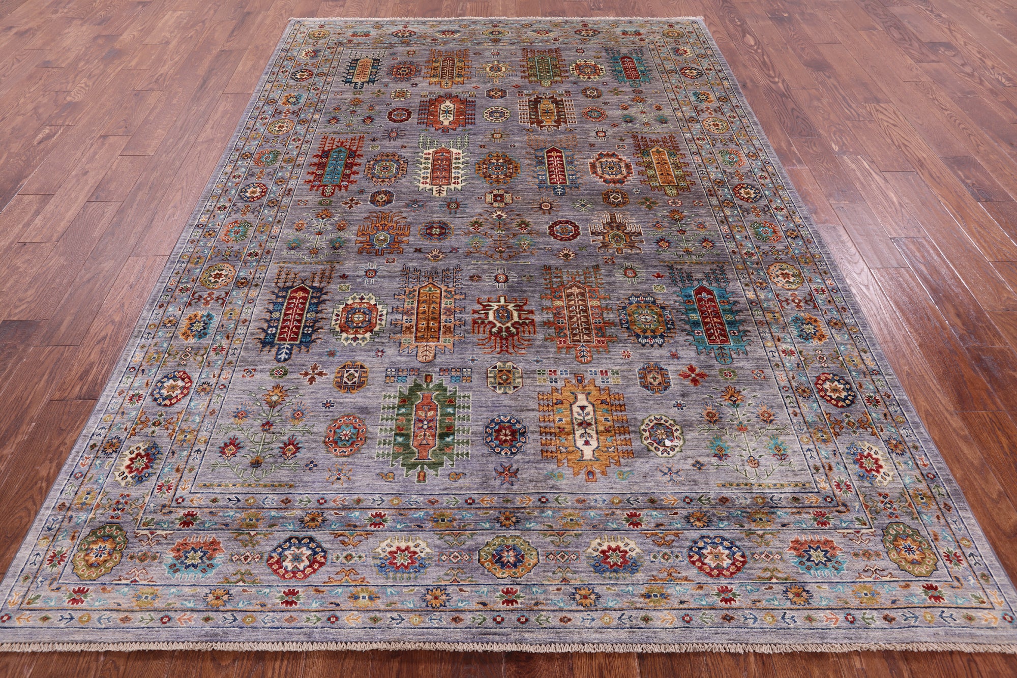 Grey Tribal Persian Hand Knotted Wool Rug - 6' 9" X 9' 8"
