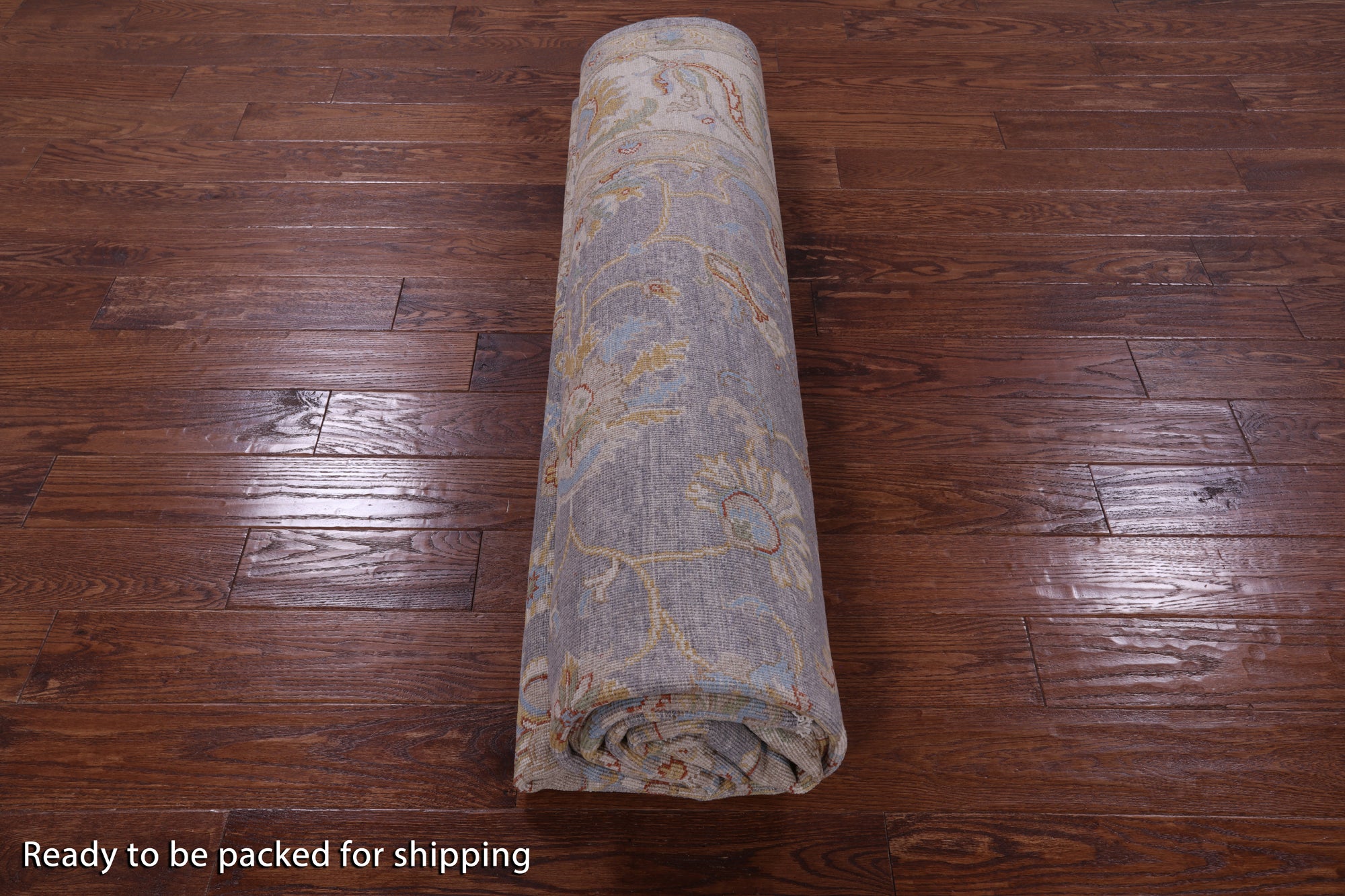 Grey Turkish Oushak Handmade Wool Rug - 8' 10" X 11' 5"