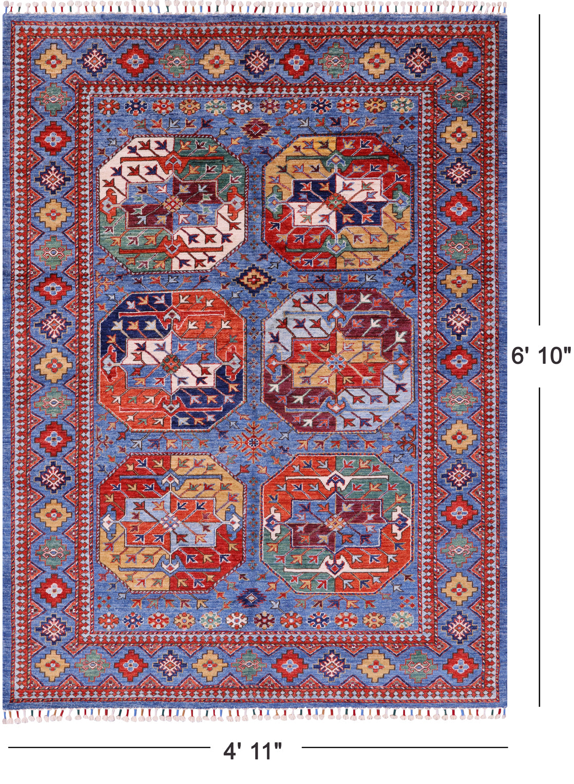 Turkmen Ersari Hand Knotted Wool Rug - 4' 11" X 6' 10"