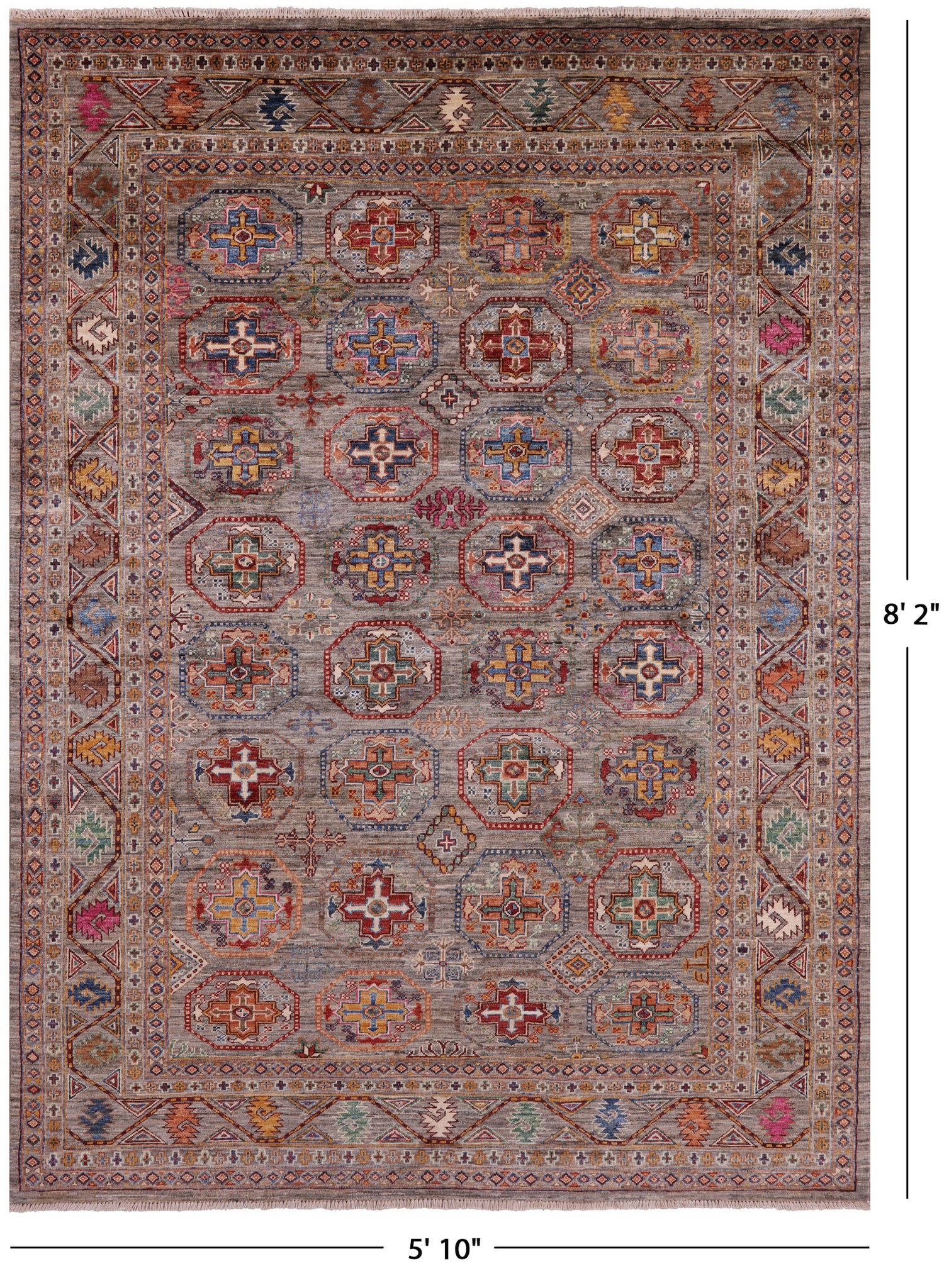 Turkmen Ersari Hand Knotted Wool Rug - 5' 10" X 8' 2"
