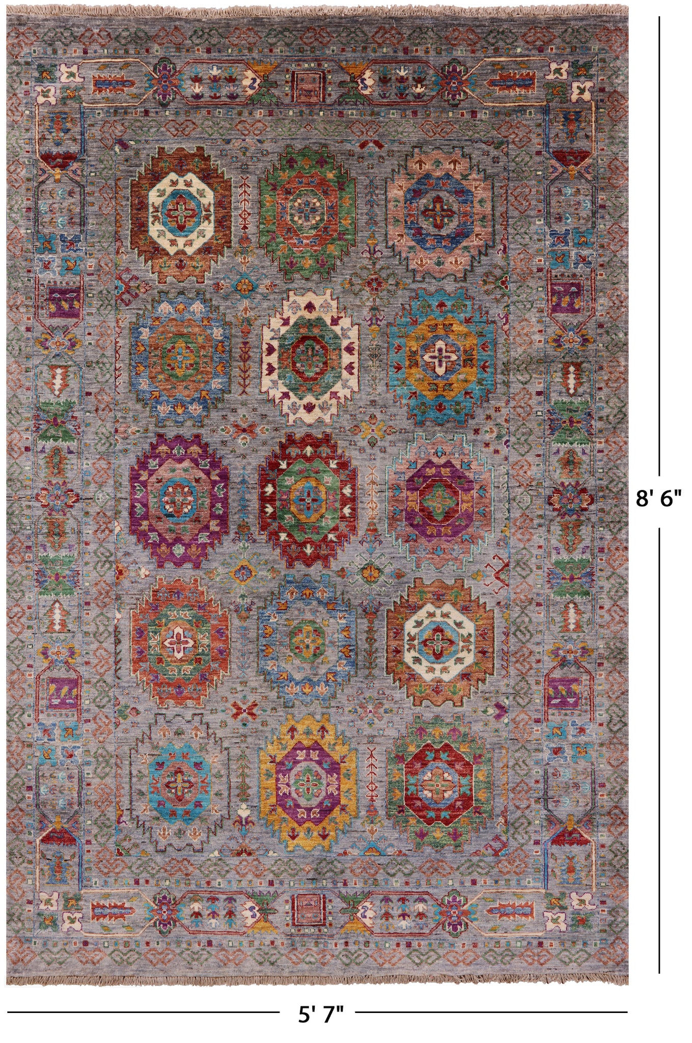 Turkmen Ersari Hand Knotted Wool Rug - 5' 7" X 8' 6"