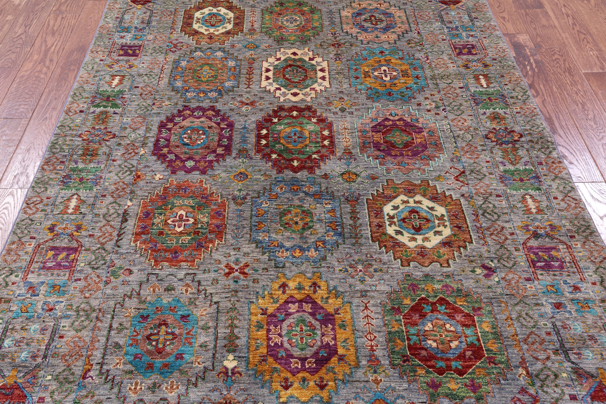 These tribal inspired rugs originated in central Asia, and are distinctive for their dominating color scheme with dark reds, blues, black and at times ivory. These rugs do tend to be small or midsized and have soft wool, but have a hard pile that is cut thin, which makes them quite durable. Turkman rugs are the finest of the tribal rugs that have been produced to date.