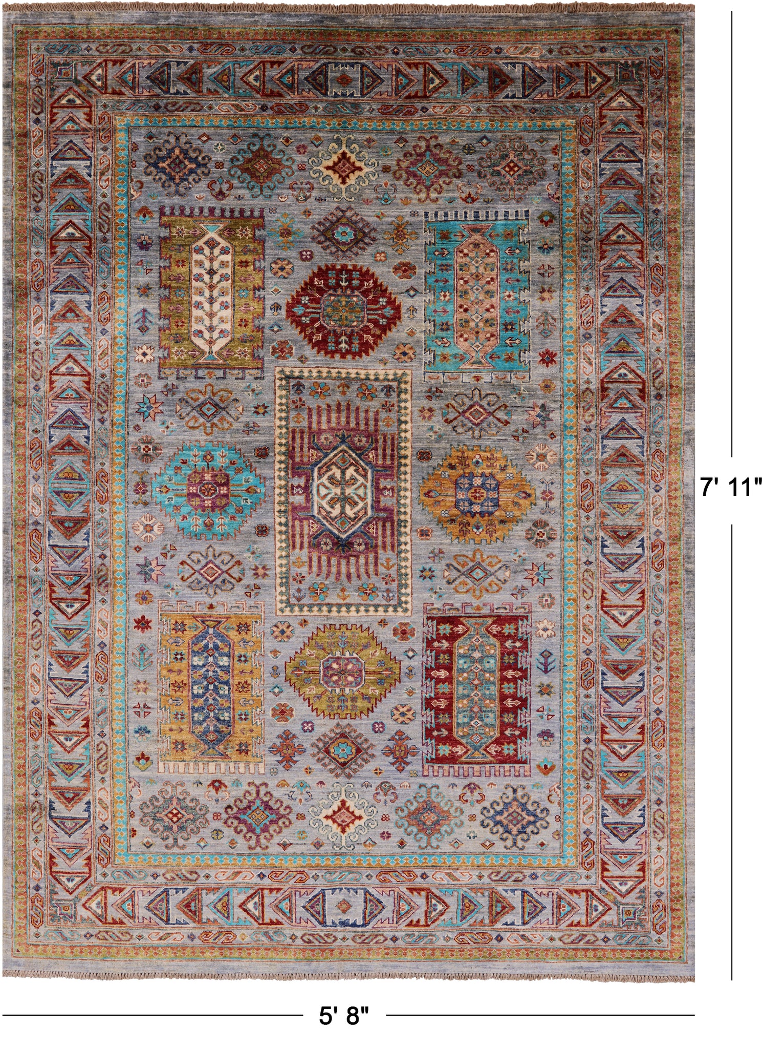 Turkmen Ersari Hand Knotted Wool Rug - 5' 8" X 7' 11"