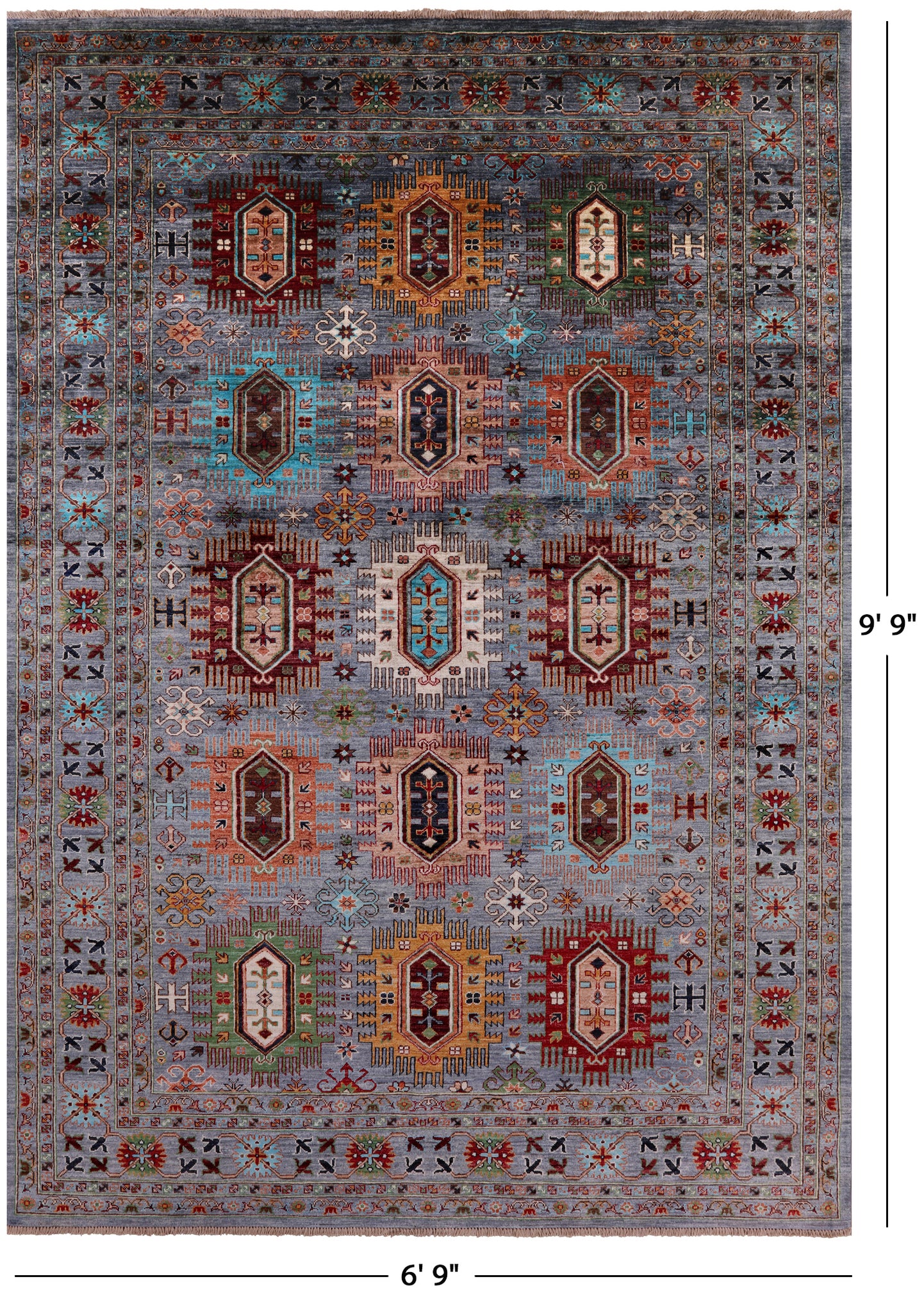 Turkmen Ersari Hand Knotted Wool Rug - 6' 9" X 9' 9"