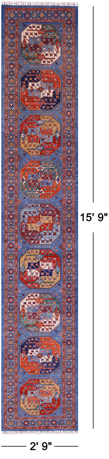 Turkmen Ersari Hand Knotted Wool Runner Rug - 2' 9" X 15' 9"