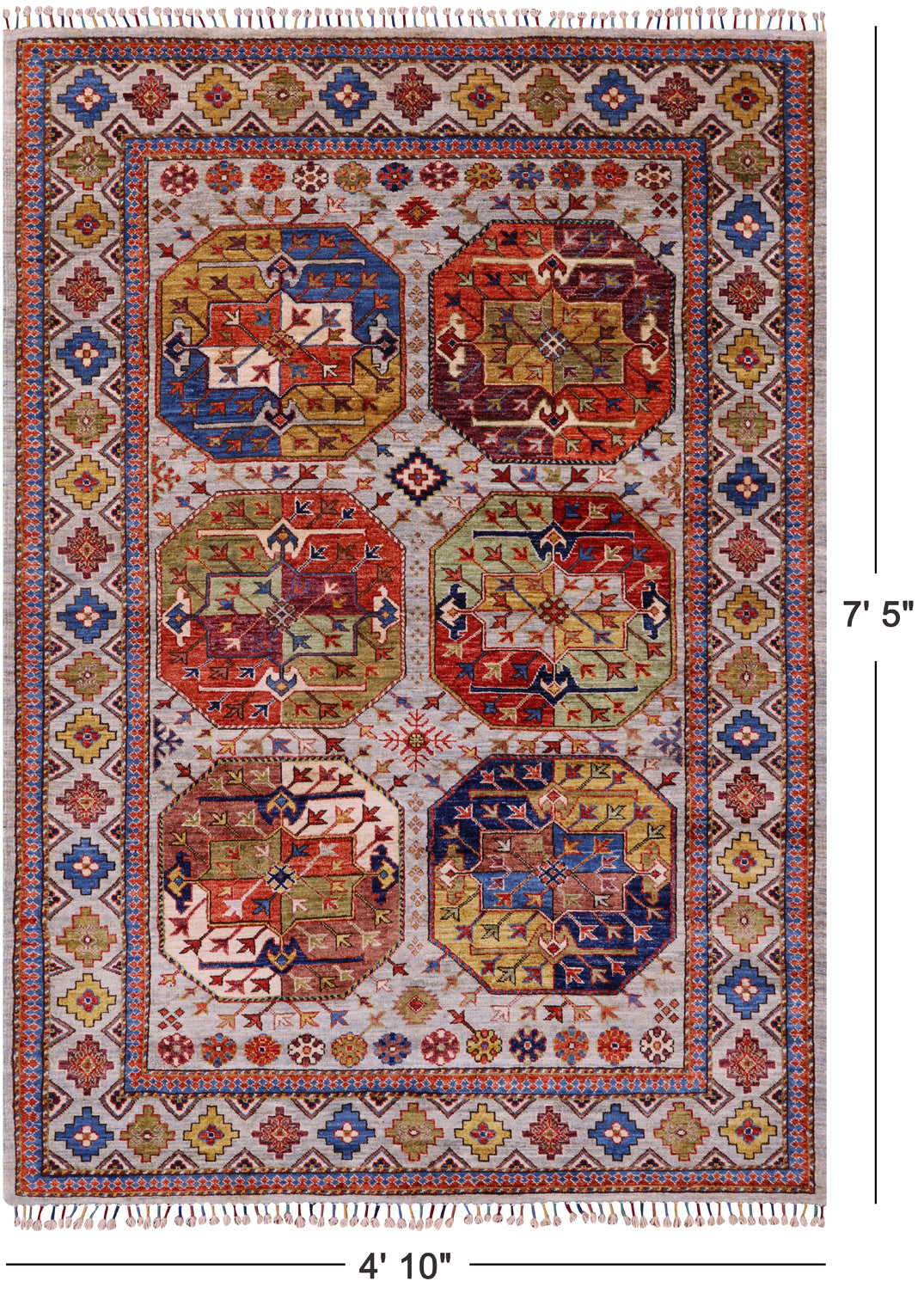 Turkmen Ersari Handmade Wool Rug - 4' 10" X 7' 5"
