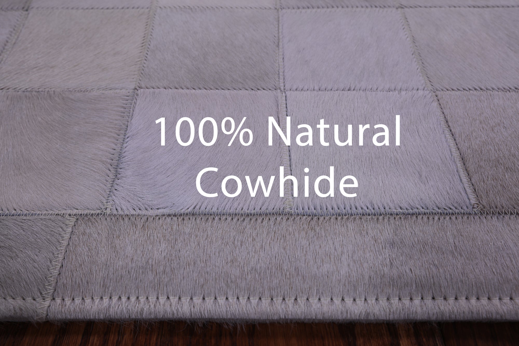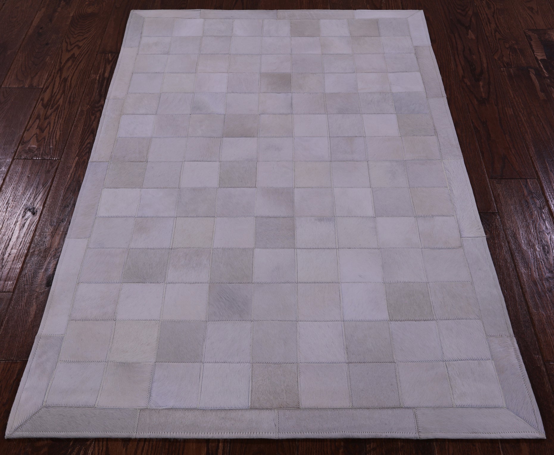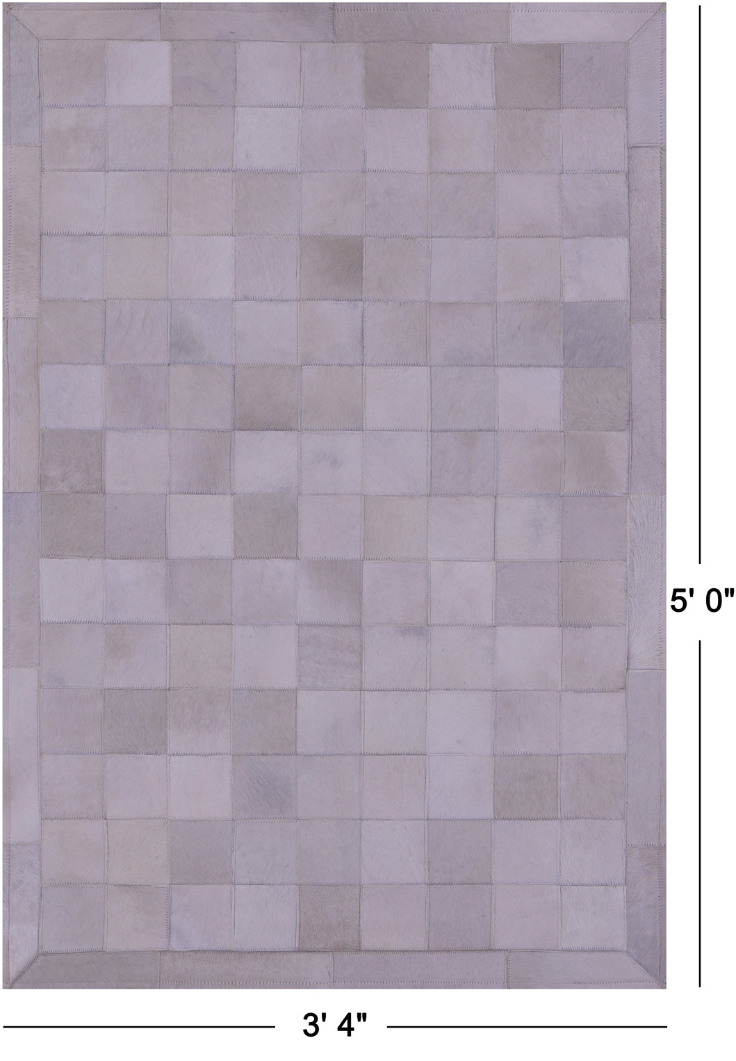 White Natural Cowhide Hand Stitched Patchwork Rug - 3' 4" X 5' 0"