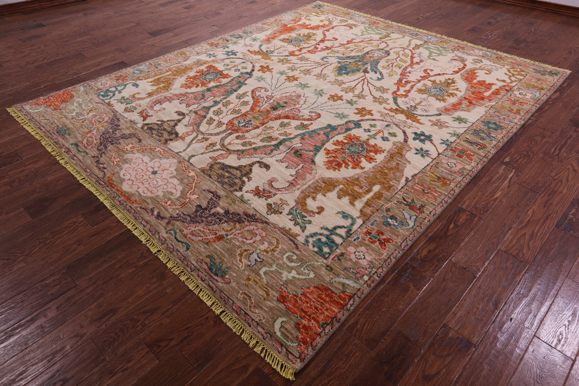 Ivory Turkish Oushak Hand Knotted Wool Rug - 8' 2" X 10' 0"