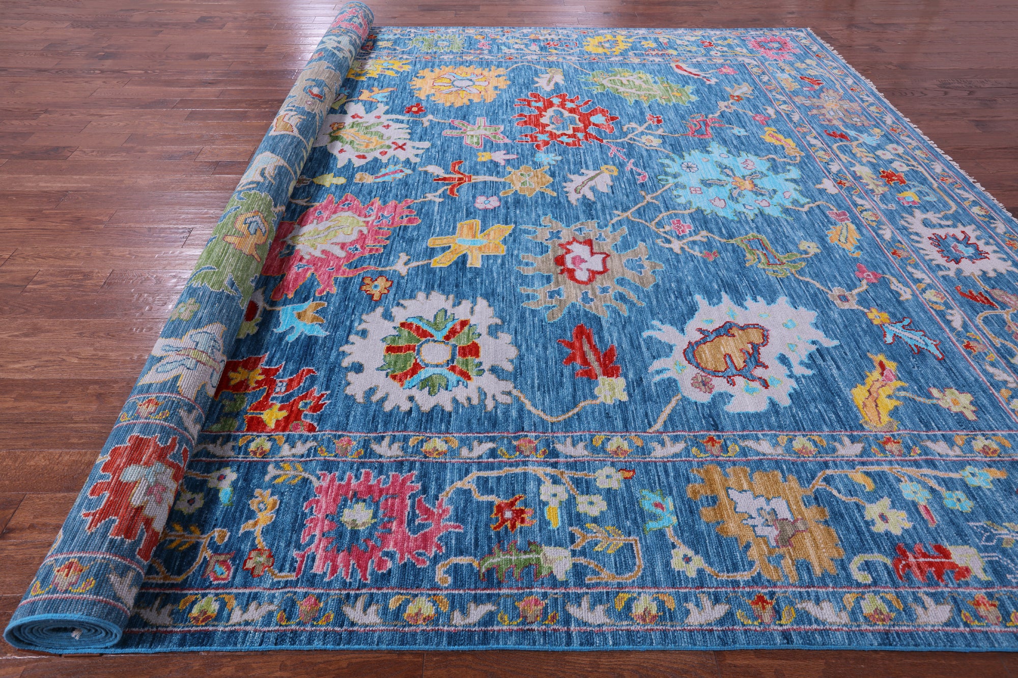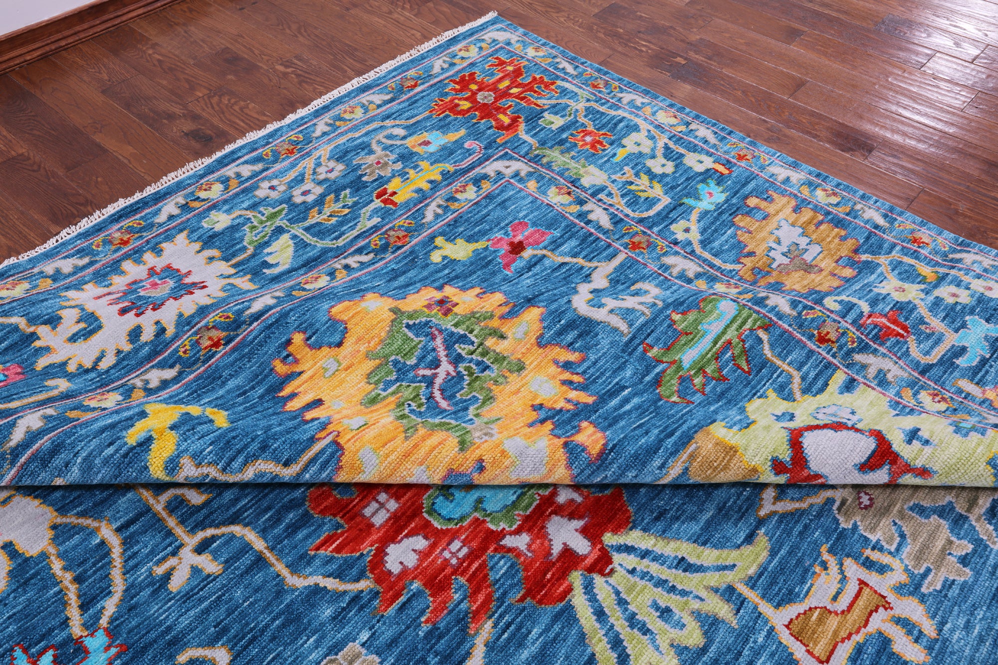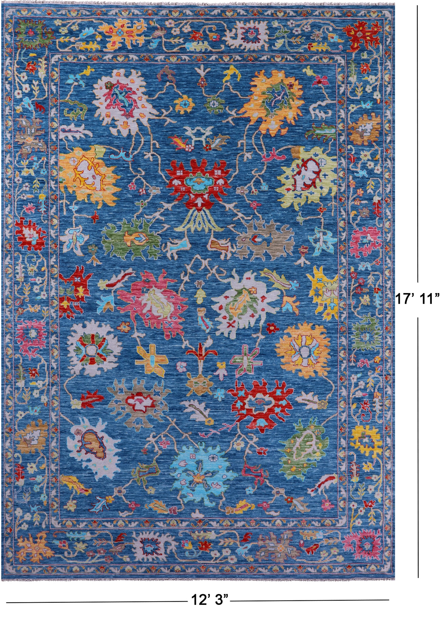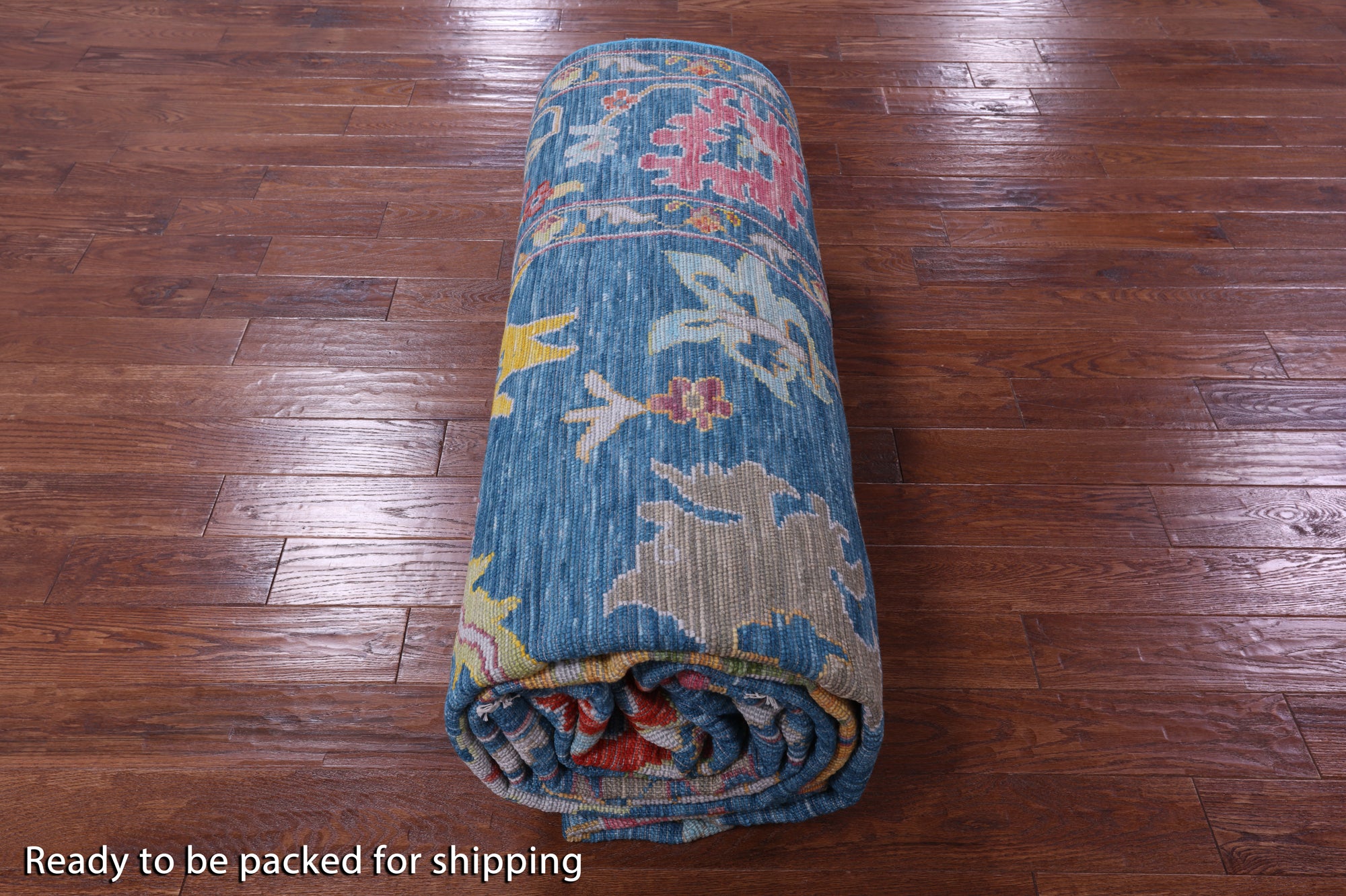 Blue Turkish Oushak Hand Knotted Wool Rug - 12' 3" X 17' 11"