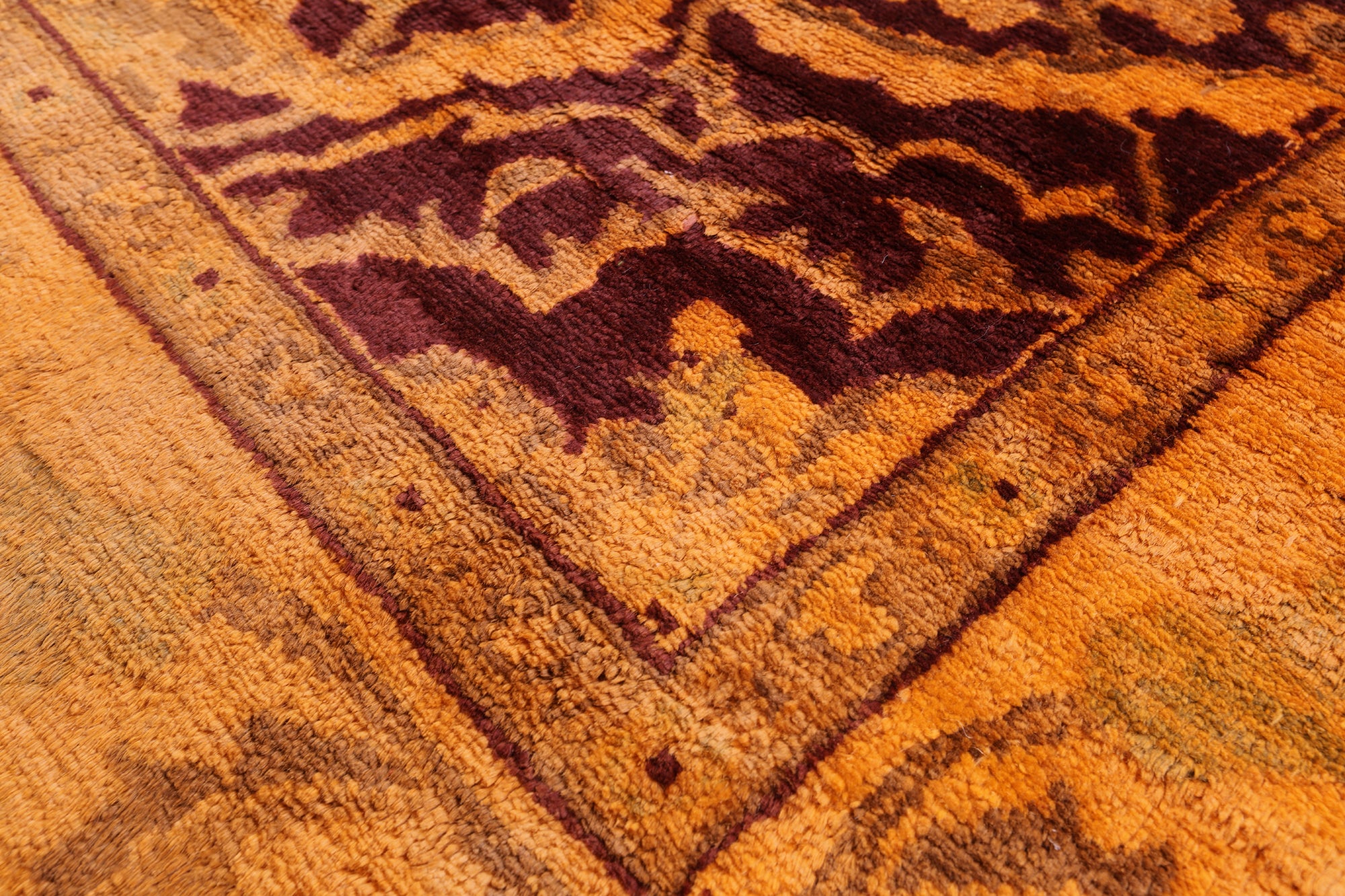 The Recognizable vivacious colors of overdyed involves a five step process. Various washes and natural sun bleaching, helps to soften some of the harsher outlines of vintage patterns then a blank canvas is created. Once the rug is ready to be dyed, it is hand dyed several times using natural dyes. The colors from the natural dyes gives them their lively splash of color.