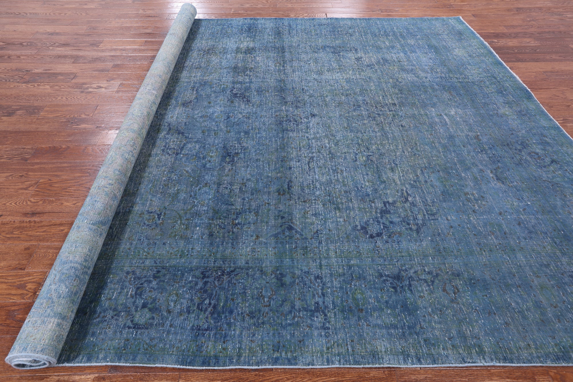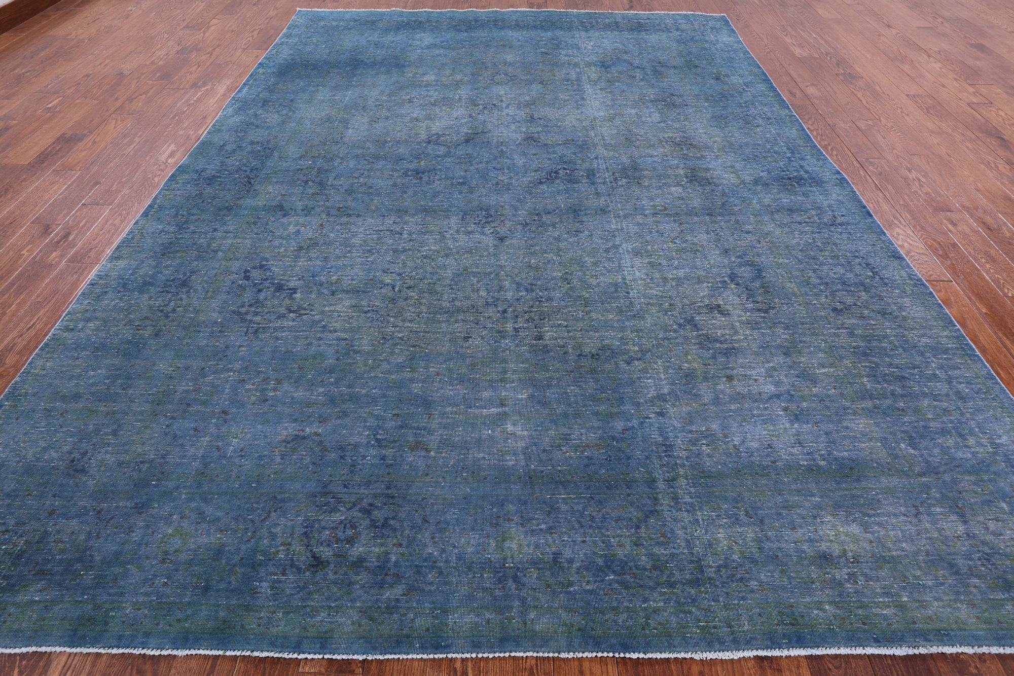 Blue Persian Overdyed Hand Knotted Wool Area Rug - 9' 4" X 12' 10"