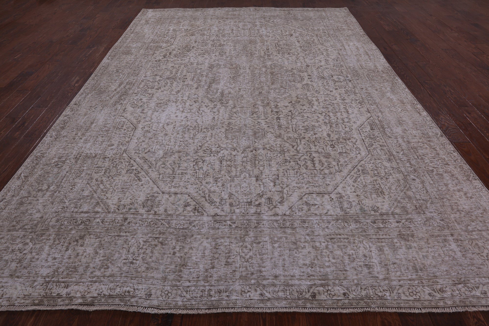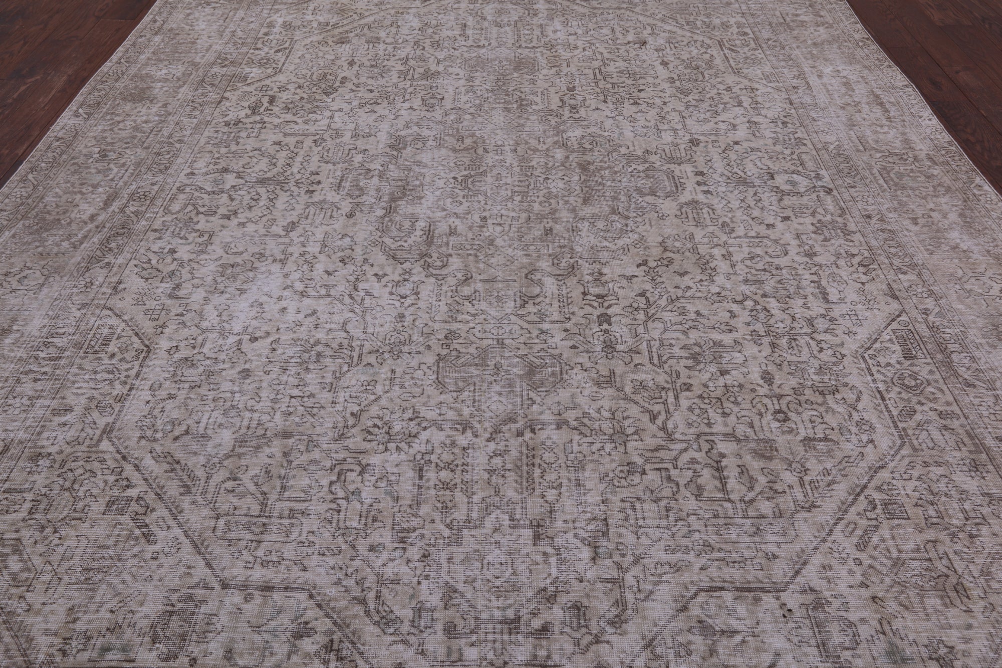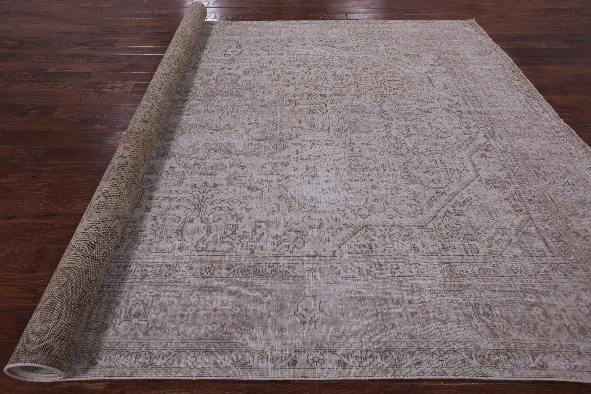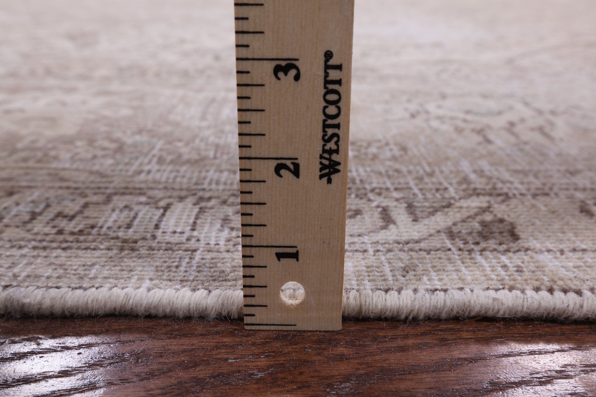 Ivory Persian Vintage White Wash Hand Knotted Wool Area Rug - 9' 1" X 12' 6"