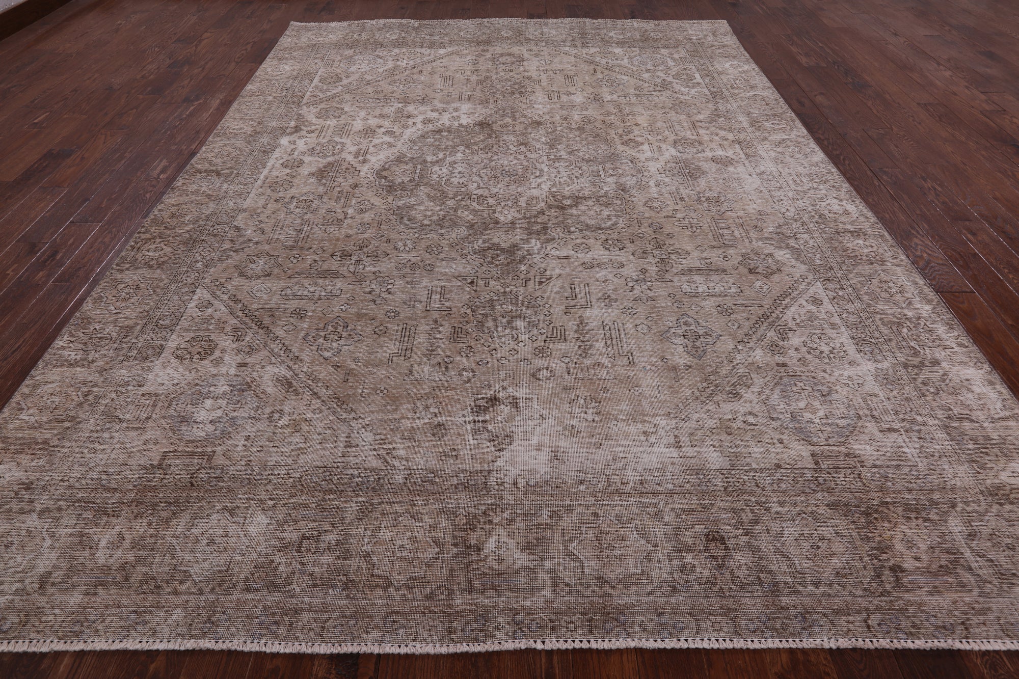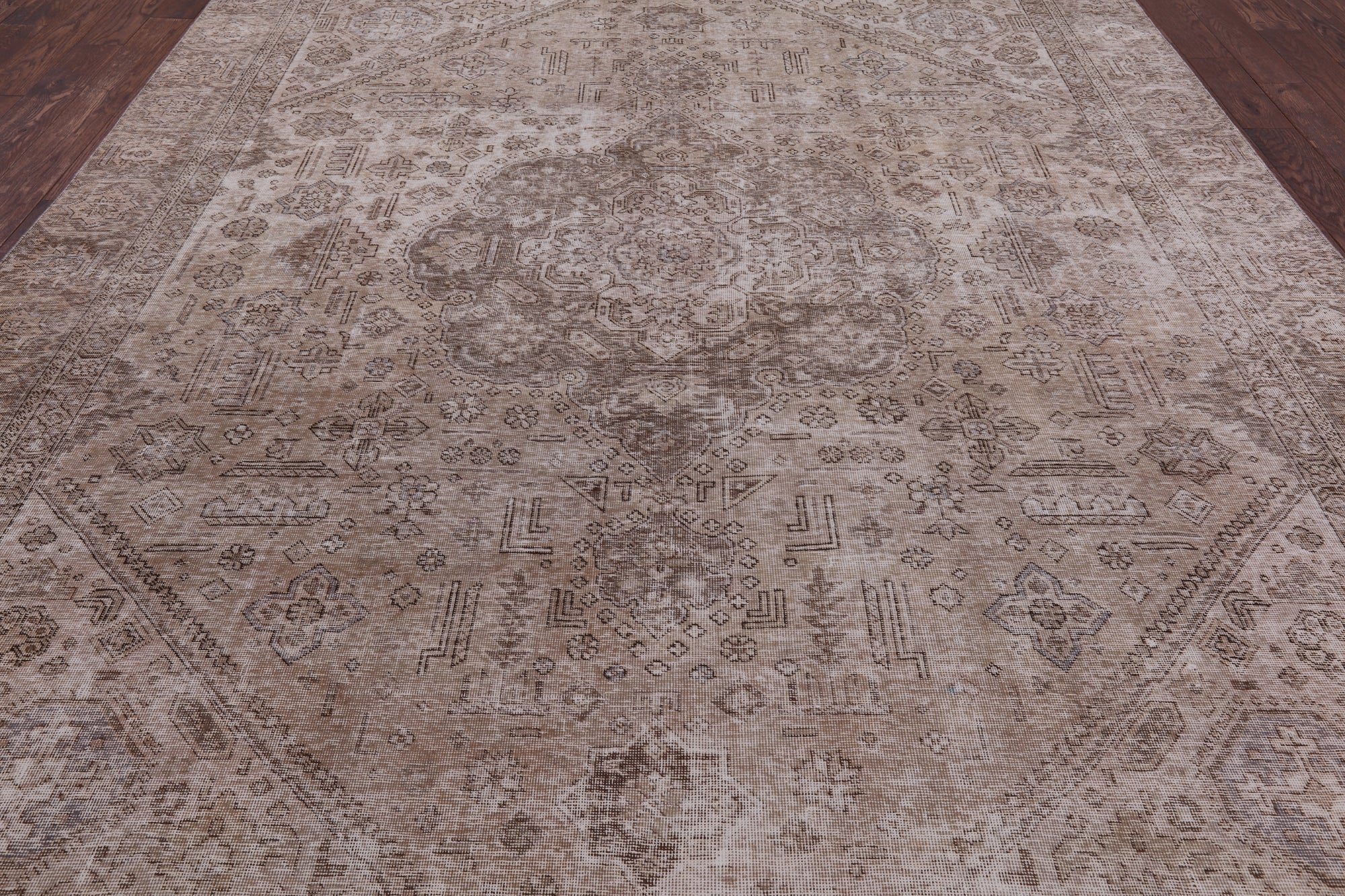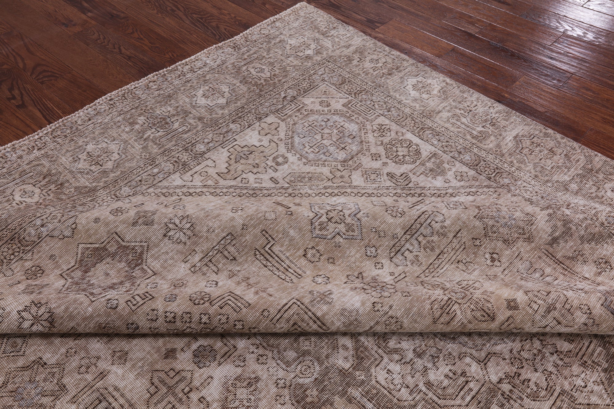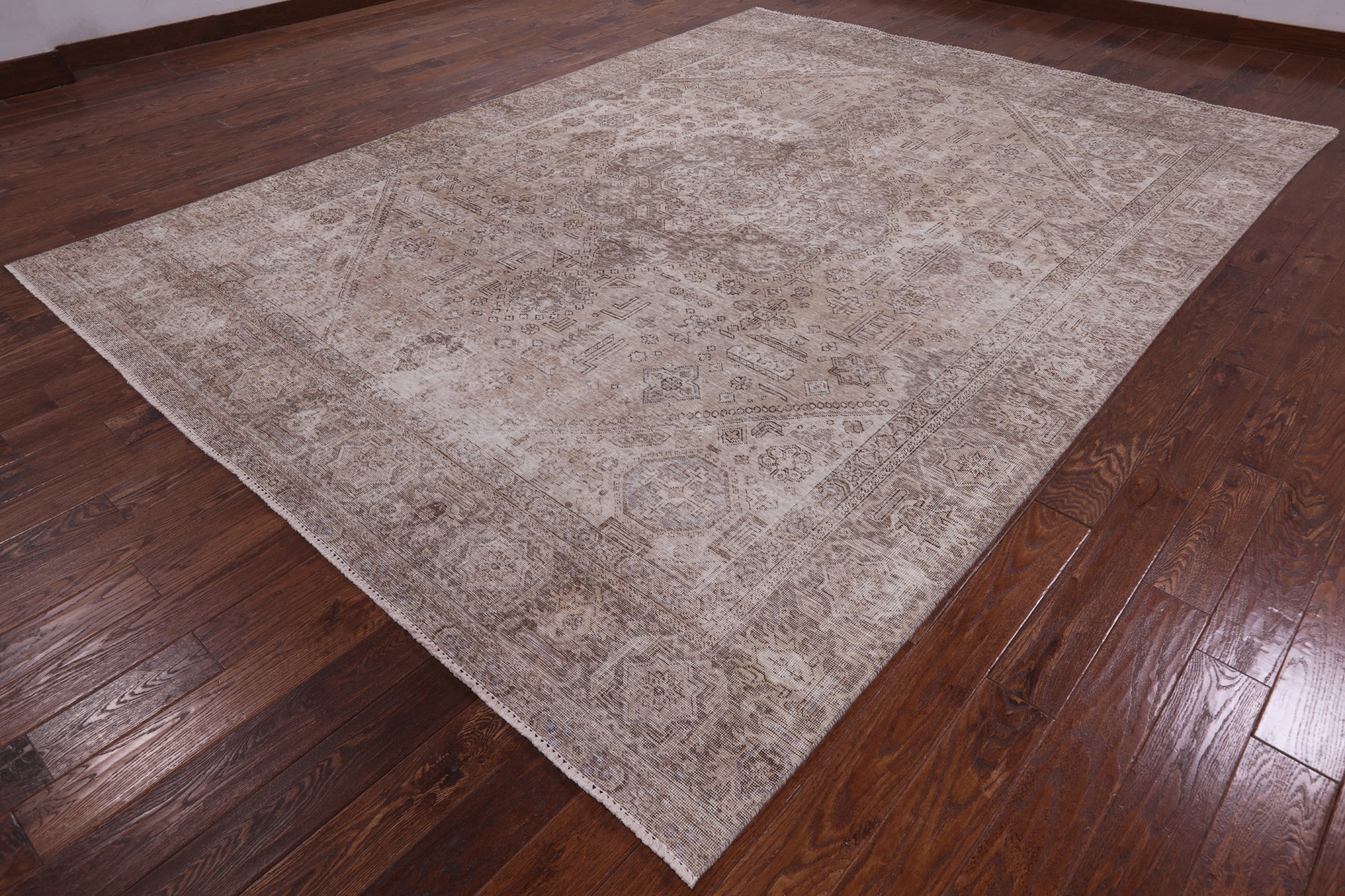 Persian Vintage White Wash Hand Knotted Wool Area Rug - 9' 2" X 12' 7"