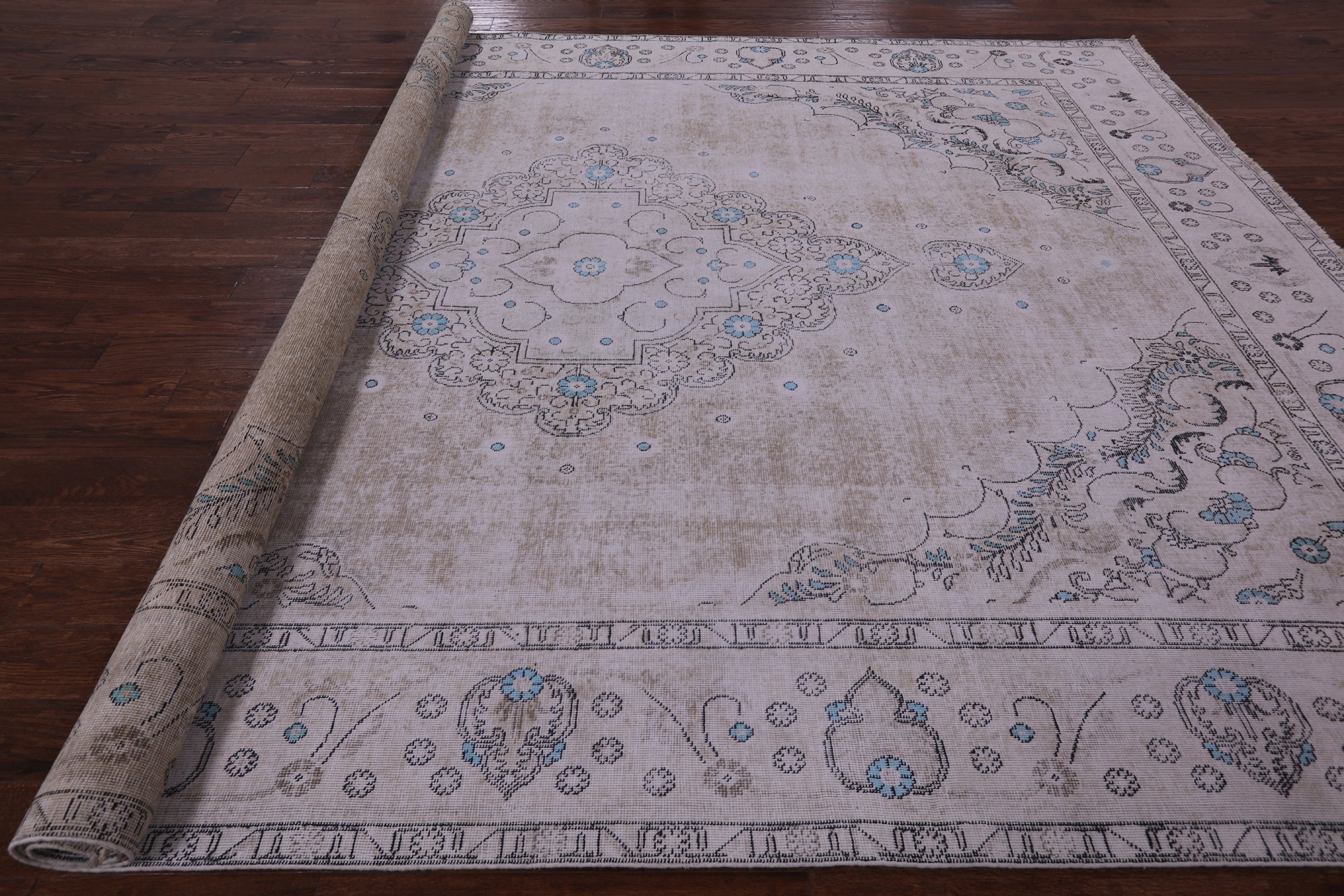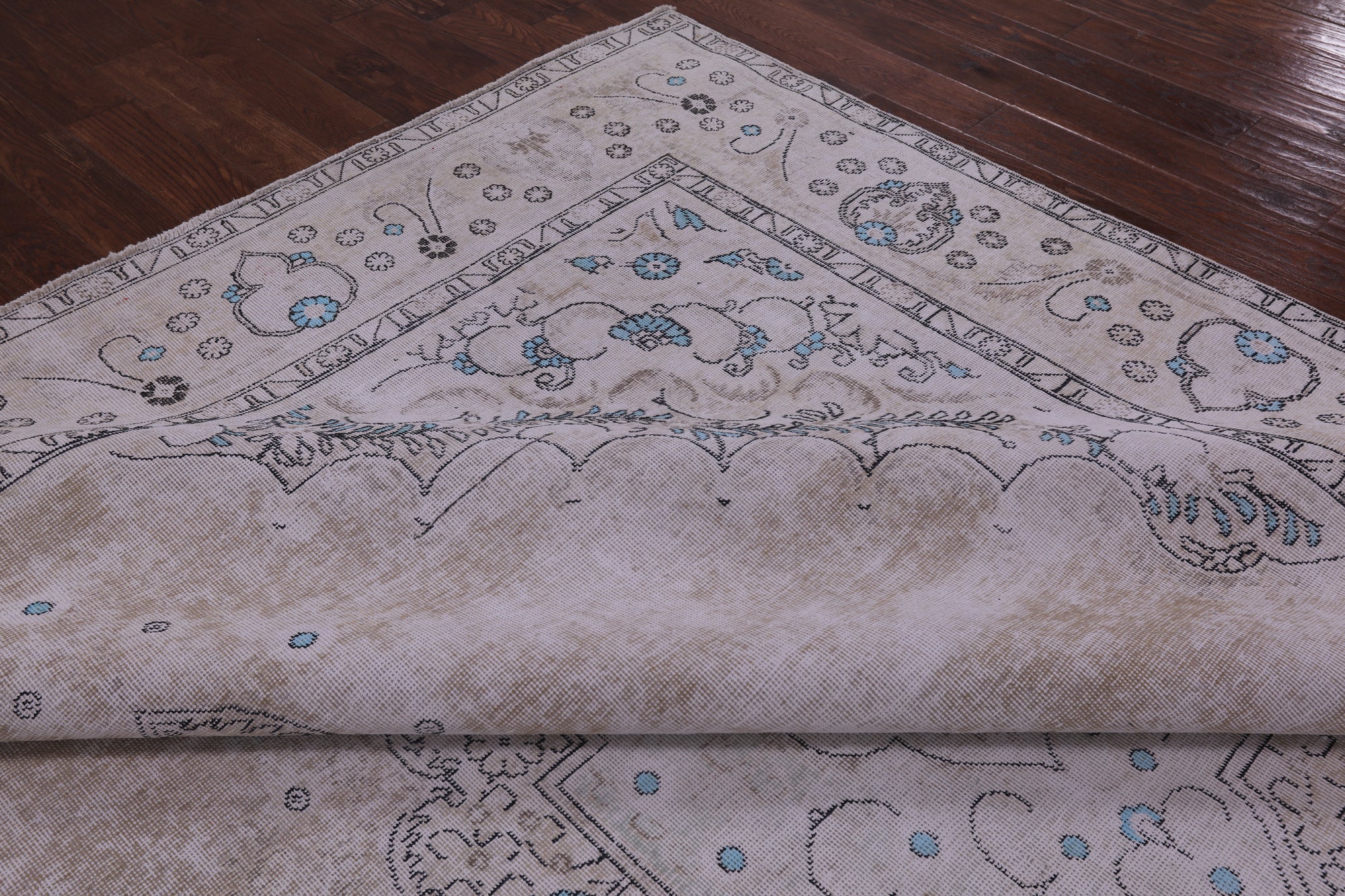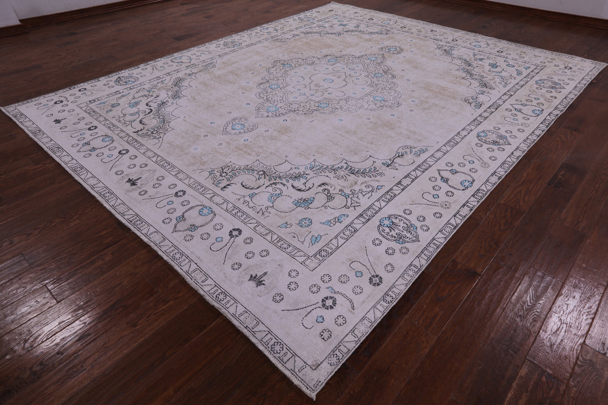 Ivory Persian Vintage White Wash Hand Knotted Wool Rug - 9' 7" X 12' 2"