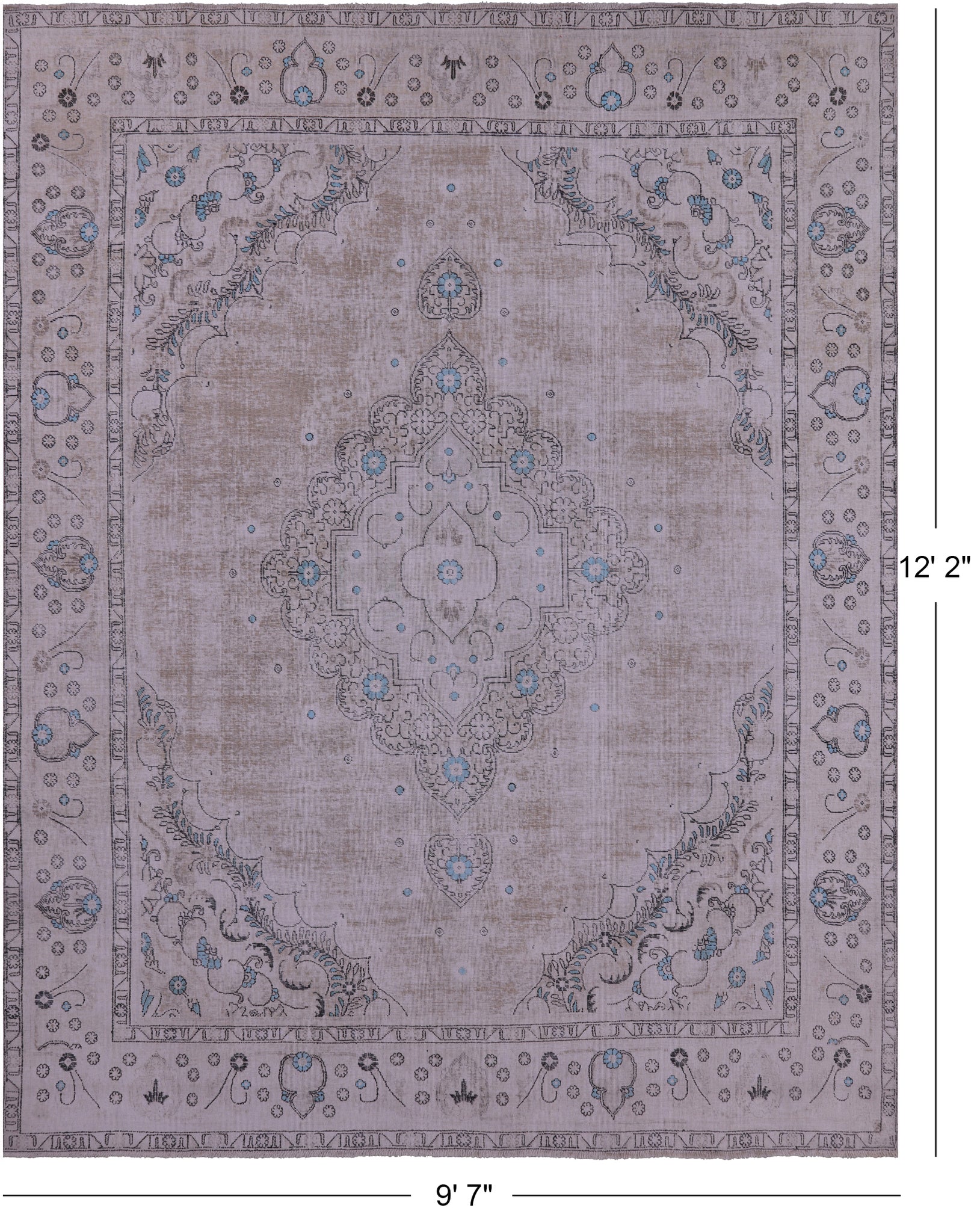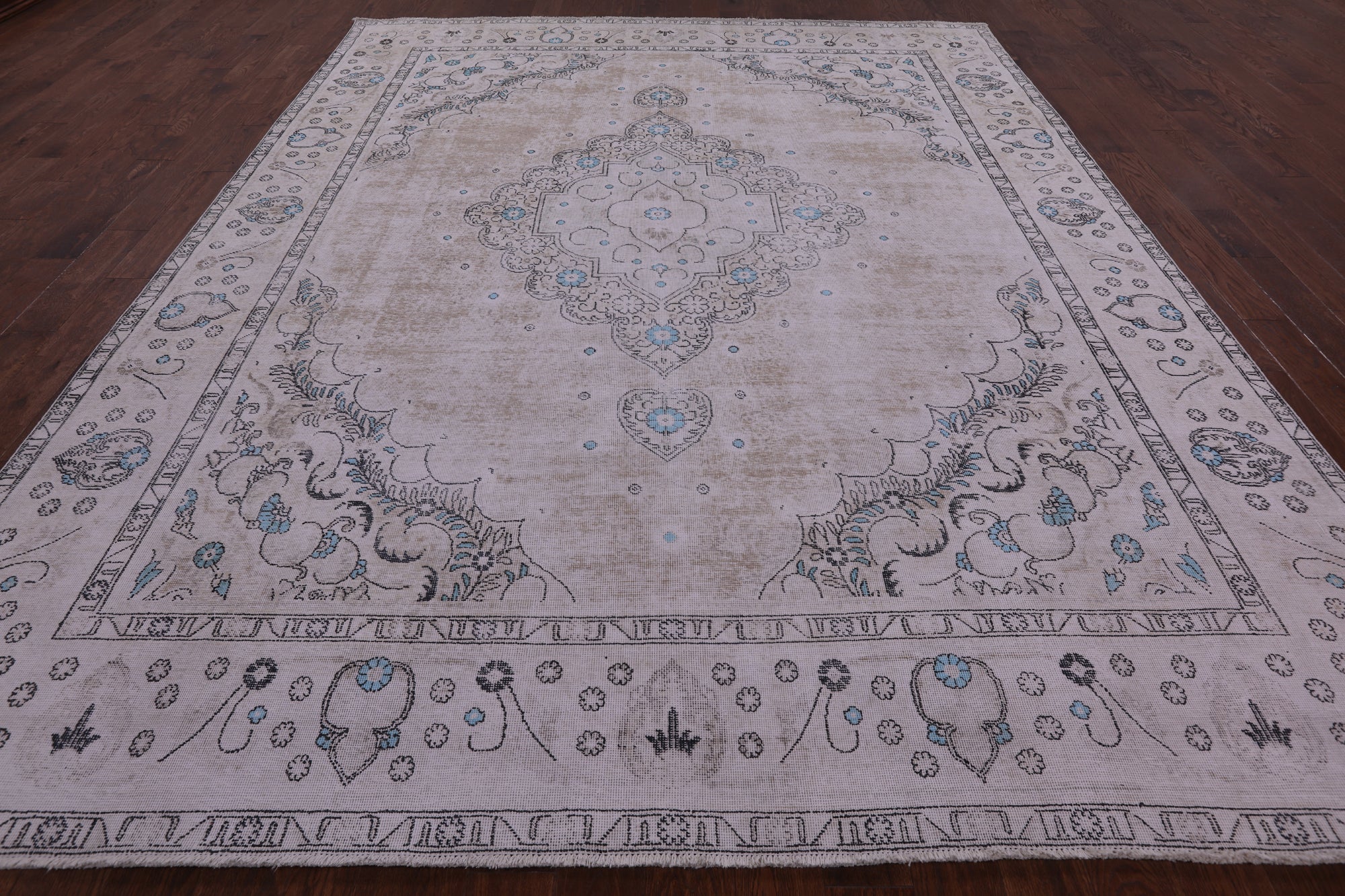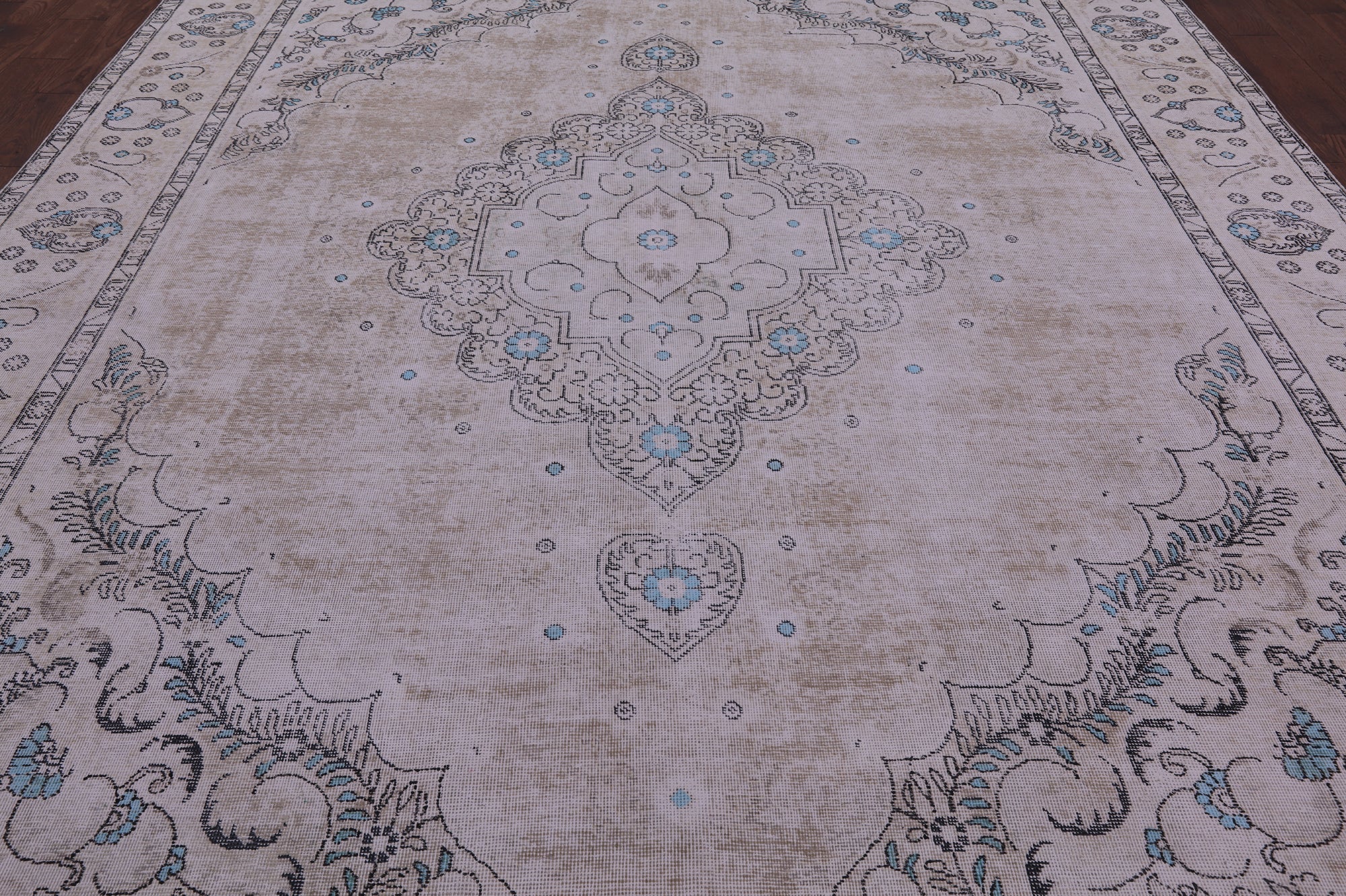 Ivory Persian Vintage White Wash Hand Knotted Wool Rug - 9' 7" X 12' 2"