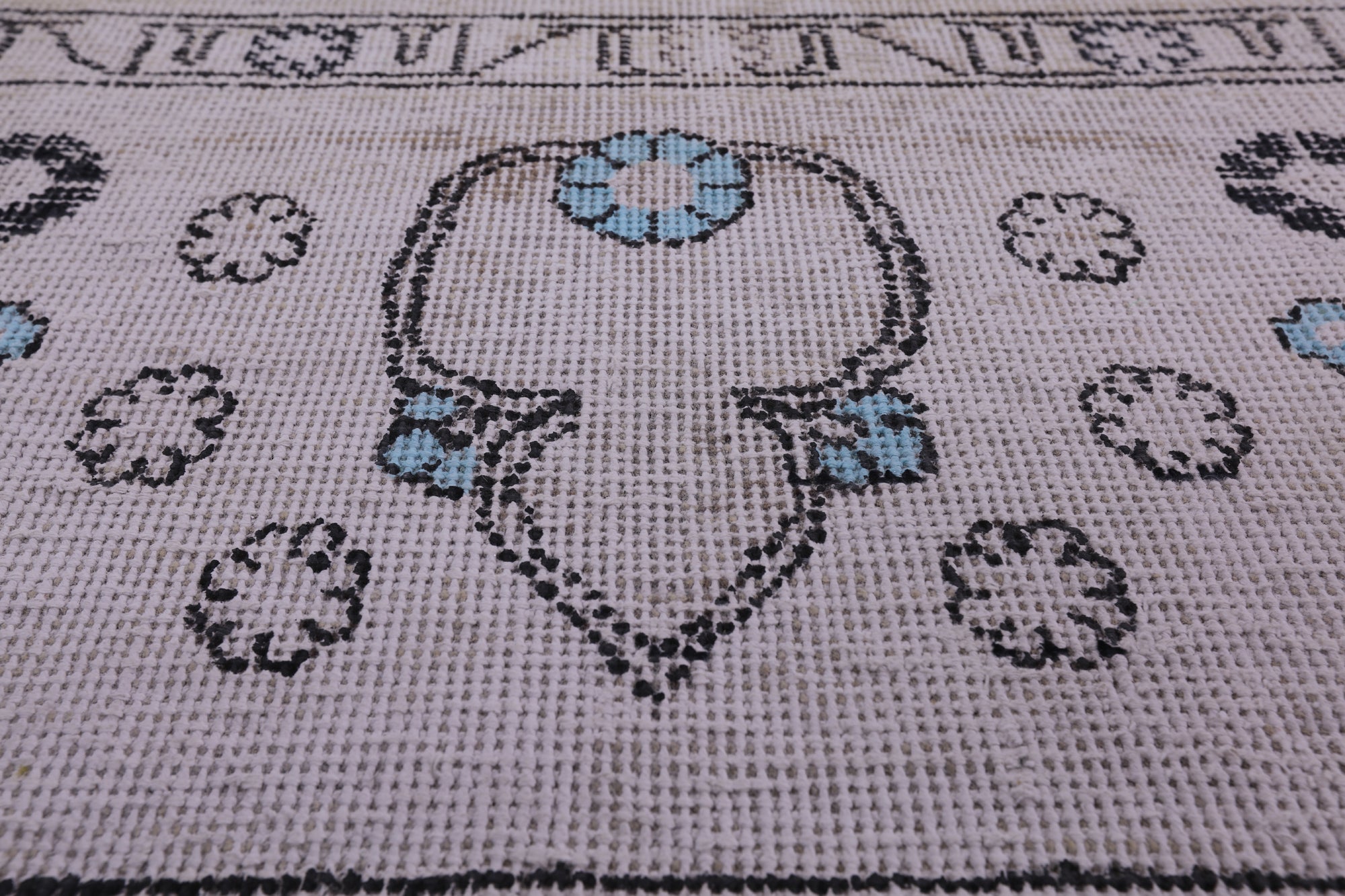 White wash rugs undergo a series of processes to neutralize & lift the original color of the rug. This includes a mixture of washes & natural sun bleaching. During this process, the pattern is not removed, but instead the outline of the design is left, creating a foundation ready to be re-imagined. This piece has the charming white washed light colors palette that gives it the highly appreciated vintage look, plus the density quality of a high number of knots per square inch.