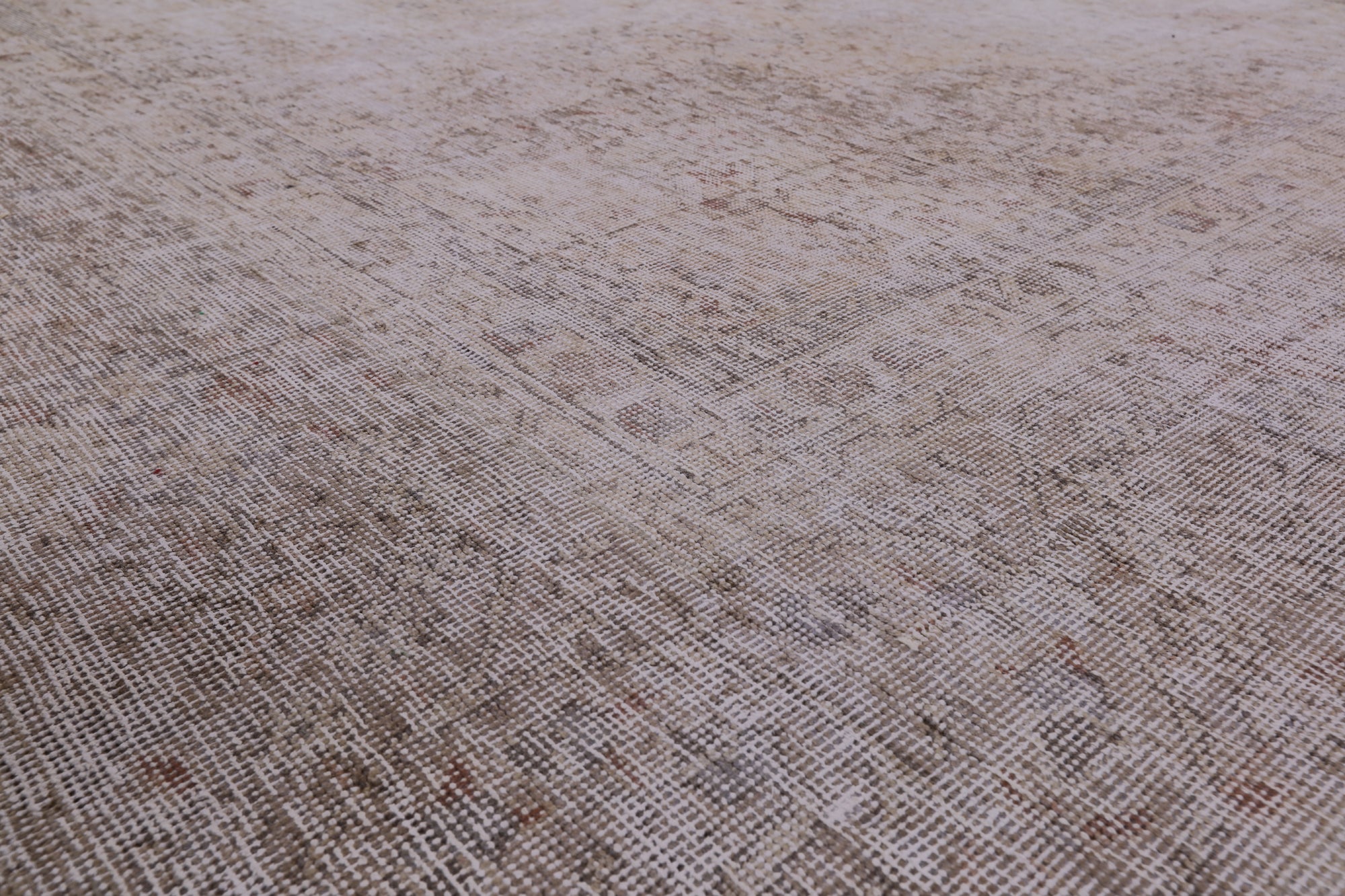 White wash rugs undergo a series of processes to neutralize & lift the original color of the rug. This includes a mixture of washes & natural sun bleaching. During this process, the pattern is not removed, but instead the outline of the design is left, creating a foundation ready to be re-imagined. This piece has the charming white washed light colors palette that gives it the highly appreciated vintage look, plus the density quality of a high number of knots per square inch.