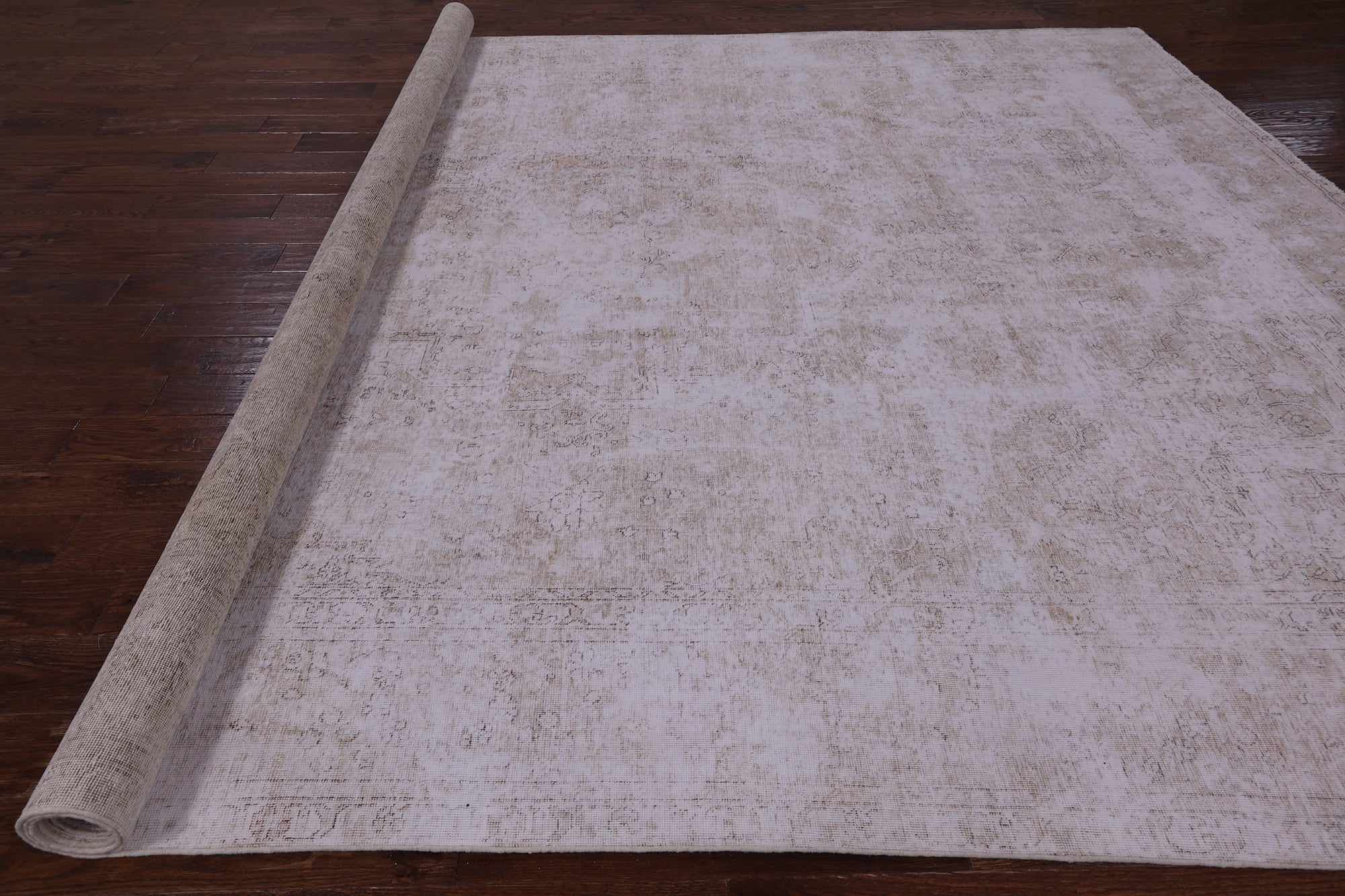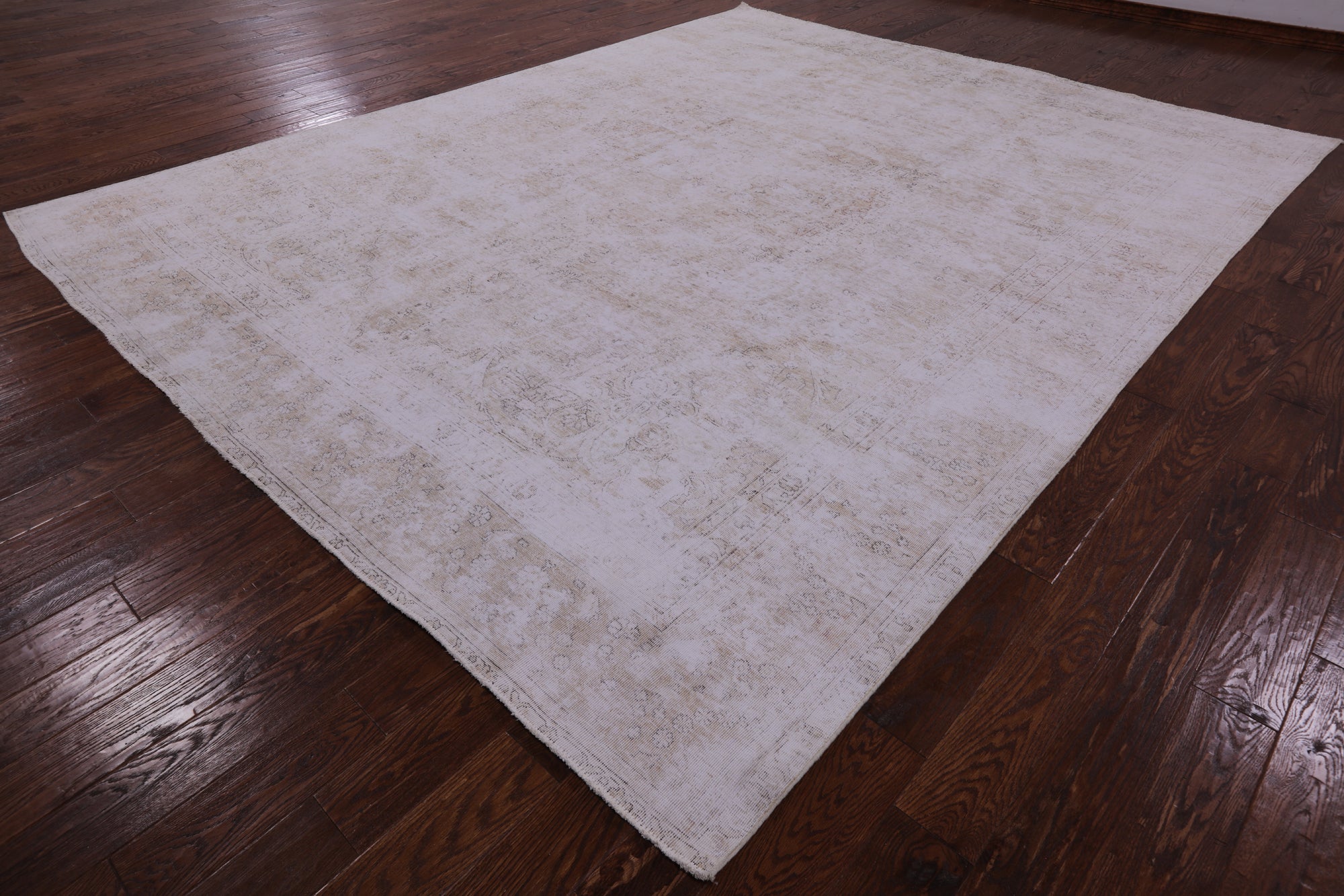 Ivory Persian Vintage White Wash Handmade Wool Rug - 9' 8" X 12' 3"