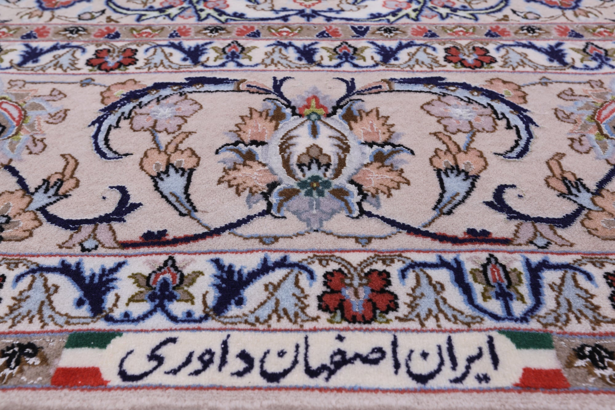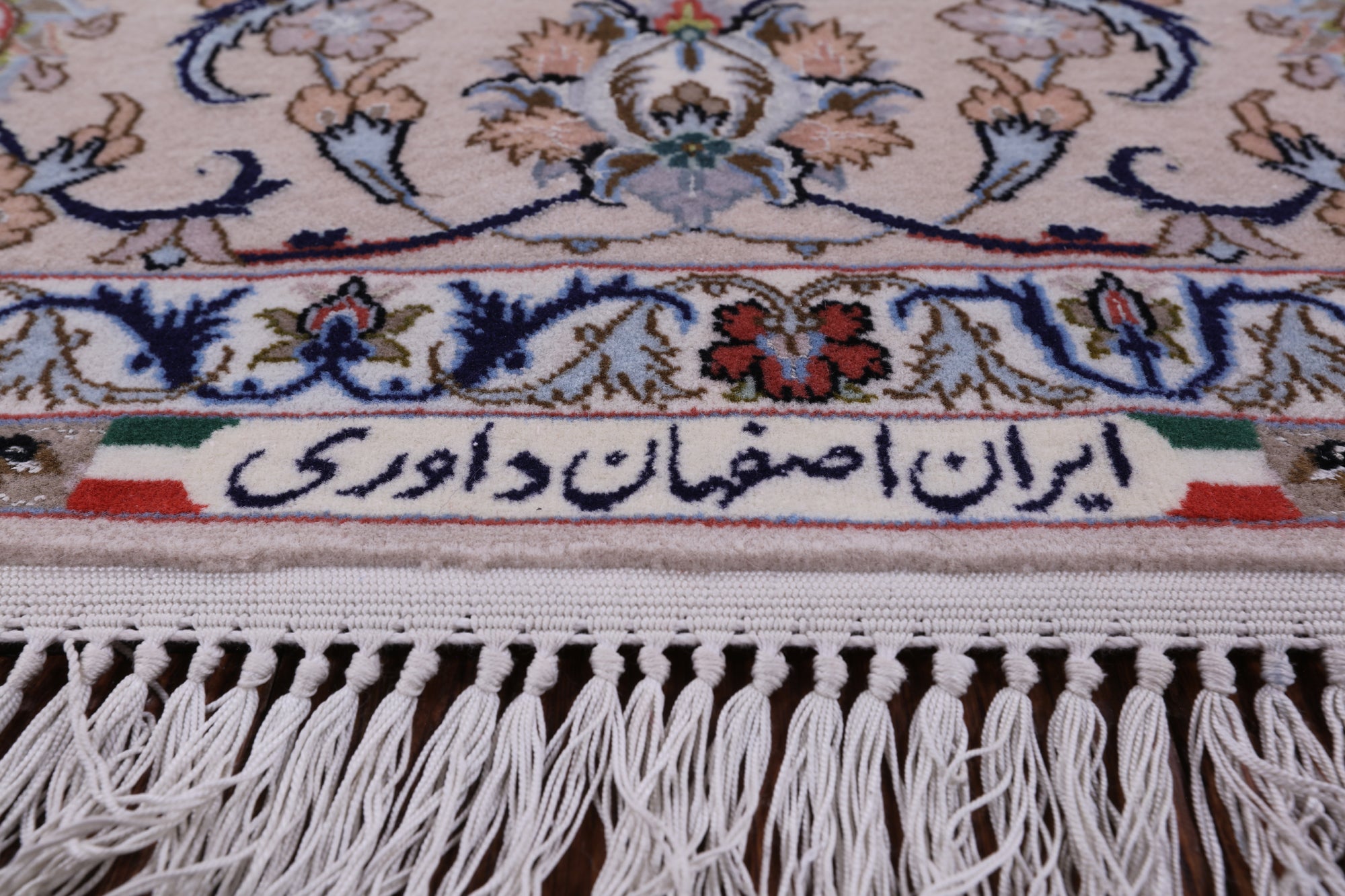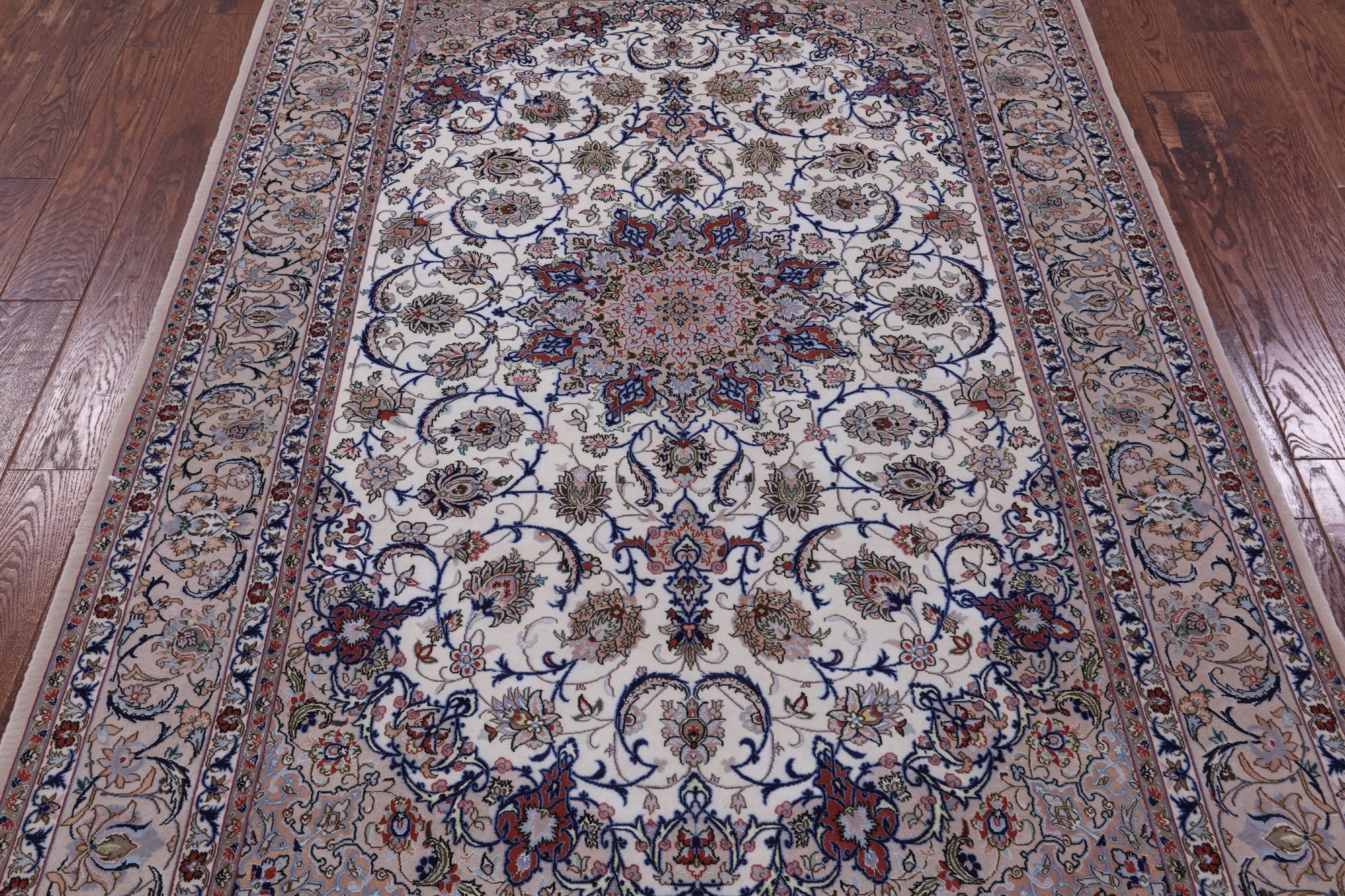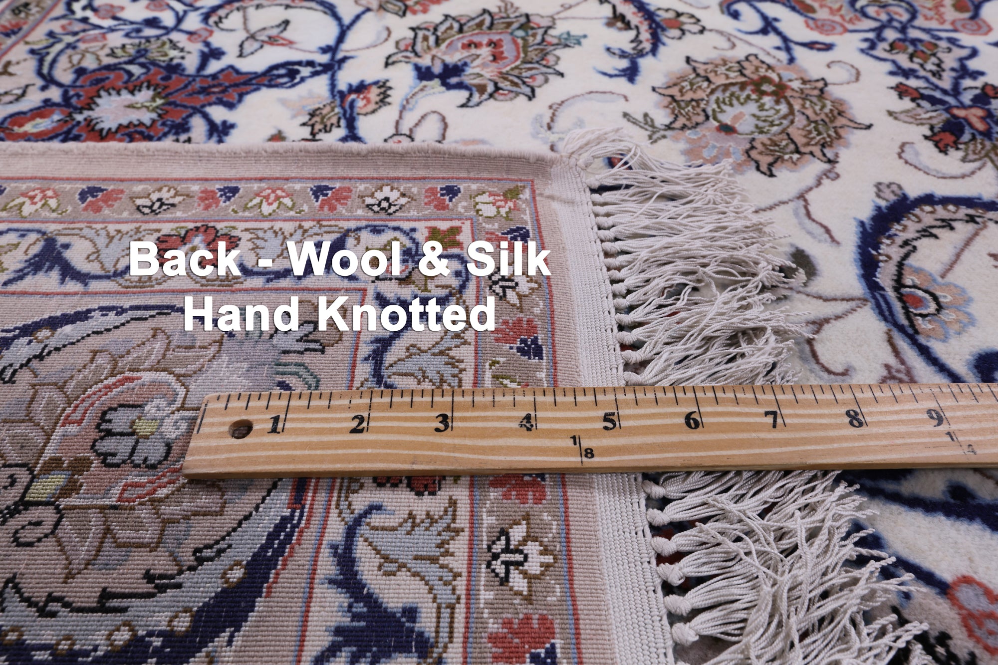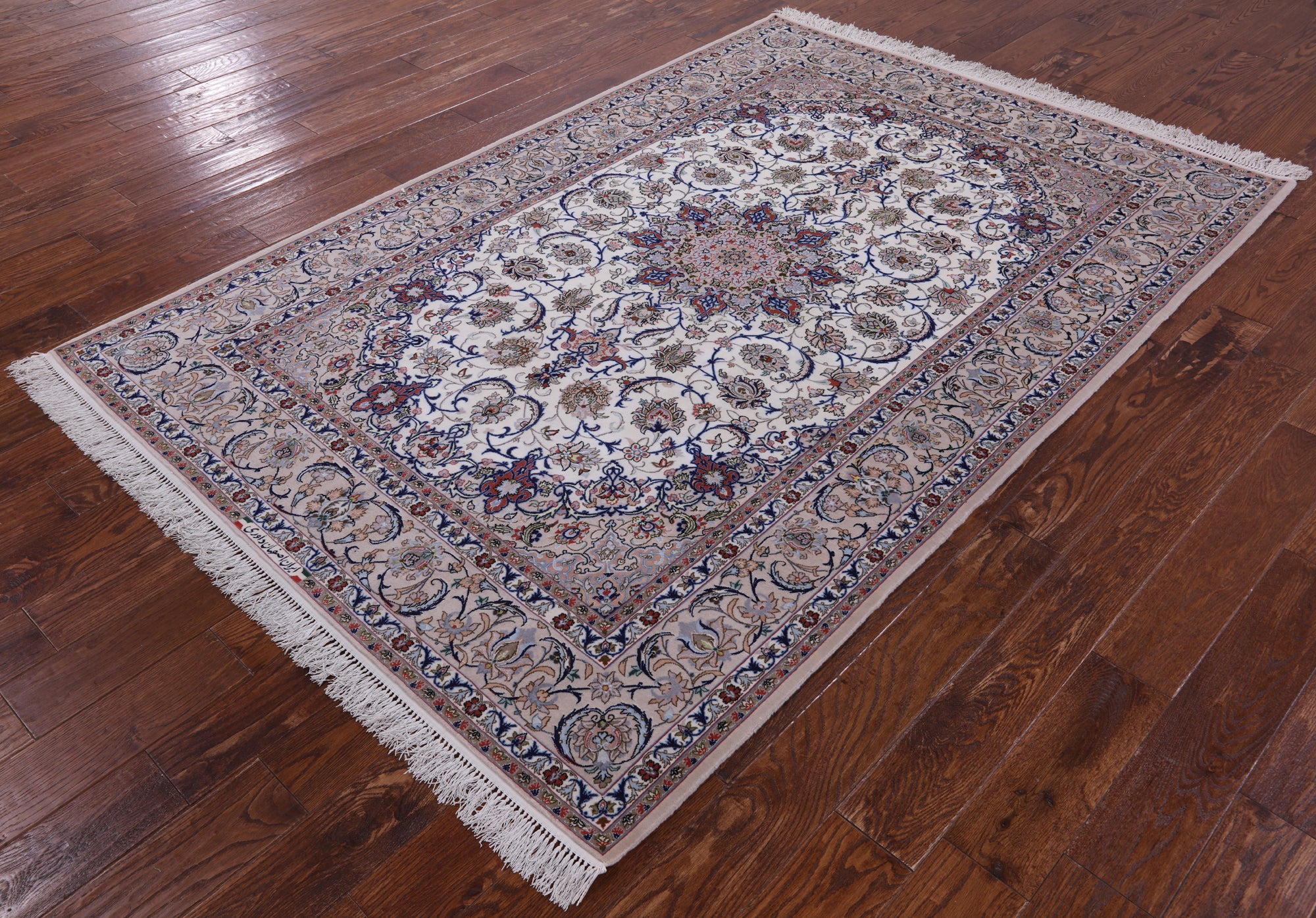 Ivory Isfahan Authentic Persian Hand Knotted Wool & Silk Area Rug - 5' 3" X 8' 0"