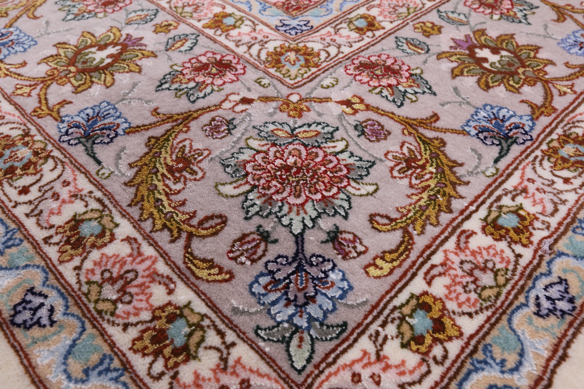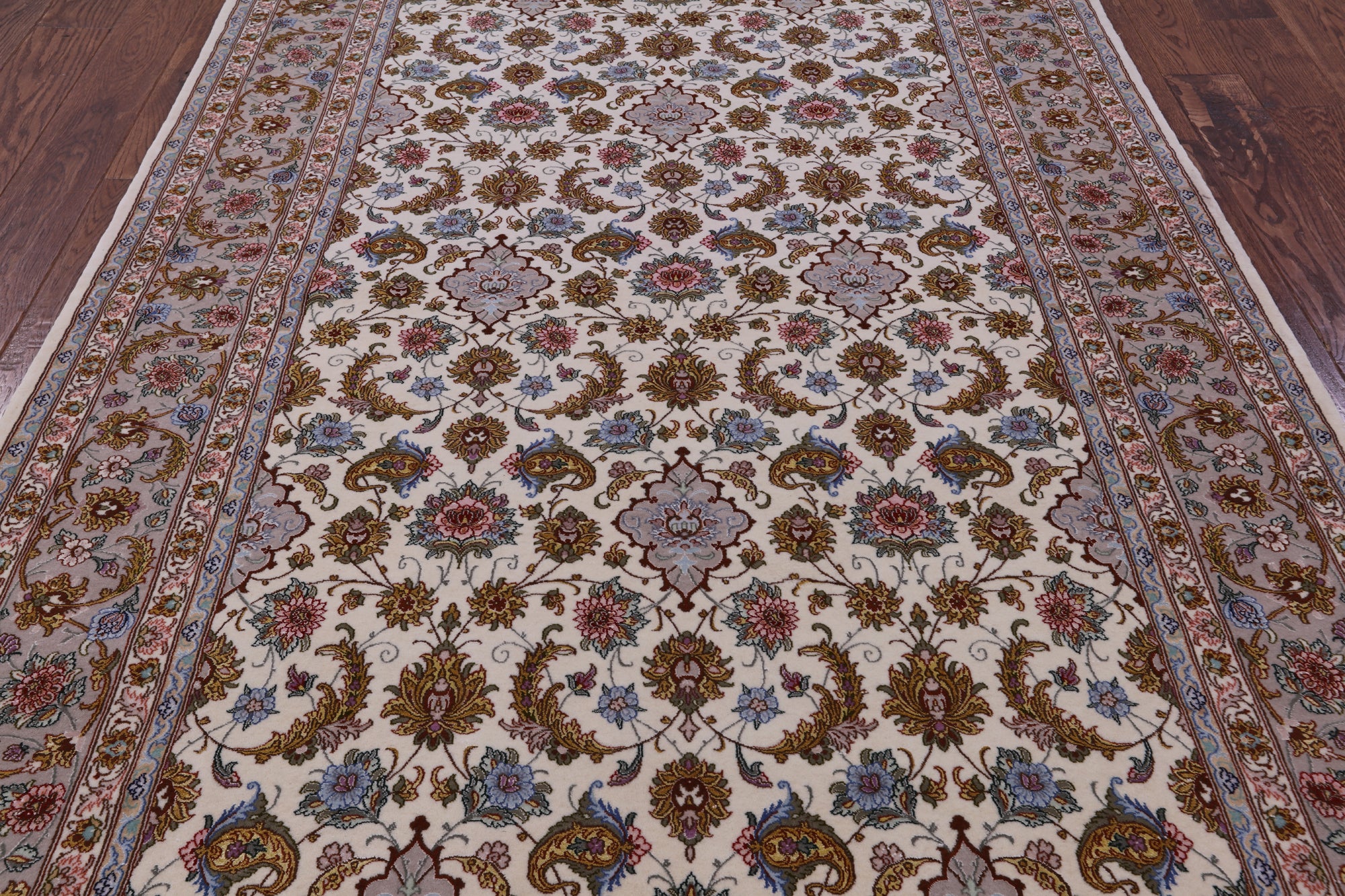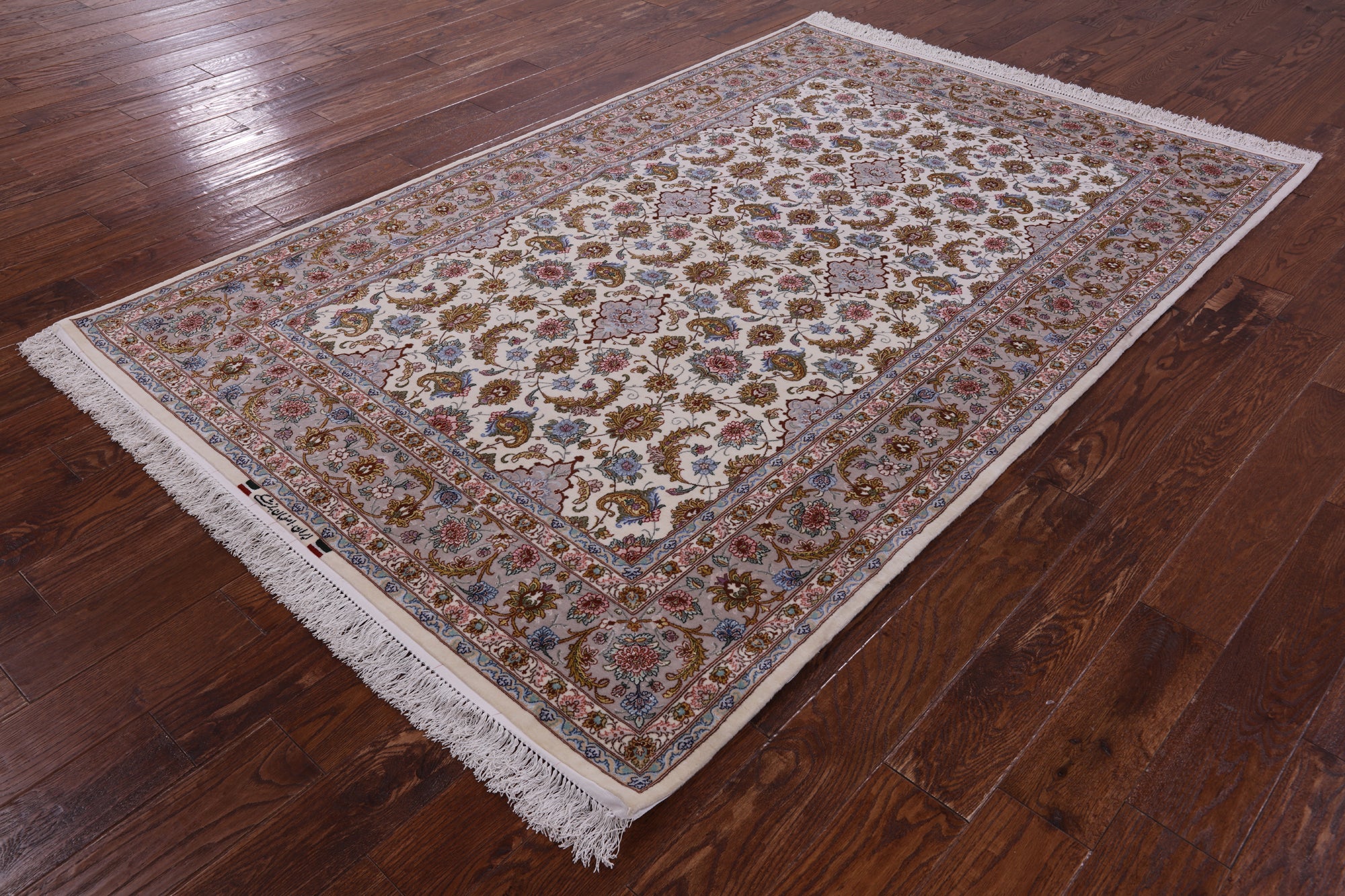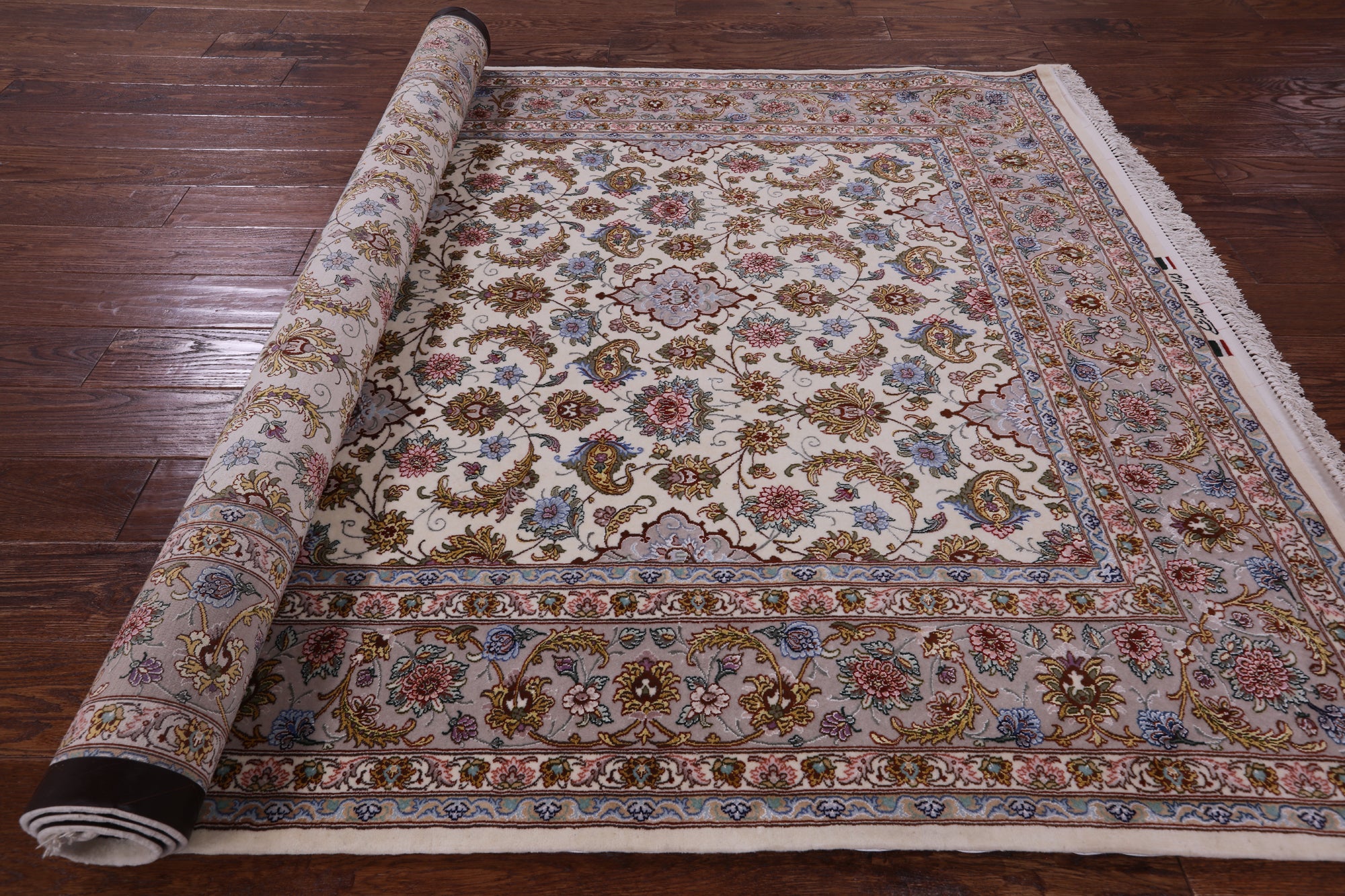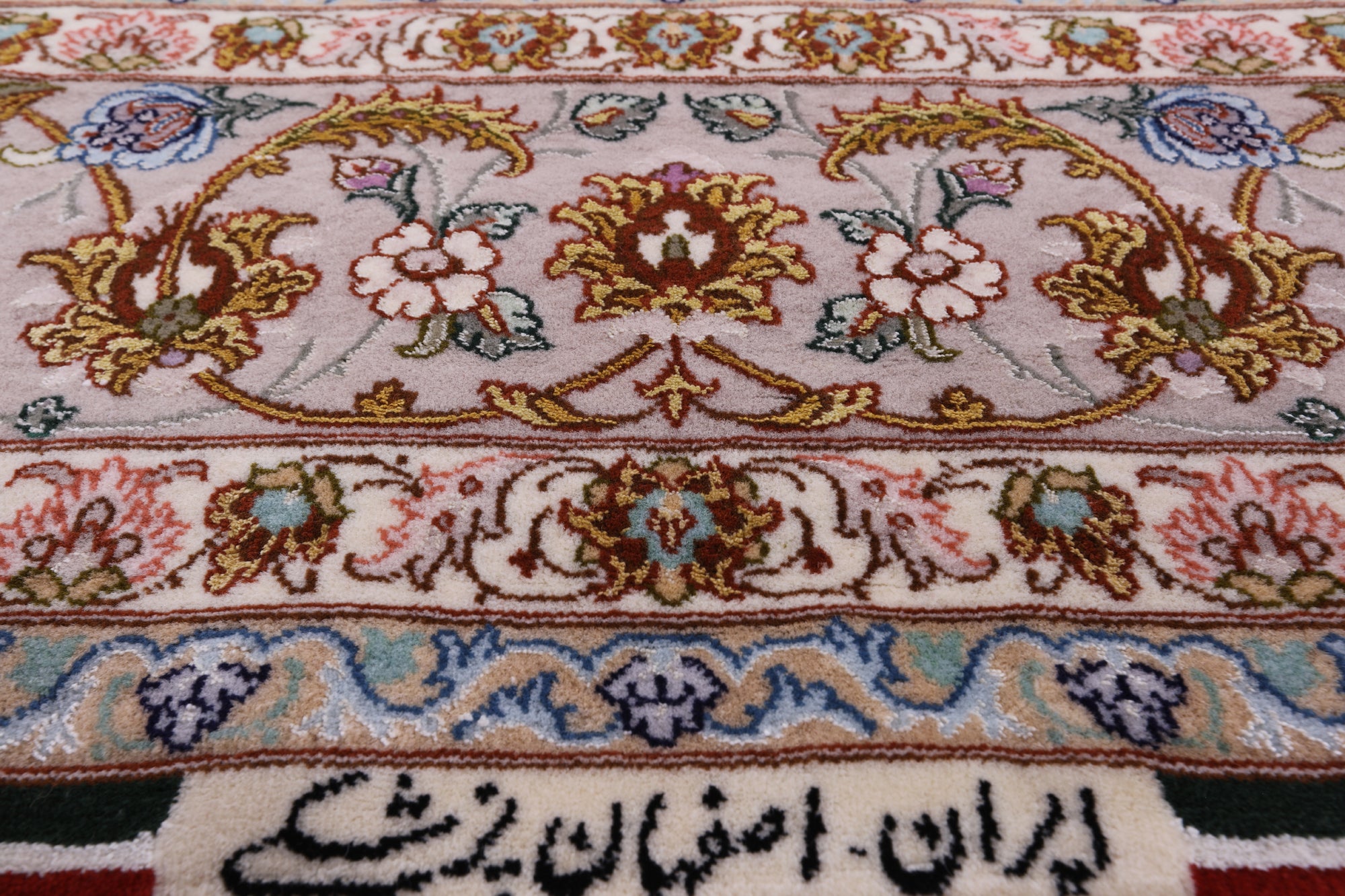 The Isfahan rugs are made with exceptionally good quality of wool & silk. They use traditional motifs inspired by architectural tiles that once decorated the historical buildings from which these rugs originated in. When it comes to high class designs the composition, patterns, and materials of Isfahan meets those expectations. The motifs usually consist of medallions with palmetts and also figural motifs. Isfahan rugs have an extremely high knot density and are woven with silk and golden threads, which give them their luxurious look.