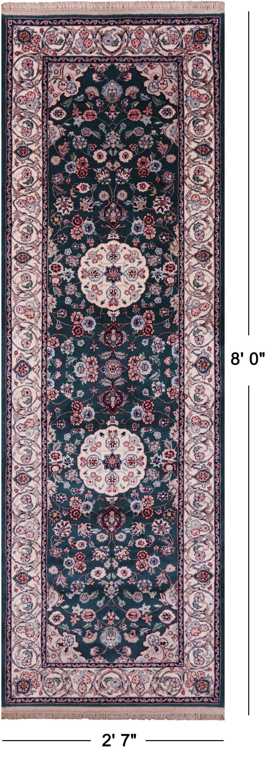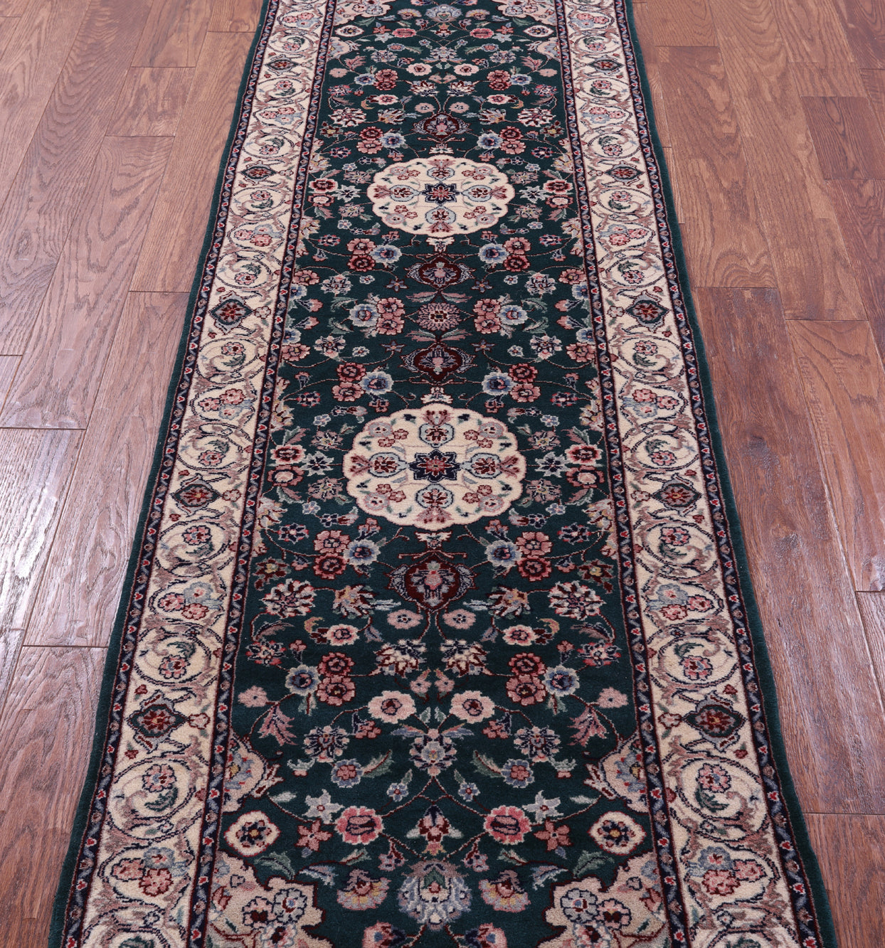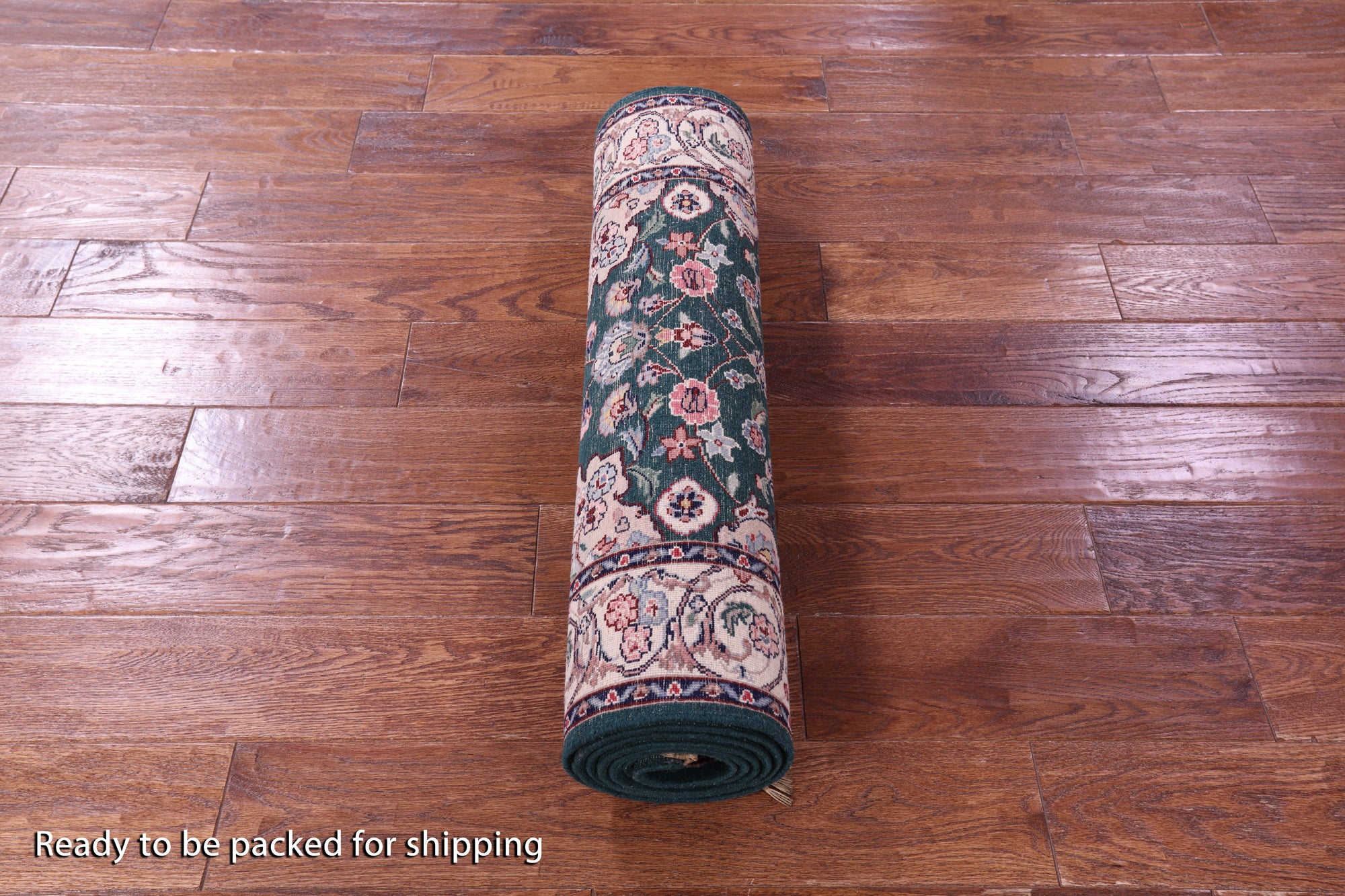 Green Persian Tabriz Handmade Wool Runner Rug - 2' 7" X 8' 0"