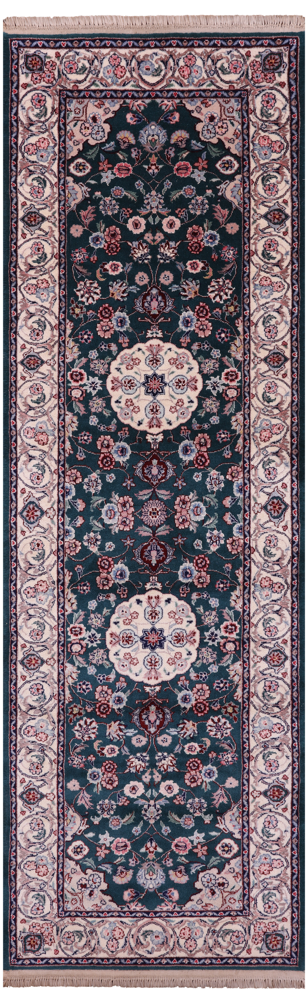 Tabriz Rugs are the most diverse and innovative in Persia due to its high-quality. Tabriz designs are hand-knotted with fine soft wool or silk, on a silk or cotton foundation, and may have either a thin silk, or wool pile. Their patterns consists of medallions surrounded by weeping willows, a cluster of trees and/or cypresses, arabesques (ornamental designs), and most popular, the four seasons used to depict the life of the Persian farmer. Their rich colors consist of red & blue with an ivory background, while newer Tabriz Rugs have softer colors such as green, blue and brown to correspond with modern interiors.