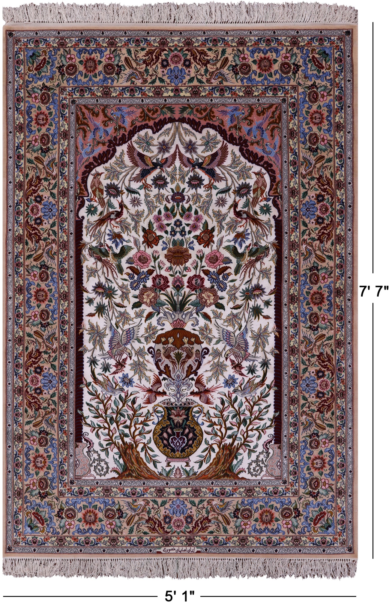 The Isfahan rugs are made with exceptionally good quality of wool & silk. They use traditional motifs inspired by architectural tiles that once decorated the historical buildings from which these rugs originated in. When it comes to high class designs the composition, patterns, and materials of Isfahan meets those expectations. The motifs usually consist of medallions with palmetts and also figural motifs. Isfahan rugs have an extremely high knot density and are woven with silk and golden threads, which give them their luxurious look.