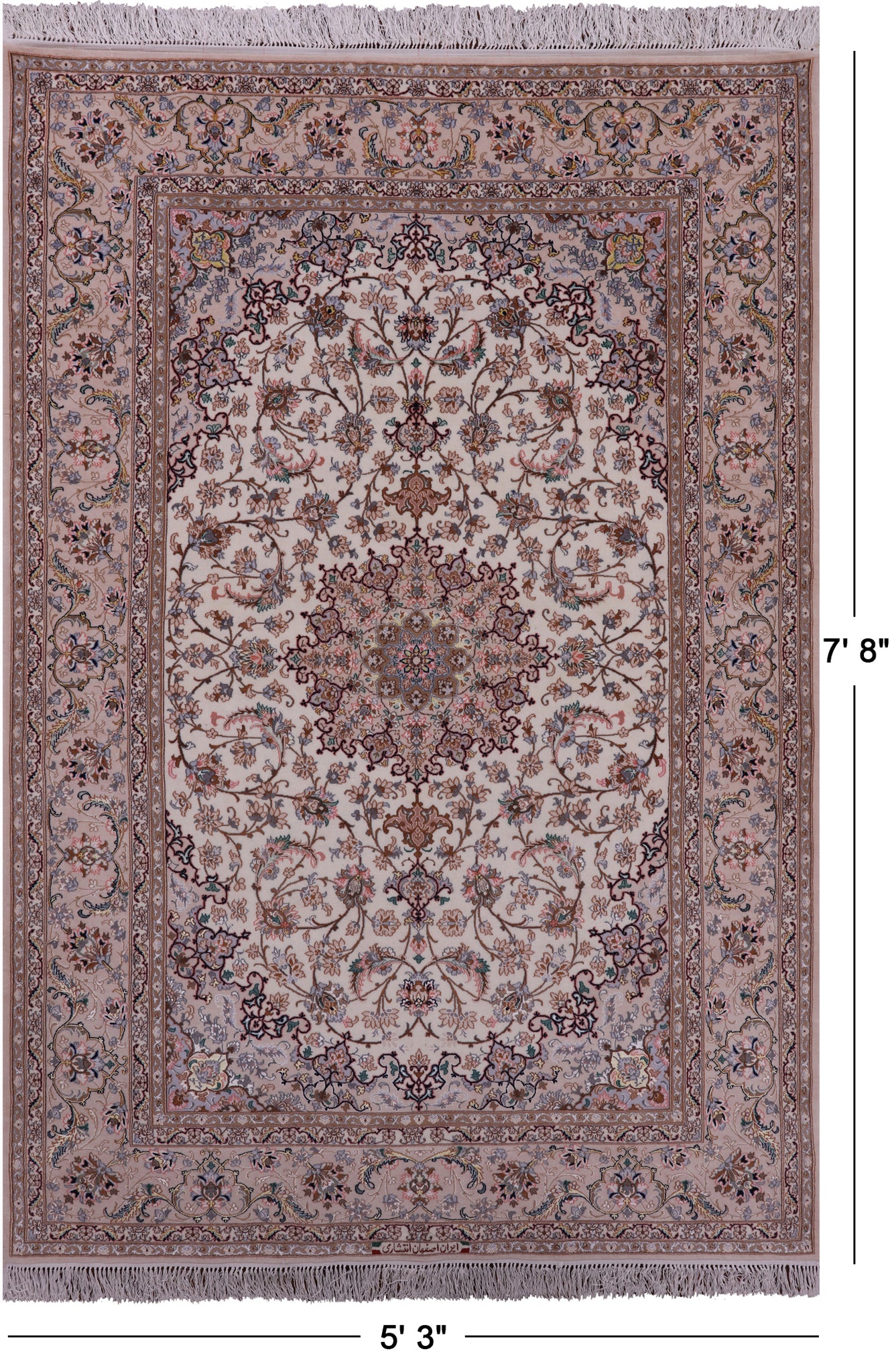 Ivory Isfahan Authentic Persian Hand Knotted Wool & Silk Area Rug - 5' 3" X 7' 8"