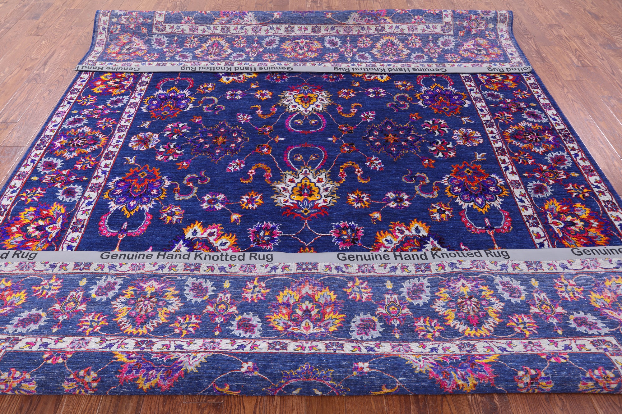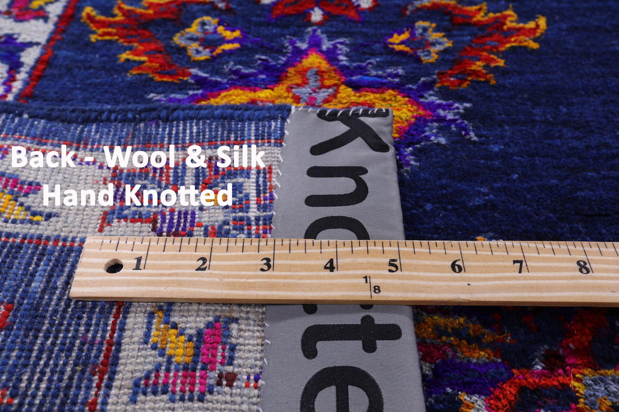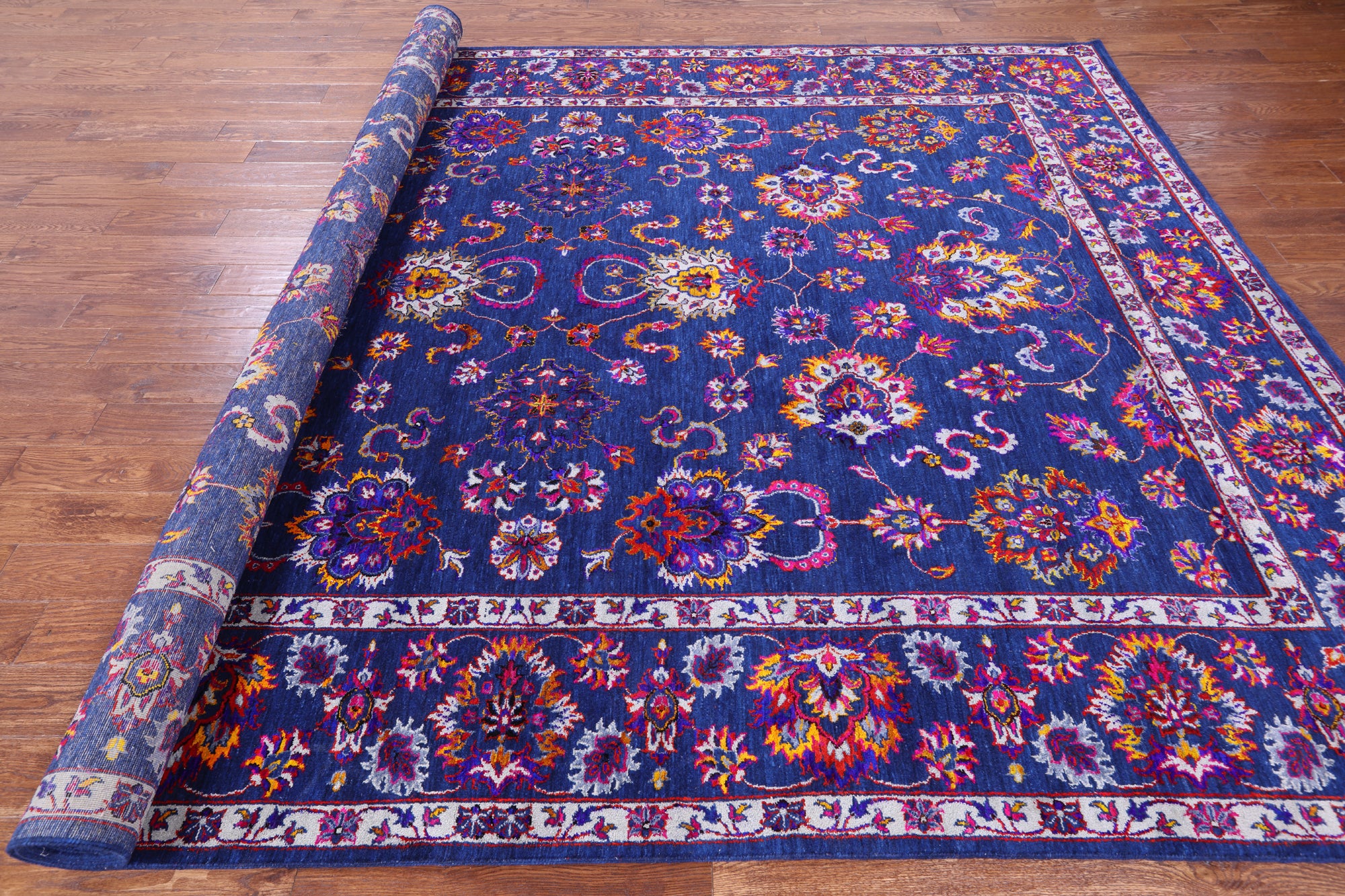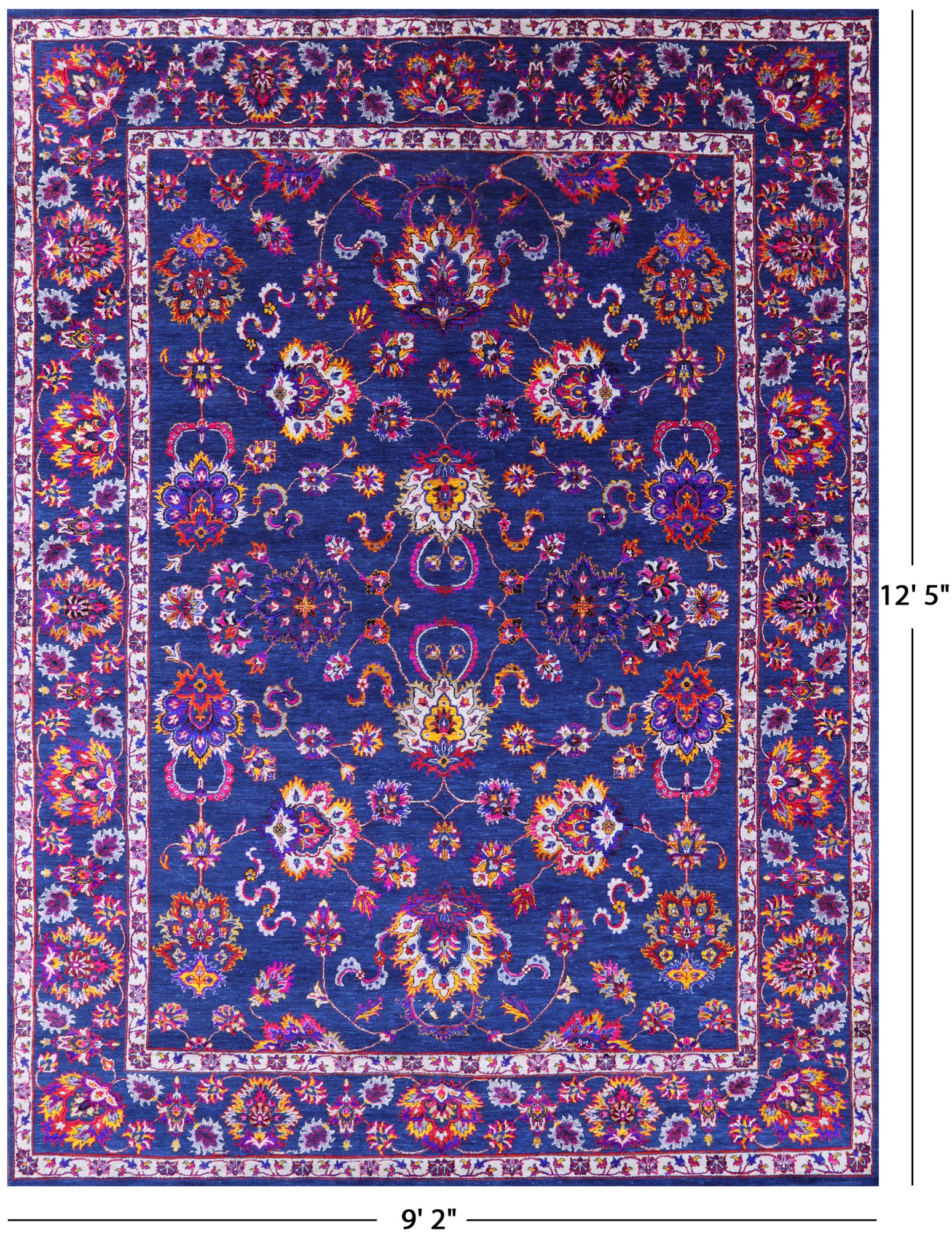 Blue Persian Hand Knotted Wool & Silk Rug - 9' 2" X 12' 5"