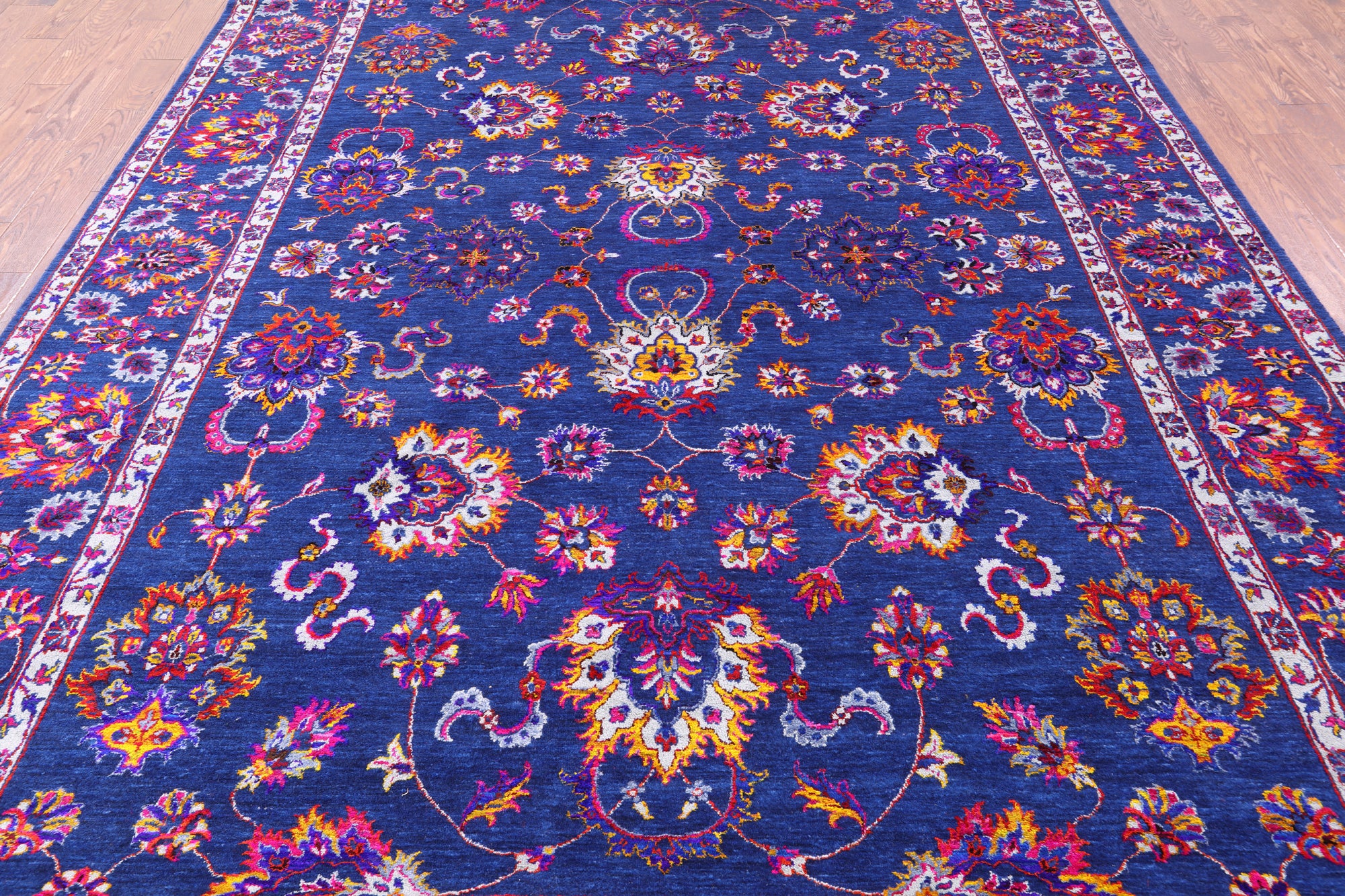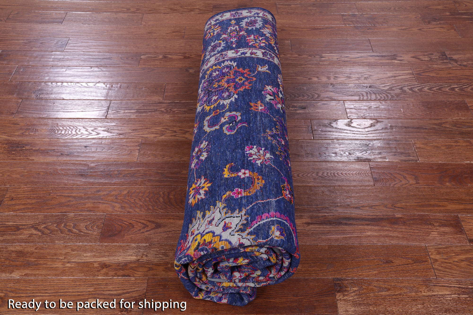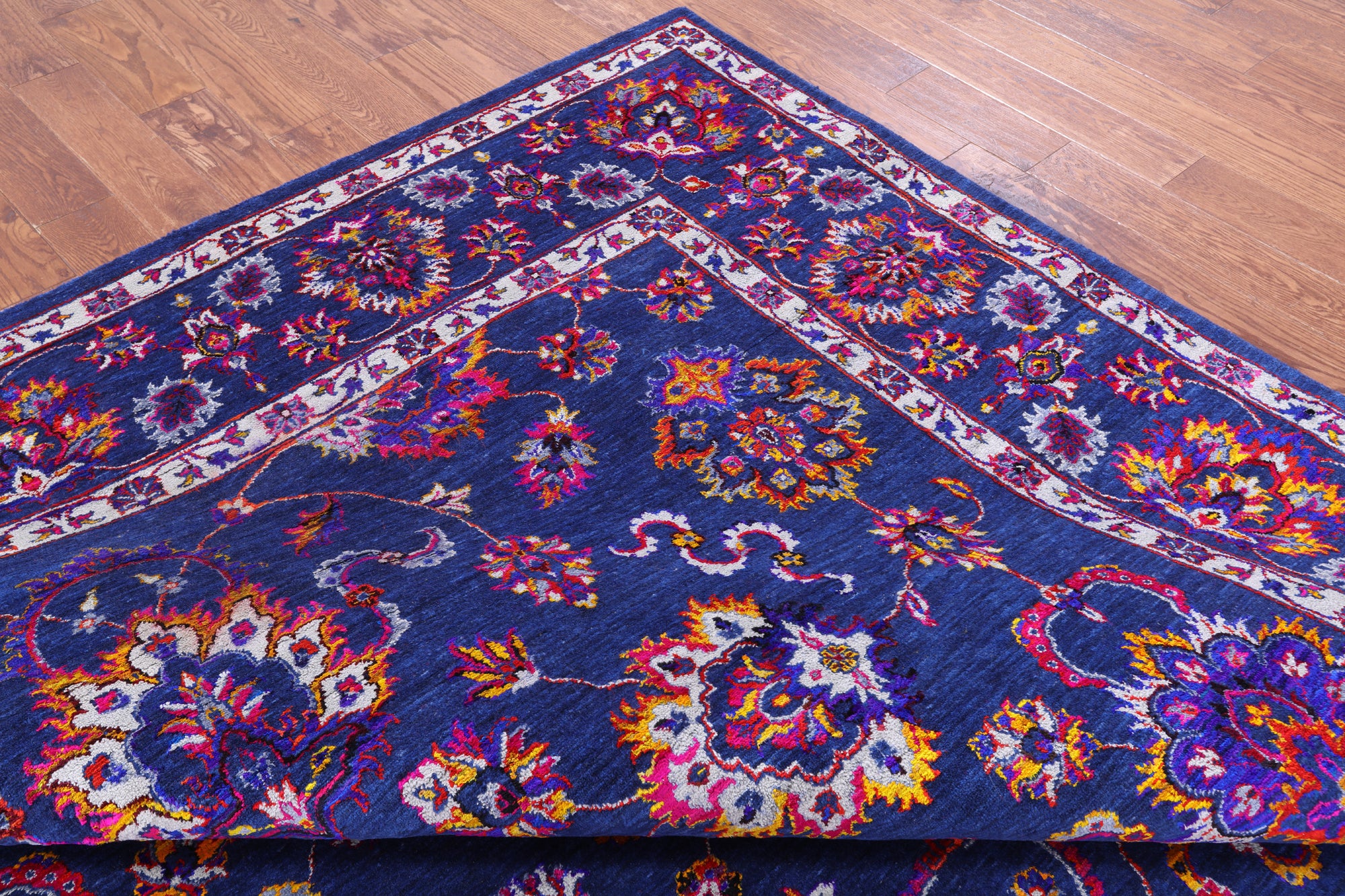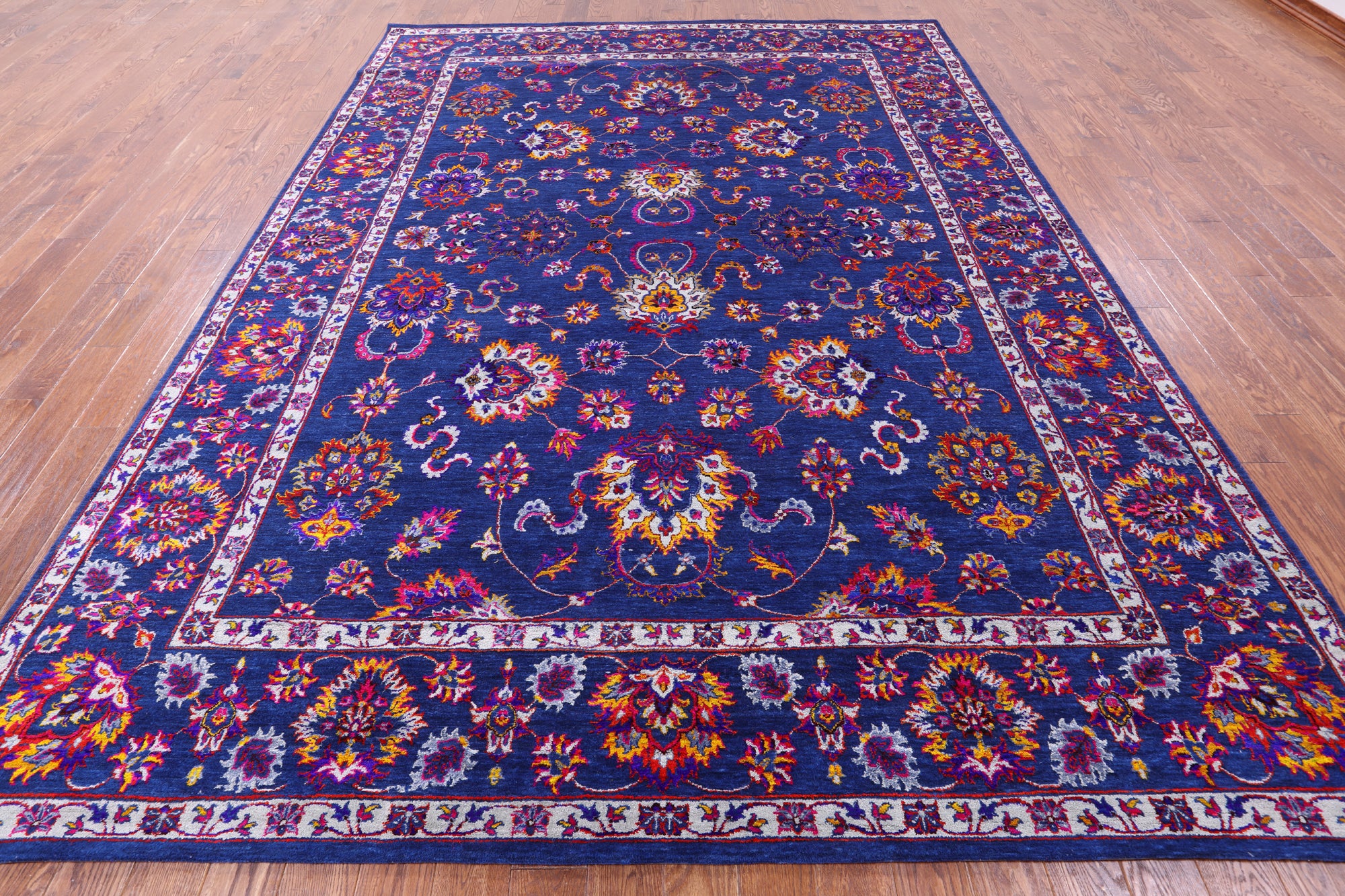 Blue Persian Hand Knotted Wool & Silk Rug - 9' 2" X 12' 5"