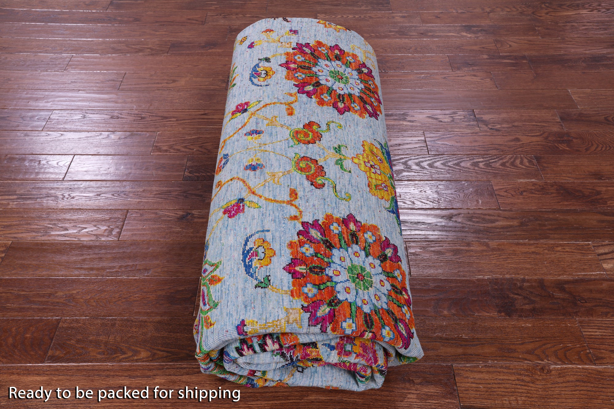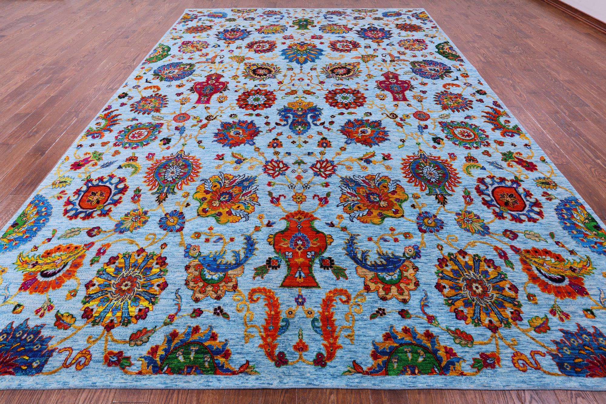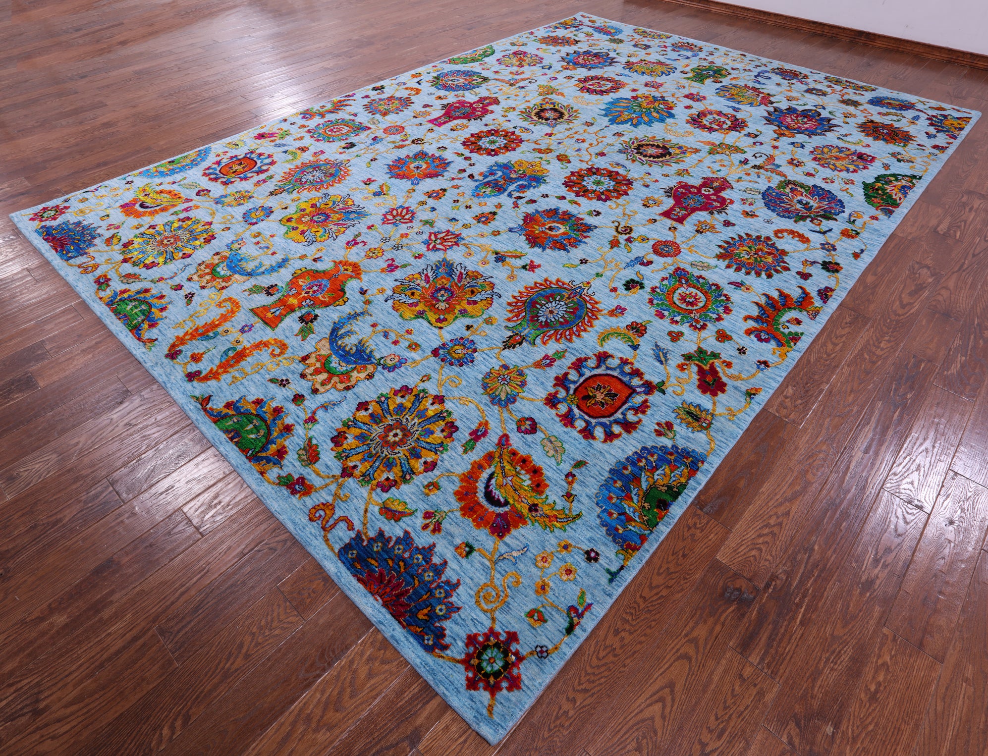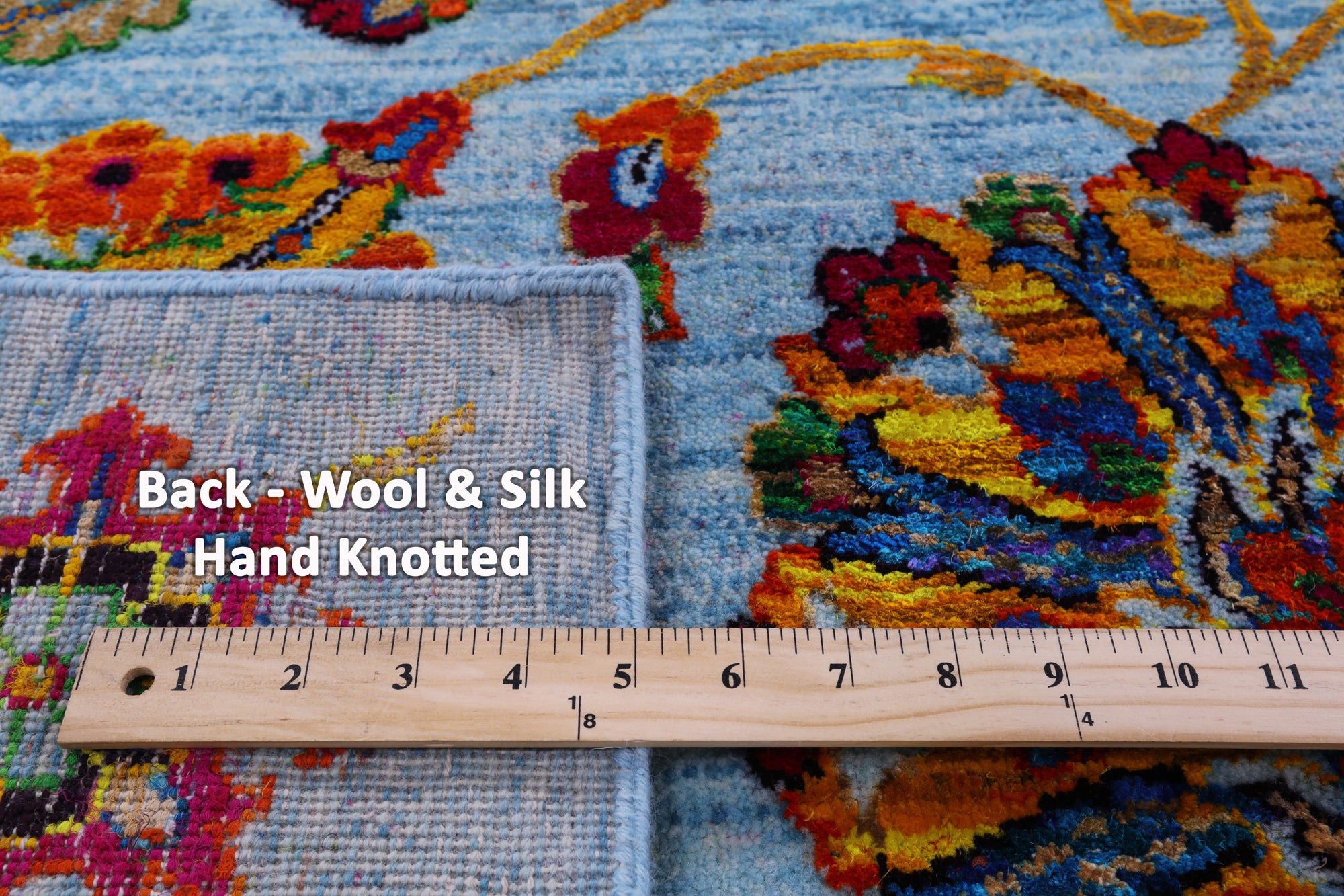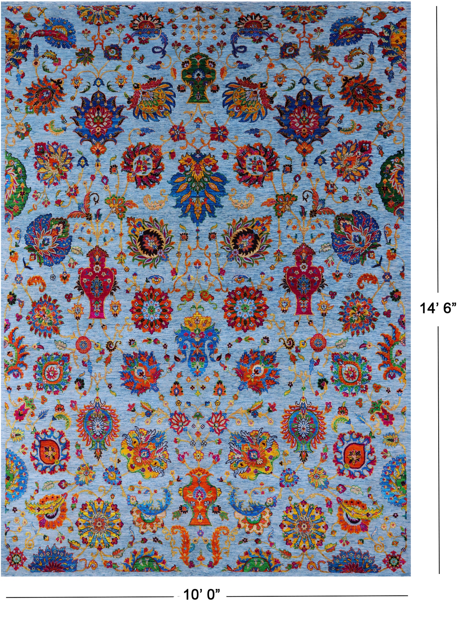 Blue Persian Tabriz Hand Knotted Wool Rug - 10' 0" X 14' 6"